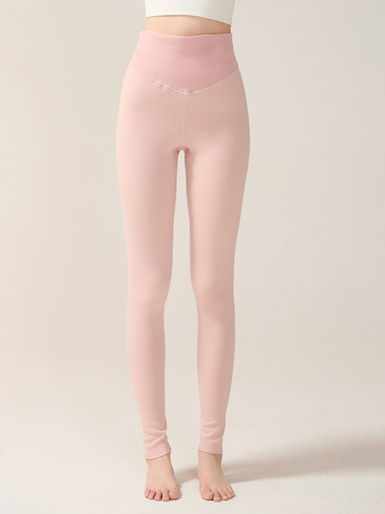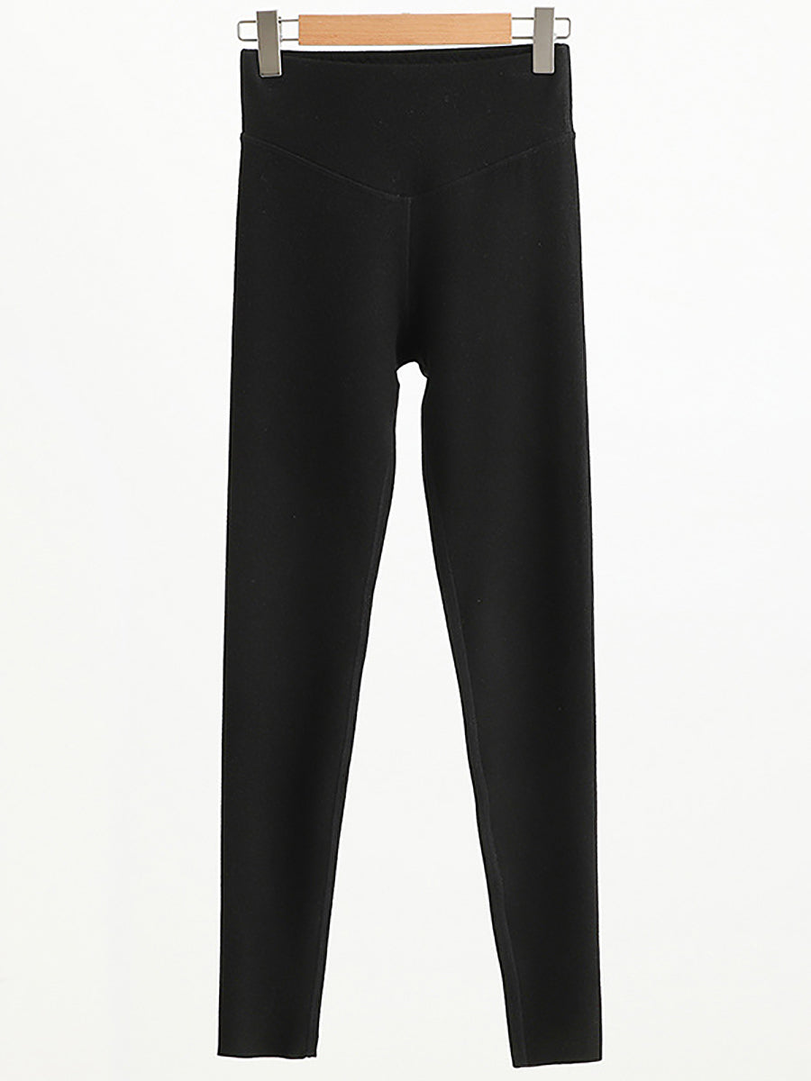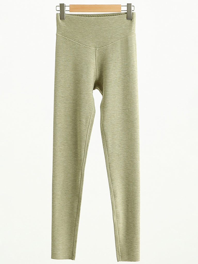 Leggings femininas de inverno, quentes, de cor lisa e cintura alta.
