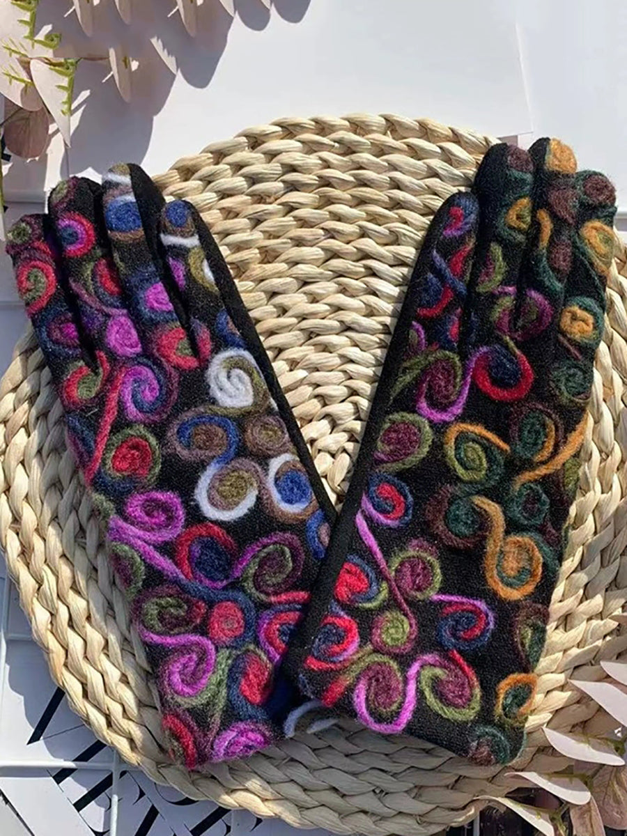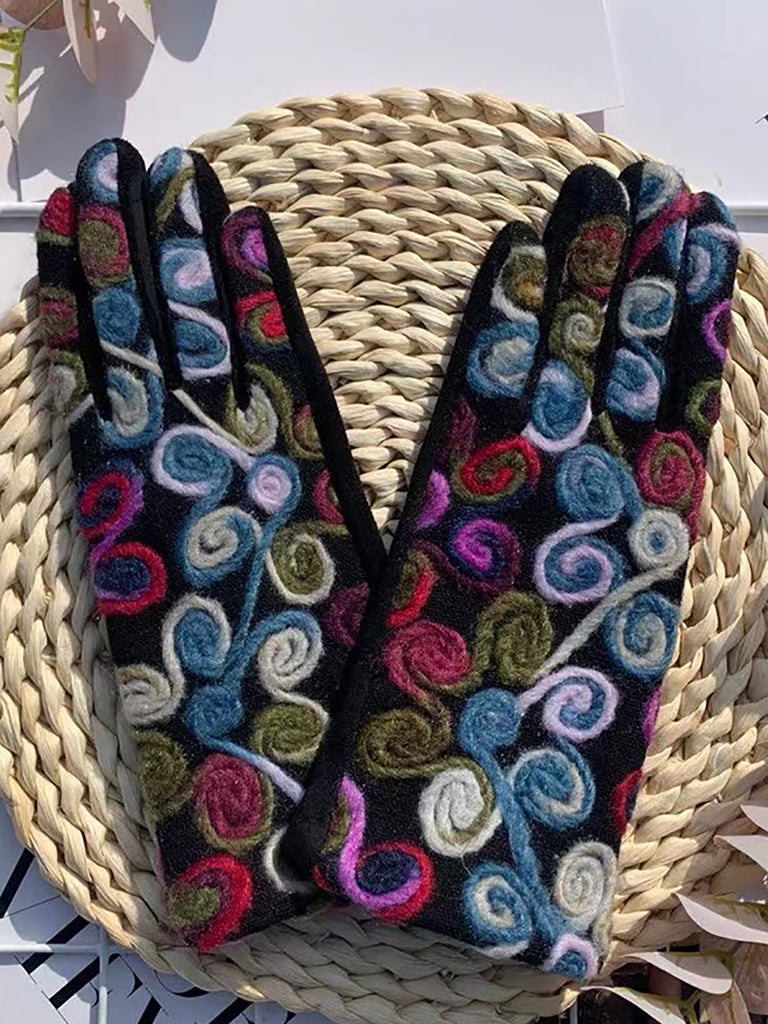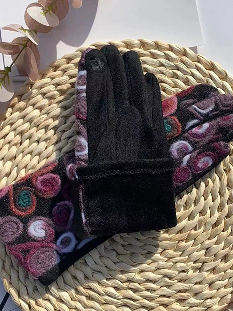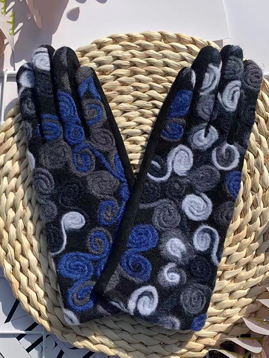 Luvas de ciclismo femininas retrô bordadas e quentinhas