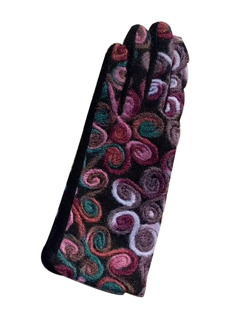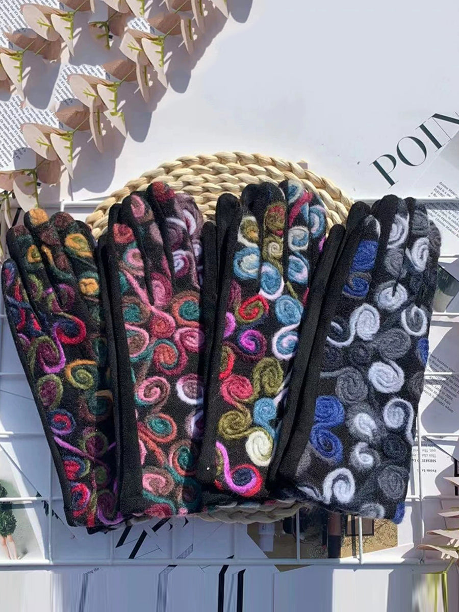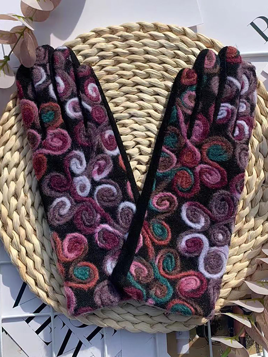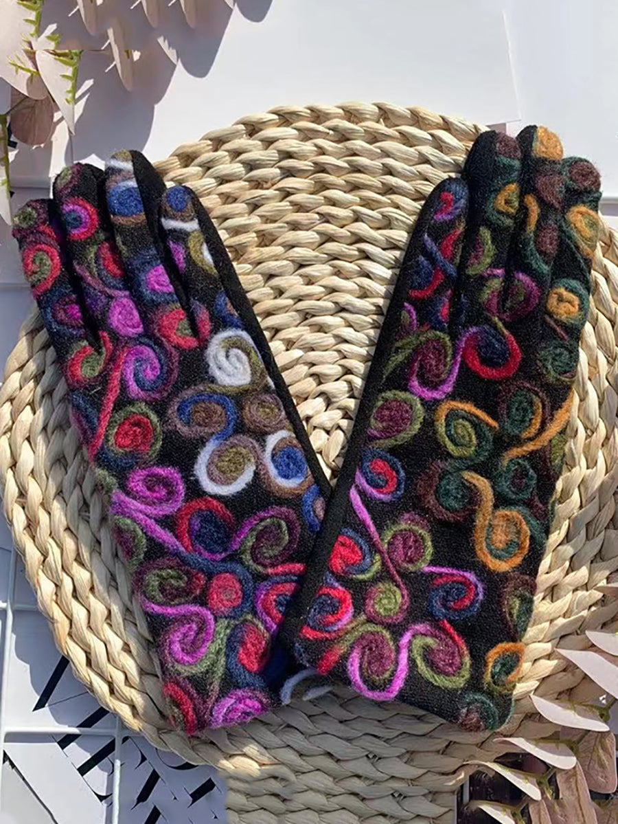 Luvas de ciclismo femininas retrô bordadas e quentinhas