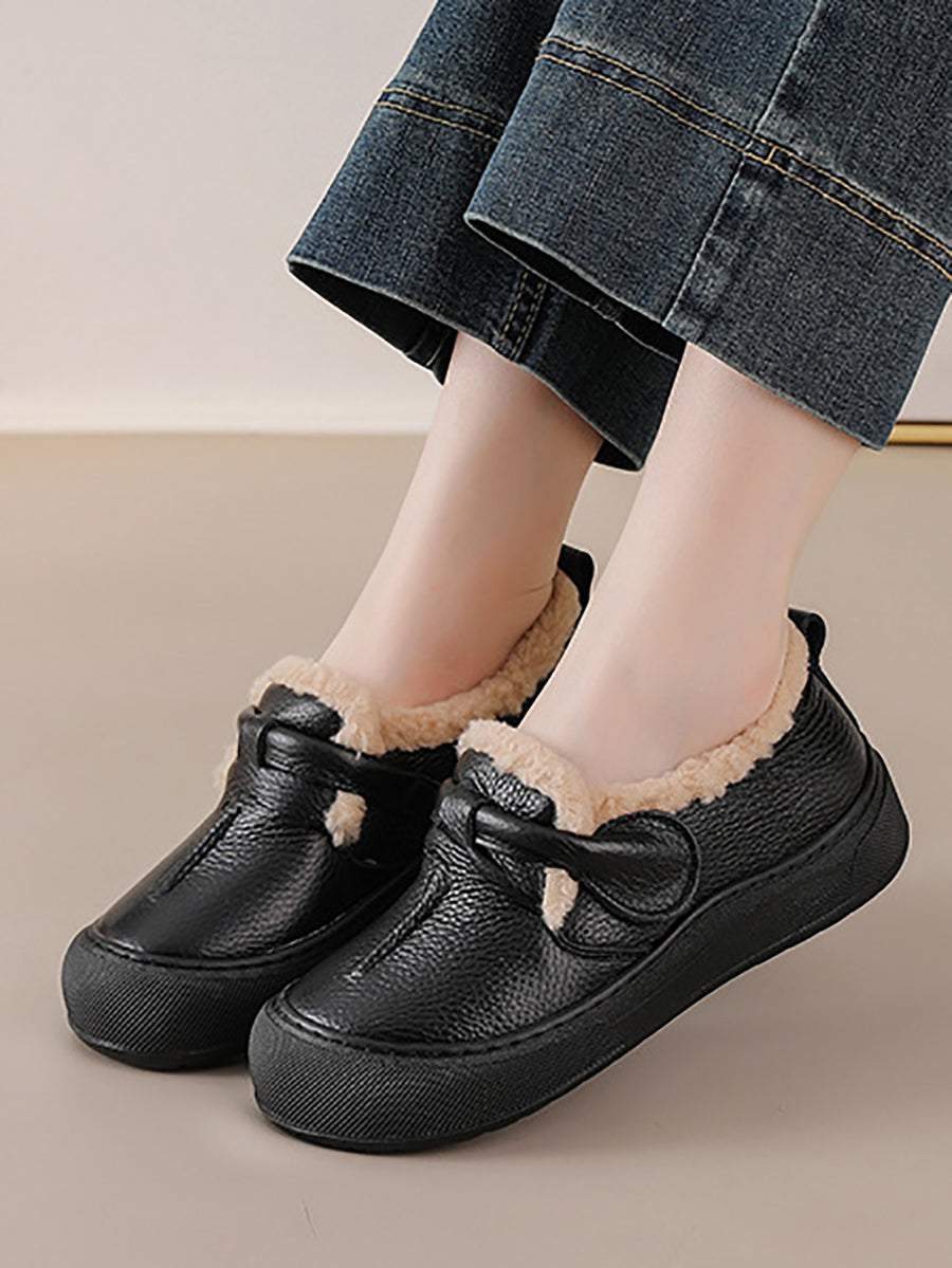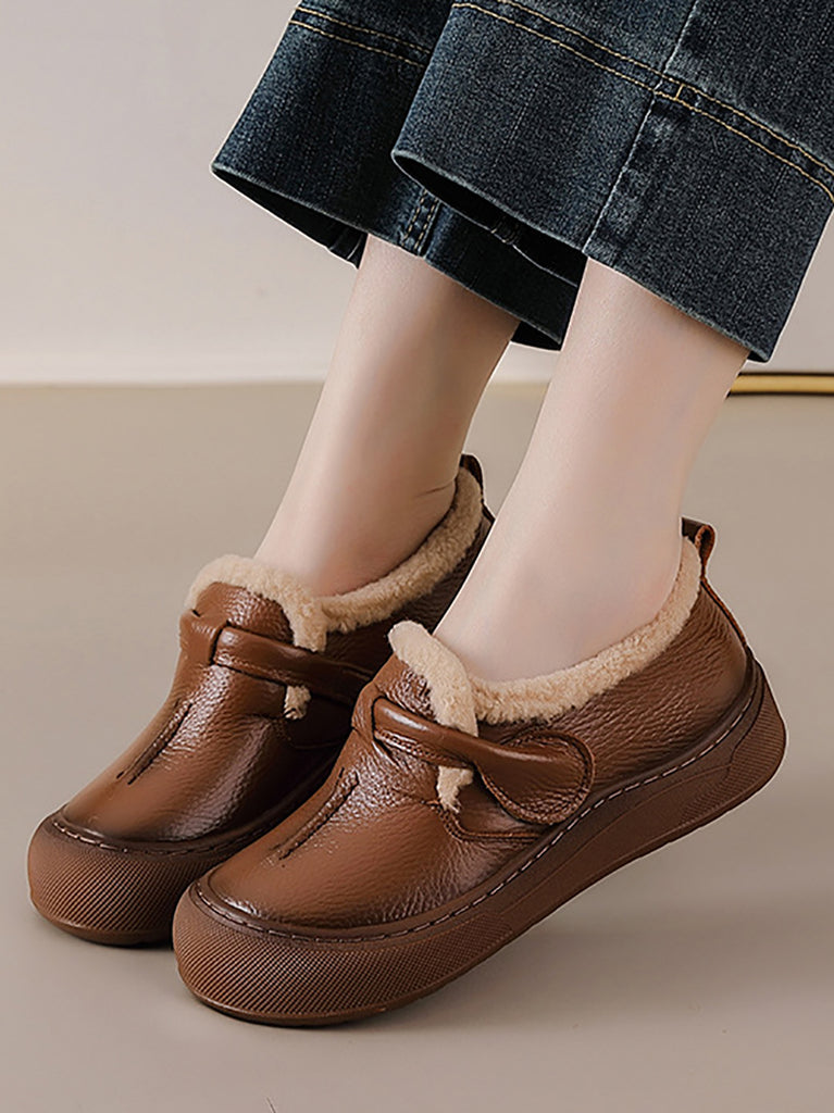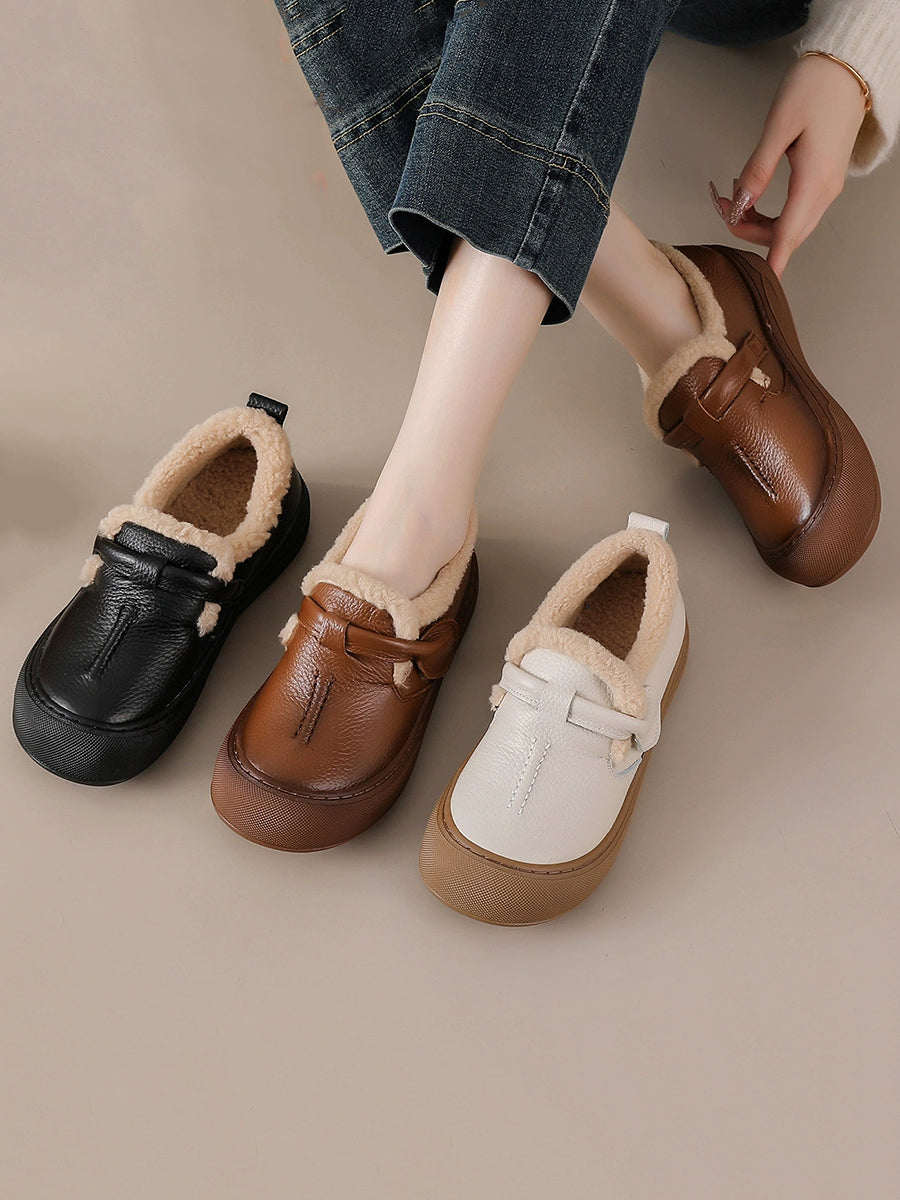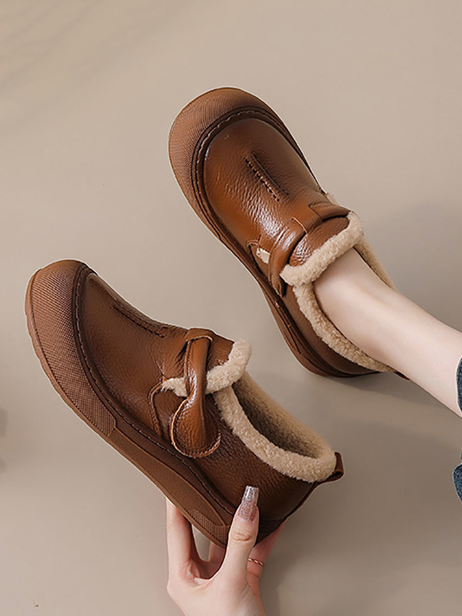 Sapatos femininos de inverno em couro legítimo com forro de lã.