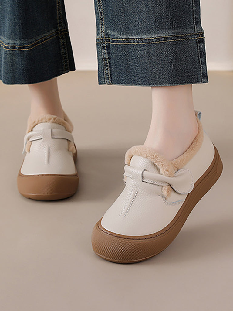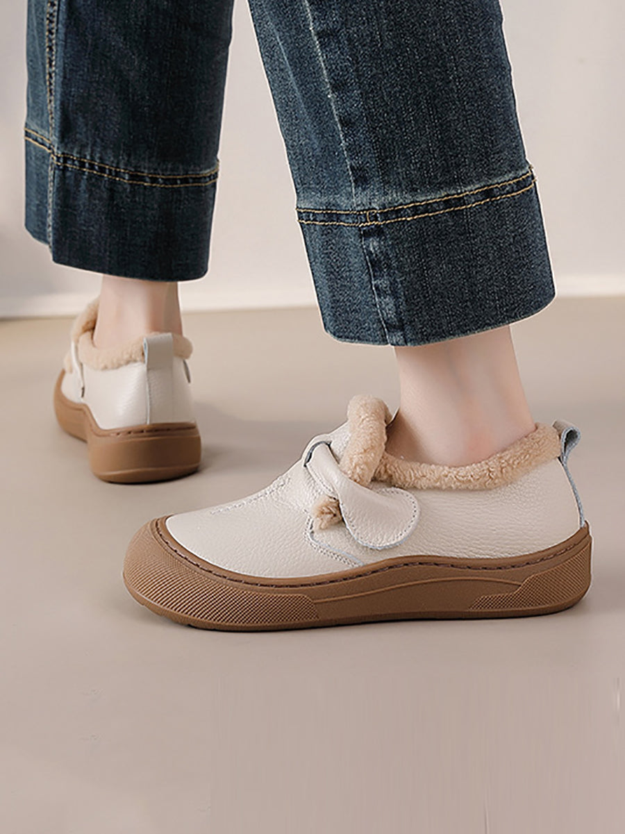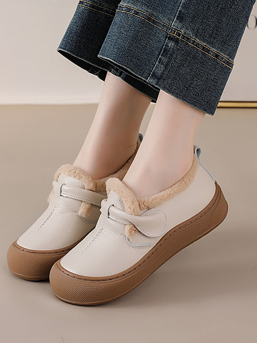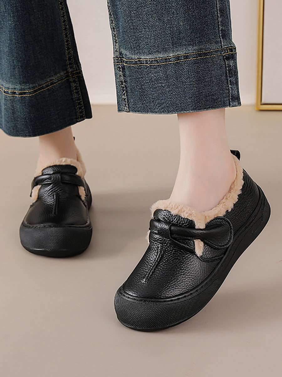Sapatos femininos de inverno em couro legítimo com forro de lã.