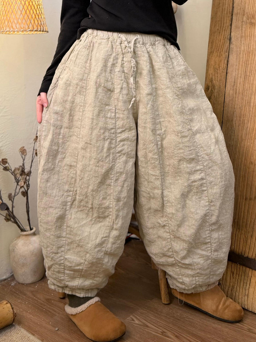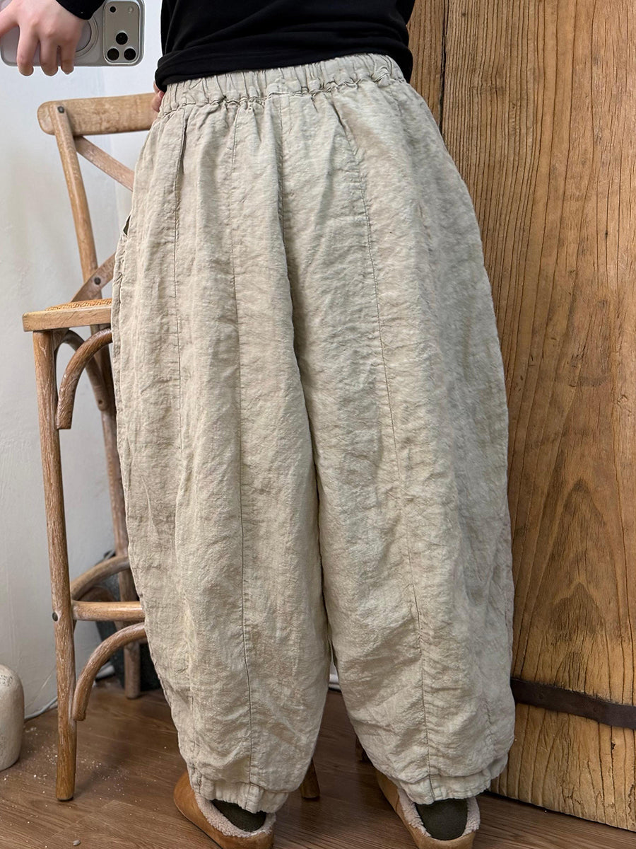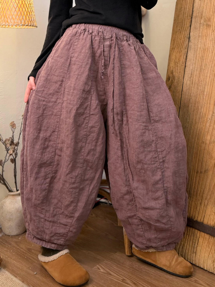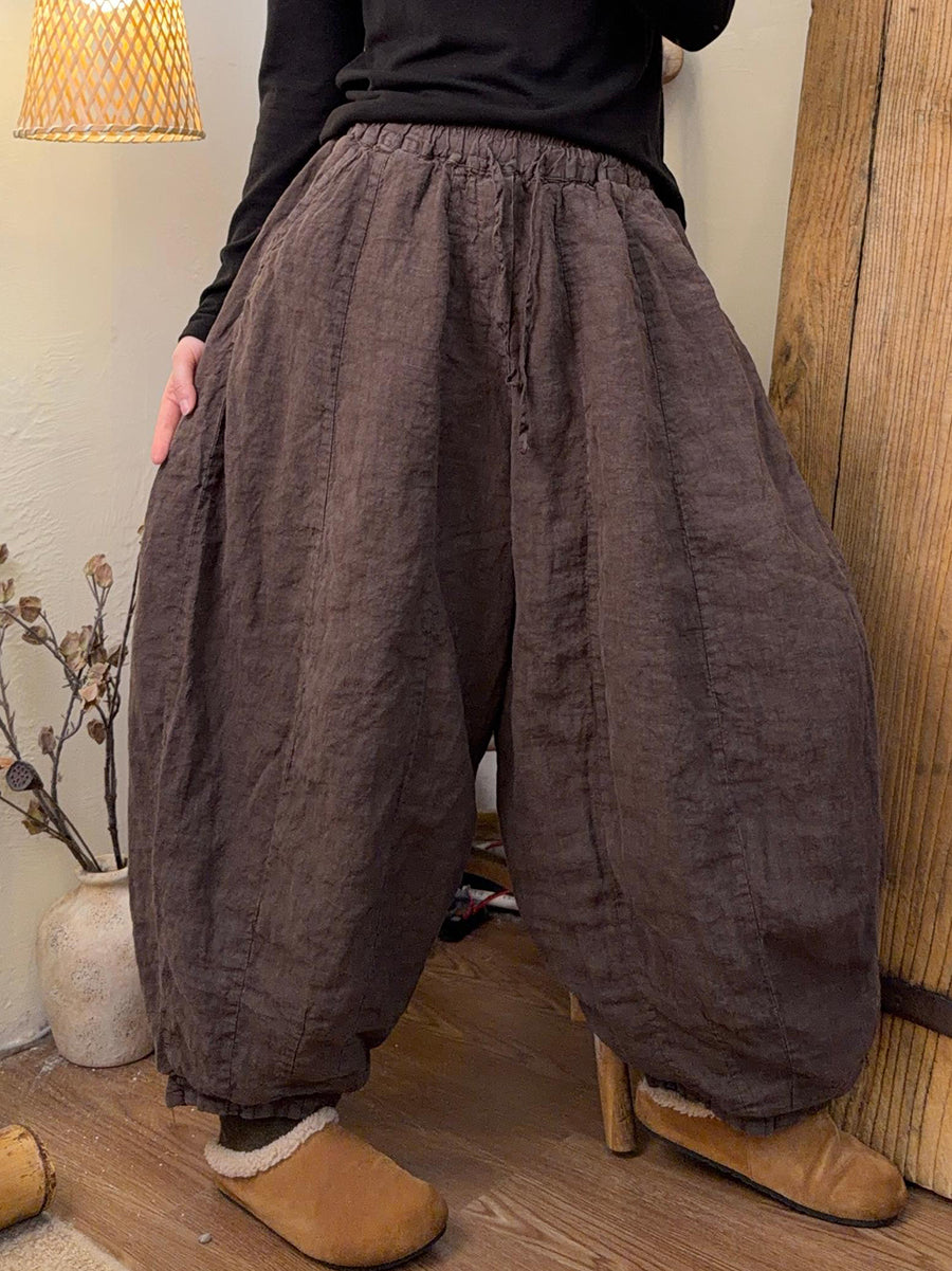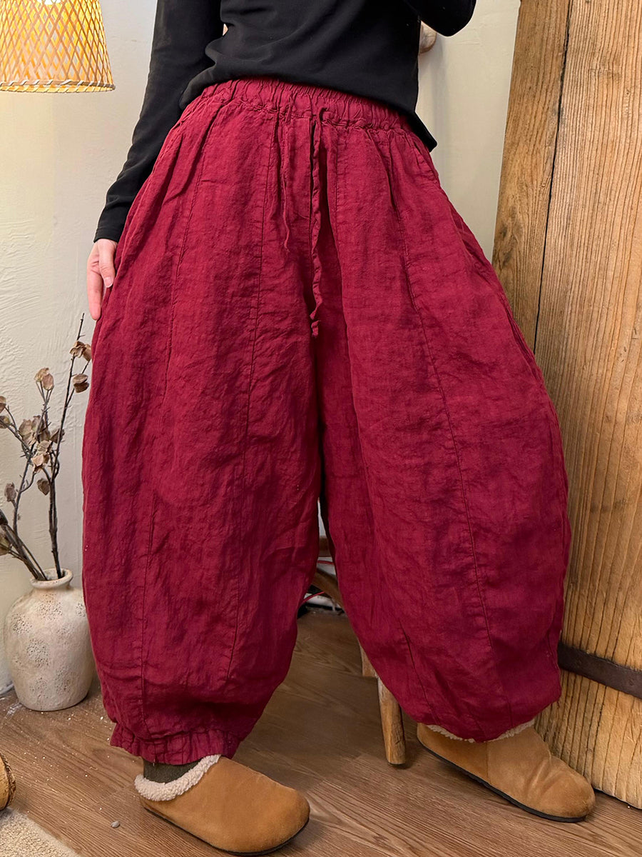 Calças de linho retrô de cor pura para mulheres, para o inverno.