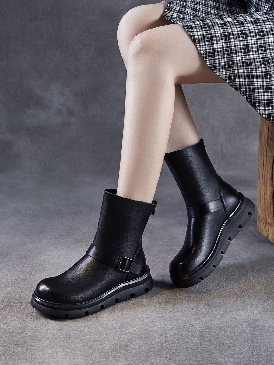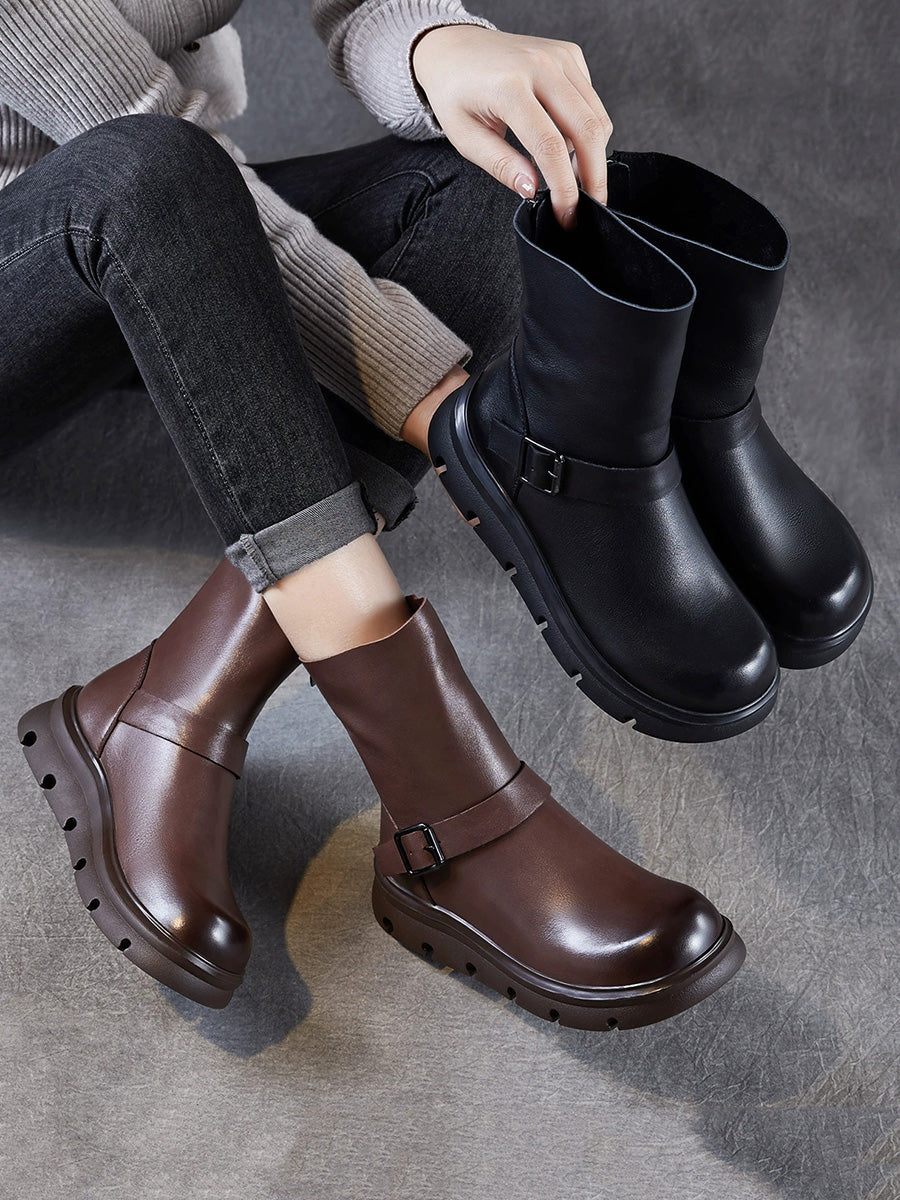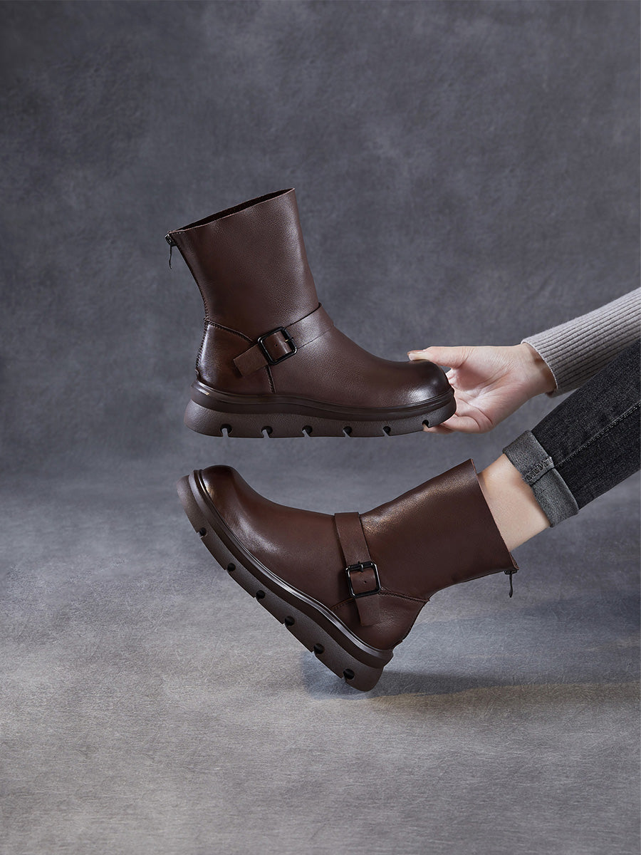 Botas Martin femininas de inverno em couro legítimo, cano médio.