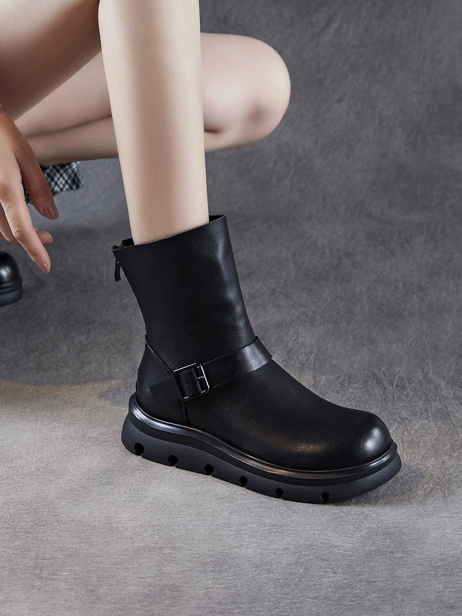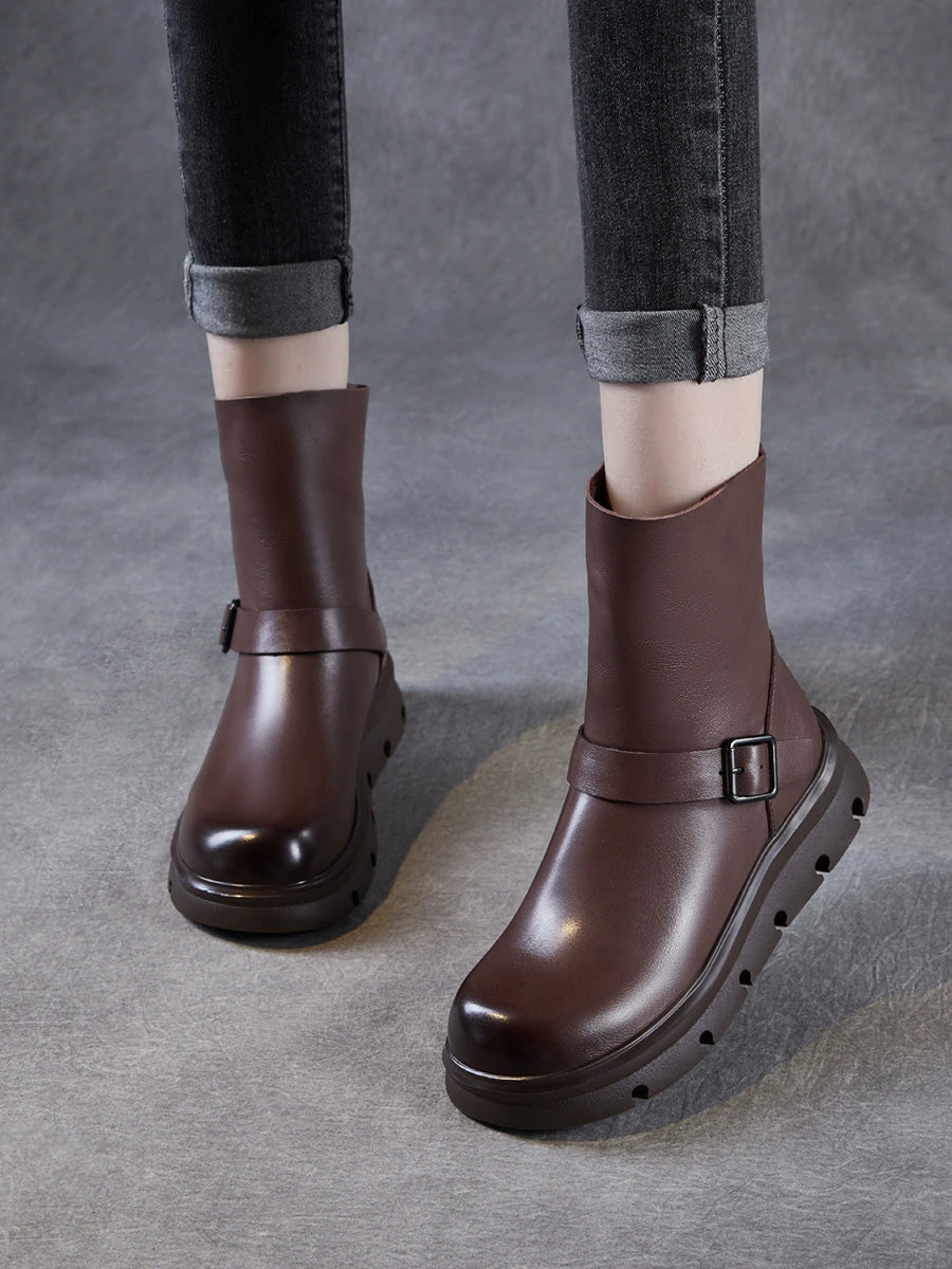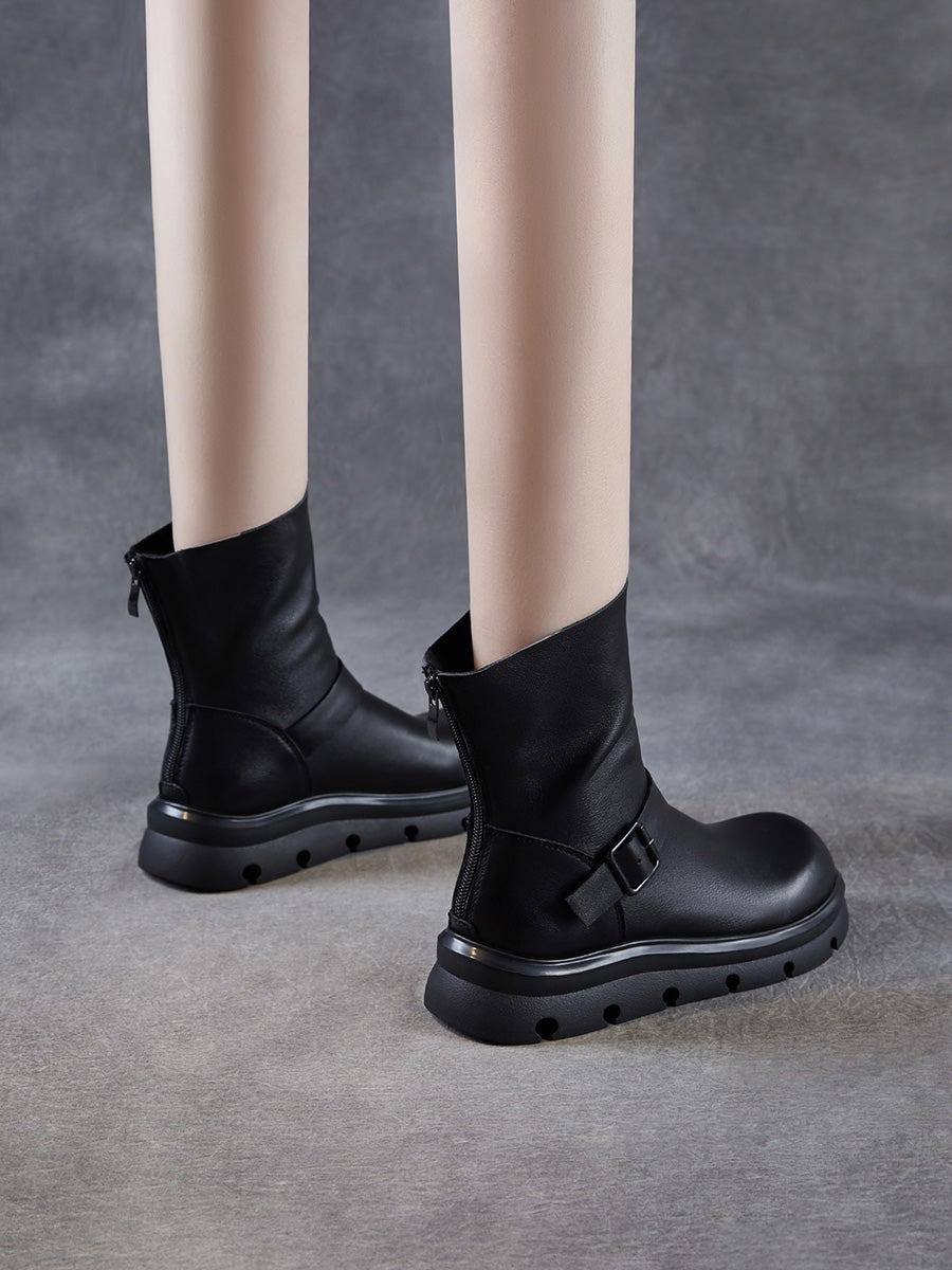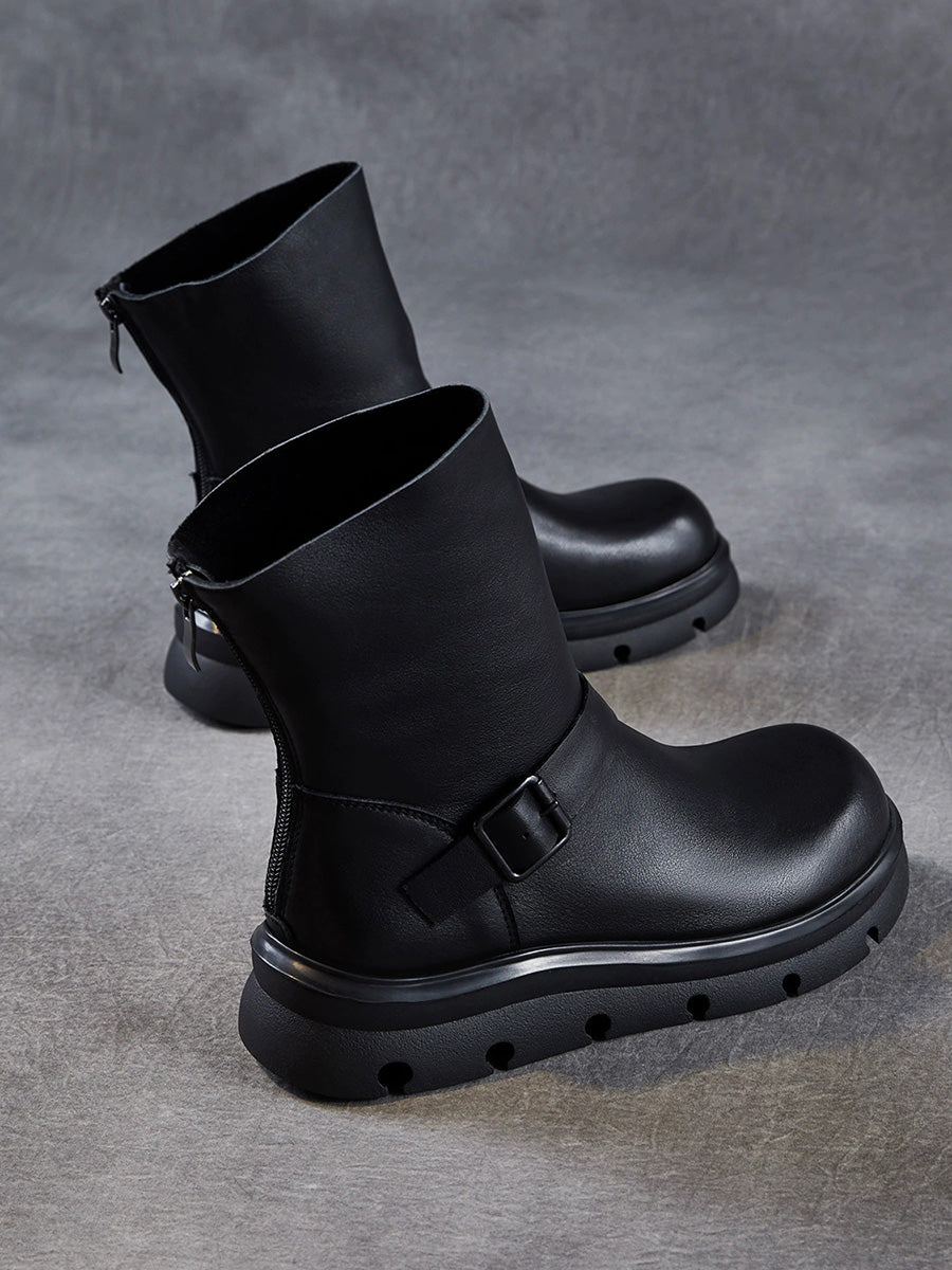 Botas Martin femininas de inverno em couro legítimo, cano médio.