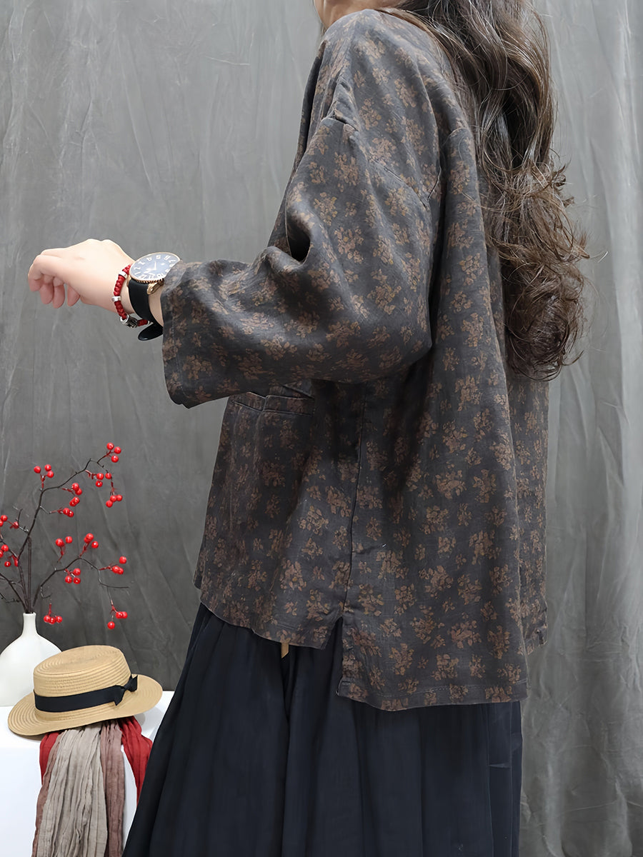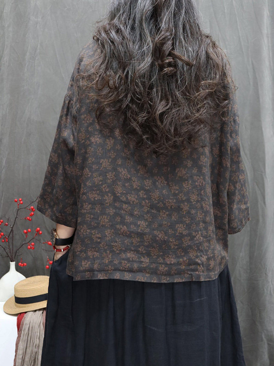 Camisa feminina Artsy Spring Floral 100% linho com gola redonda