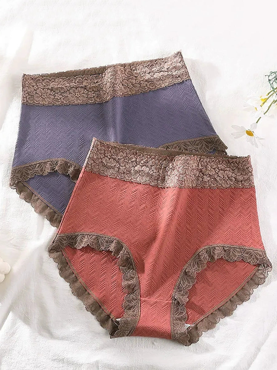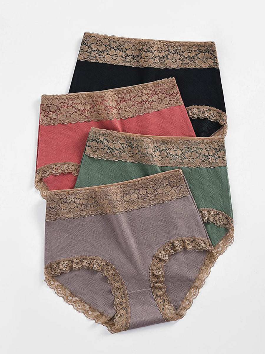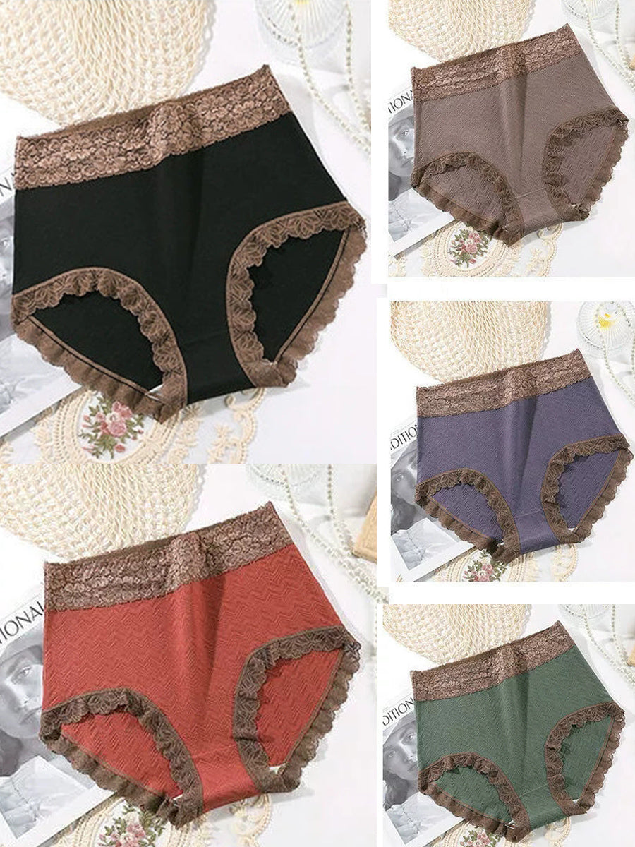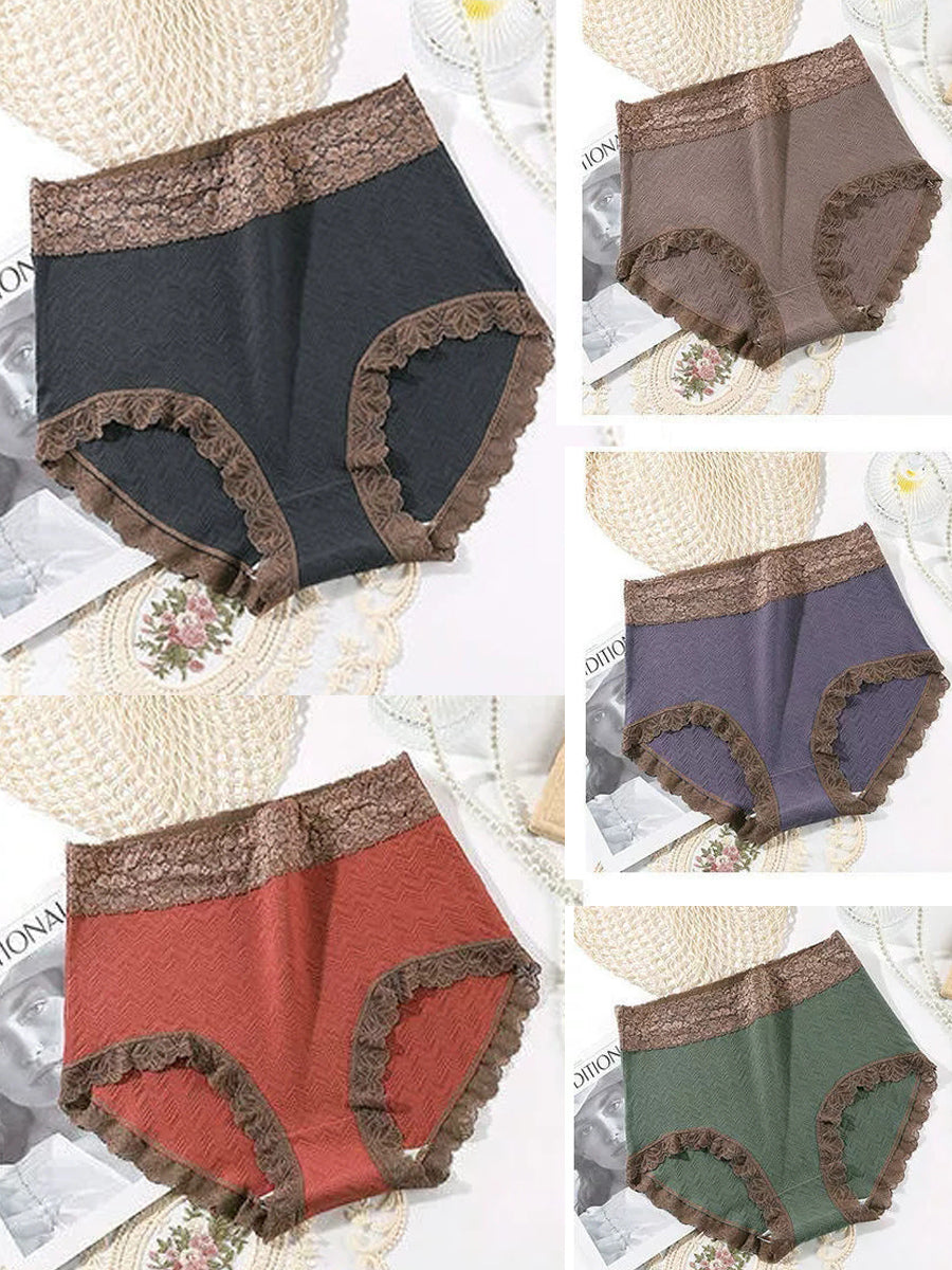 Conjunto de 5 peças de calcinhas femininas de cintura alta com detalhes em renda.