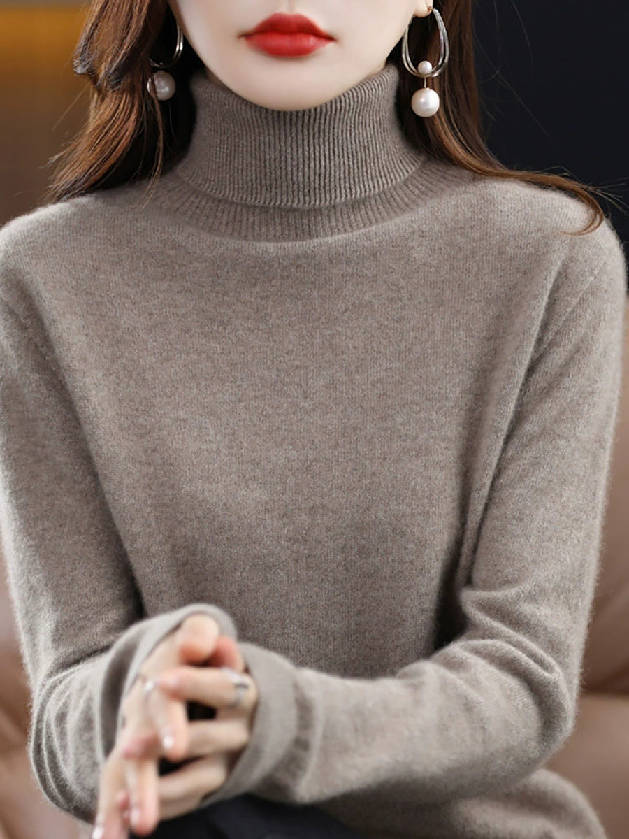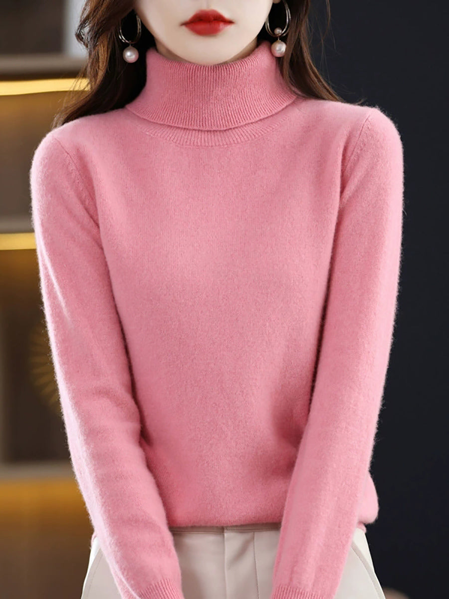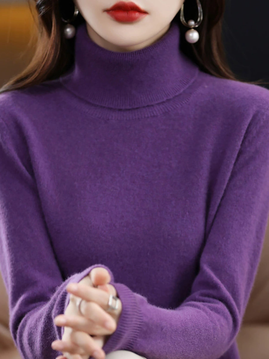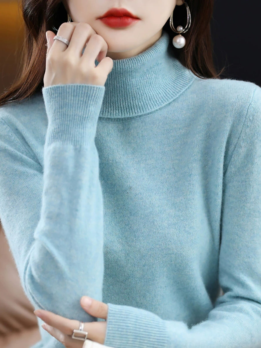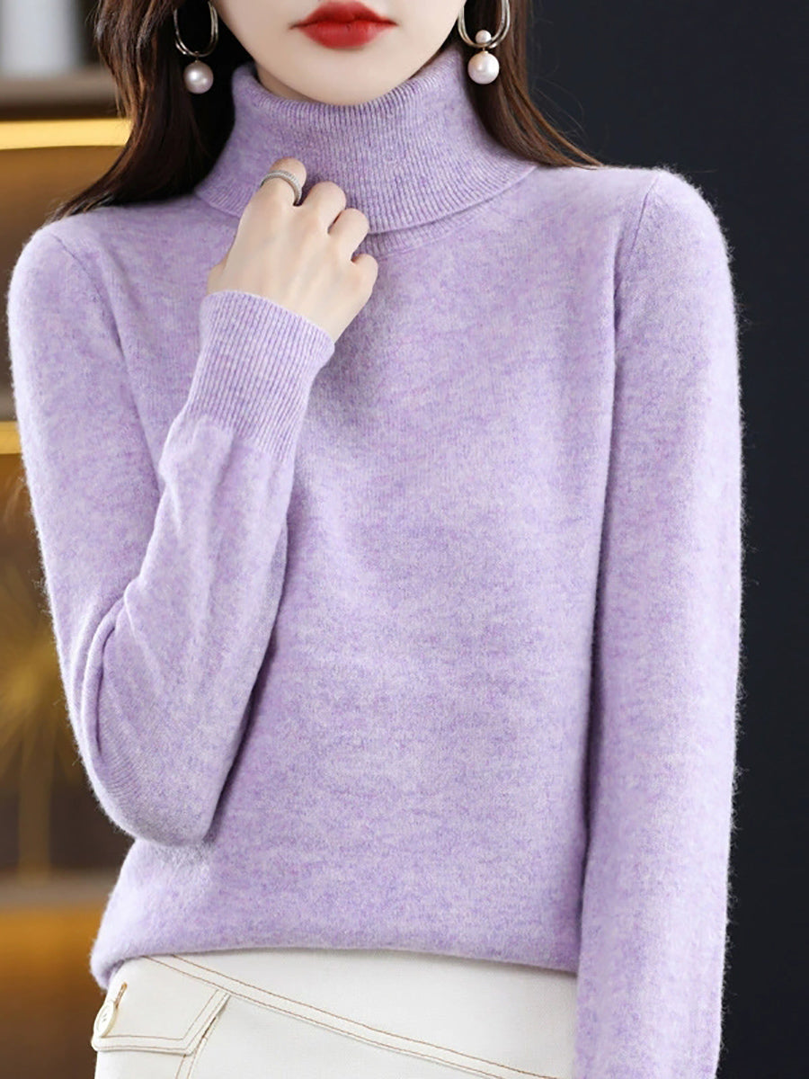 Suéter feminino de gola alta em cores lisas e estilo artístico para o outono.