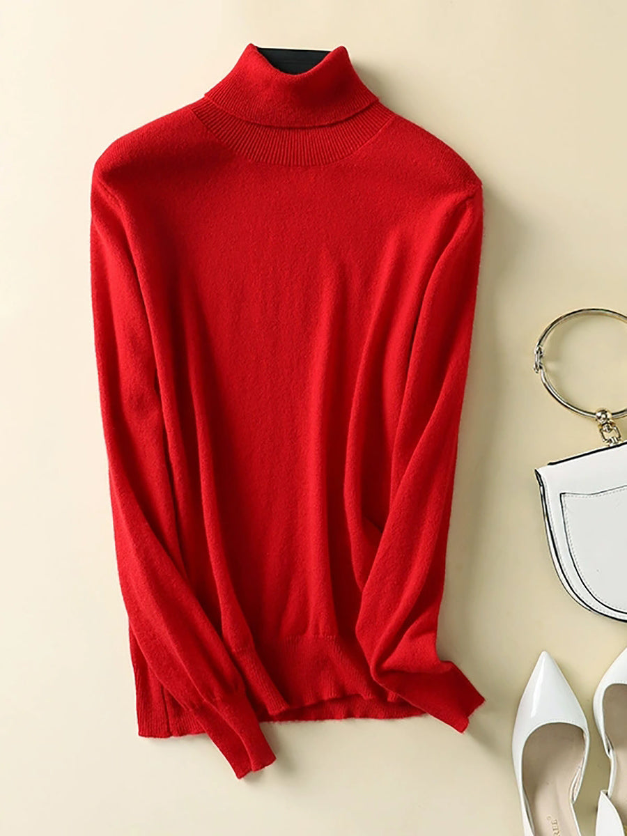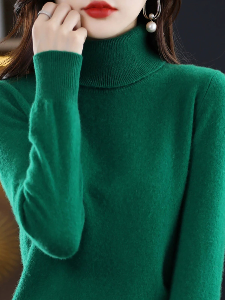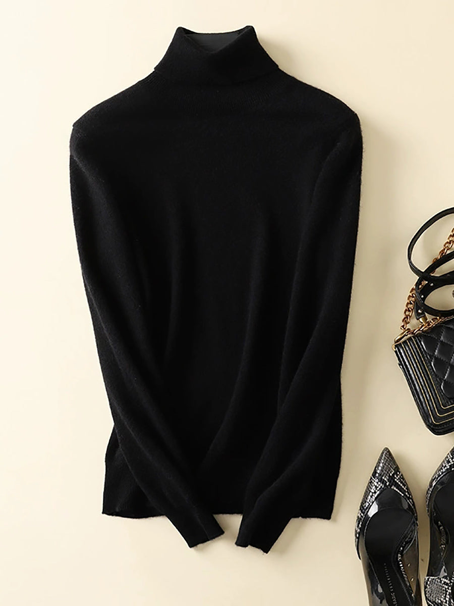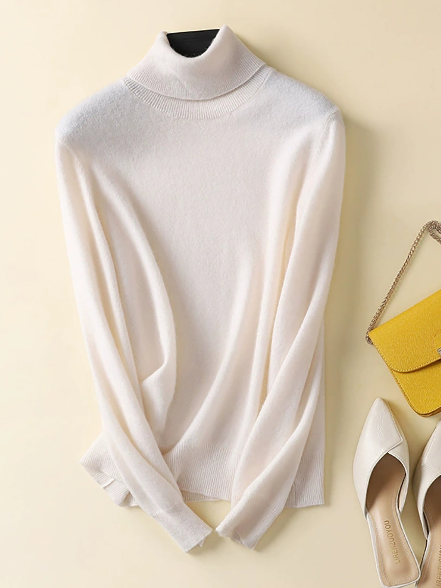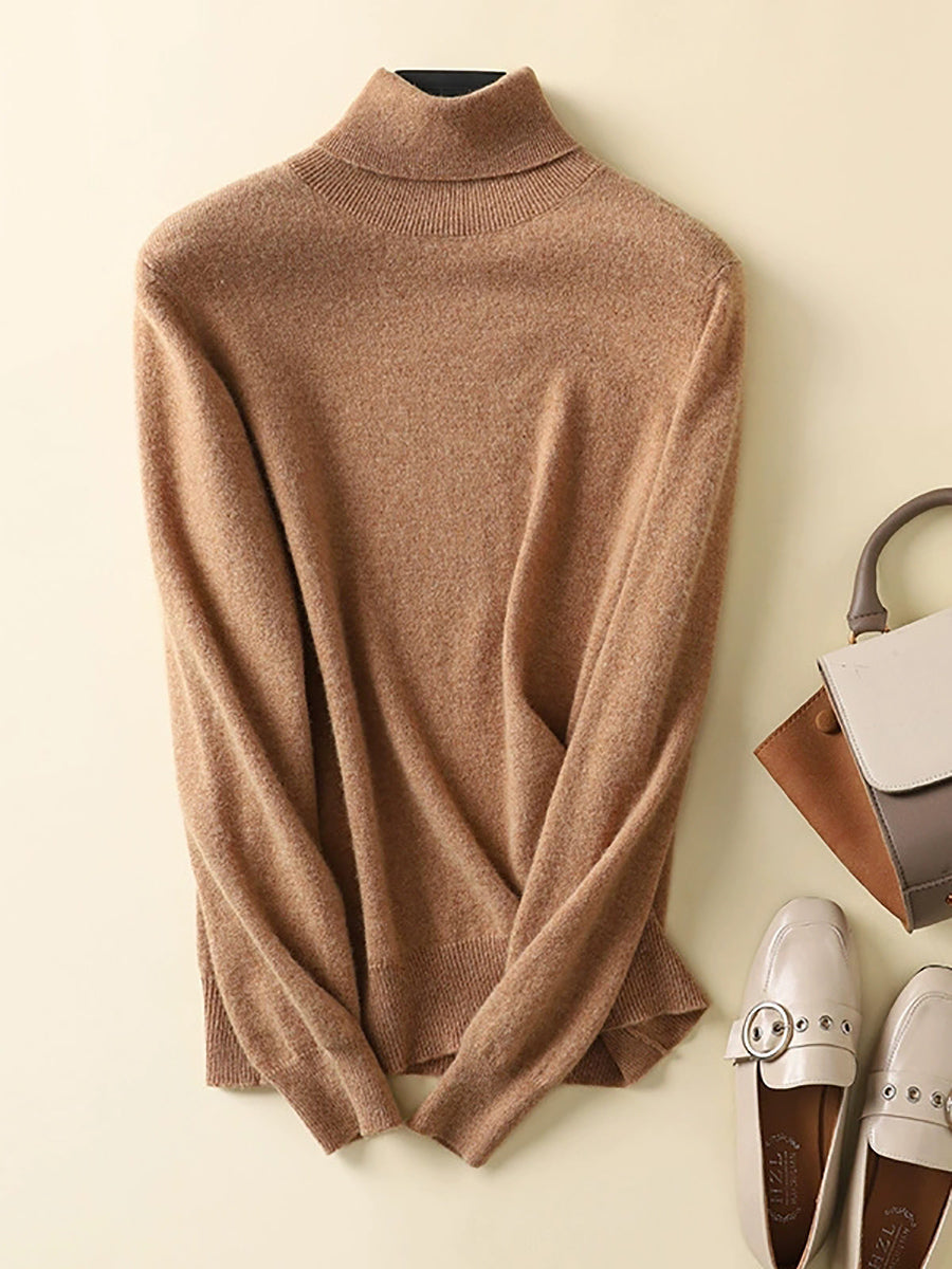 Suéter feminino de gola alta em cores lisas e estilo artístico para o outono.