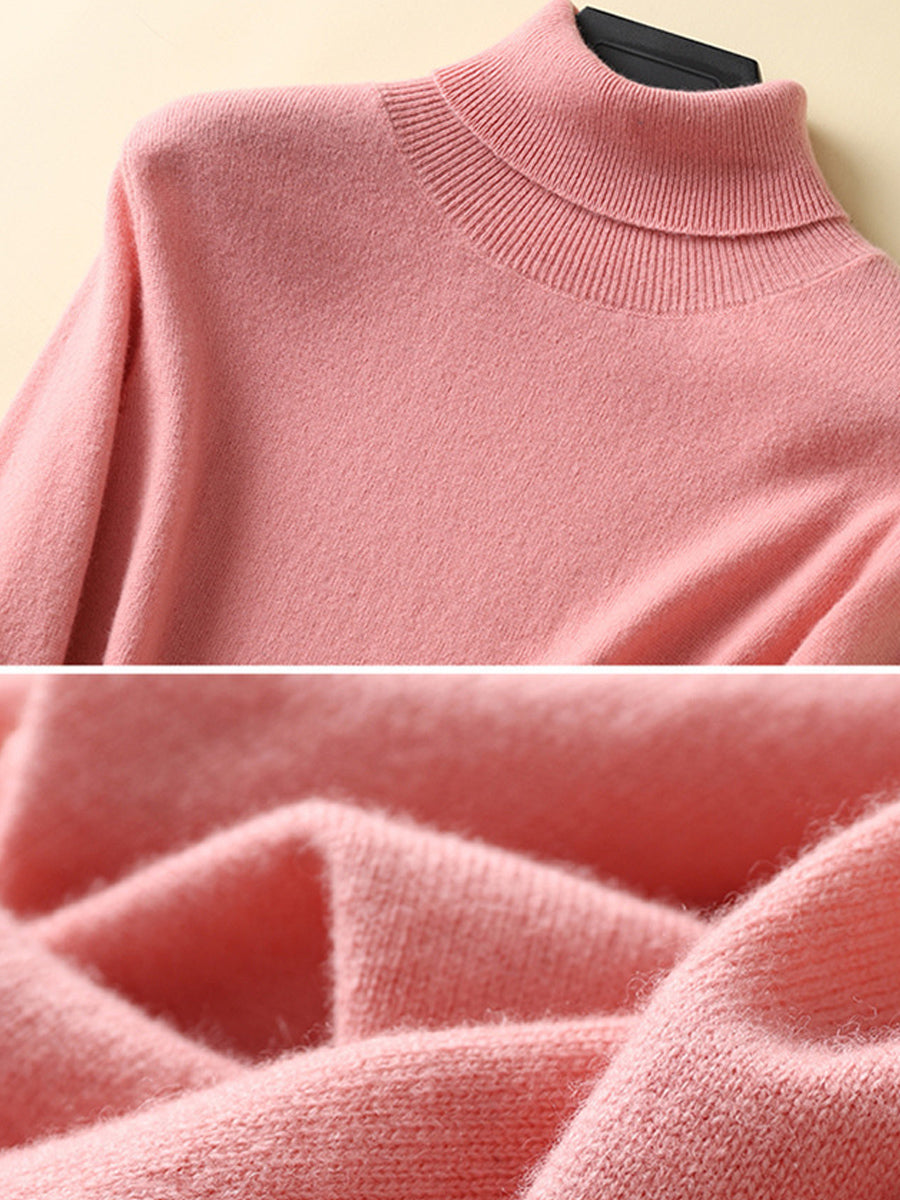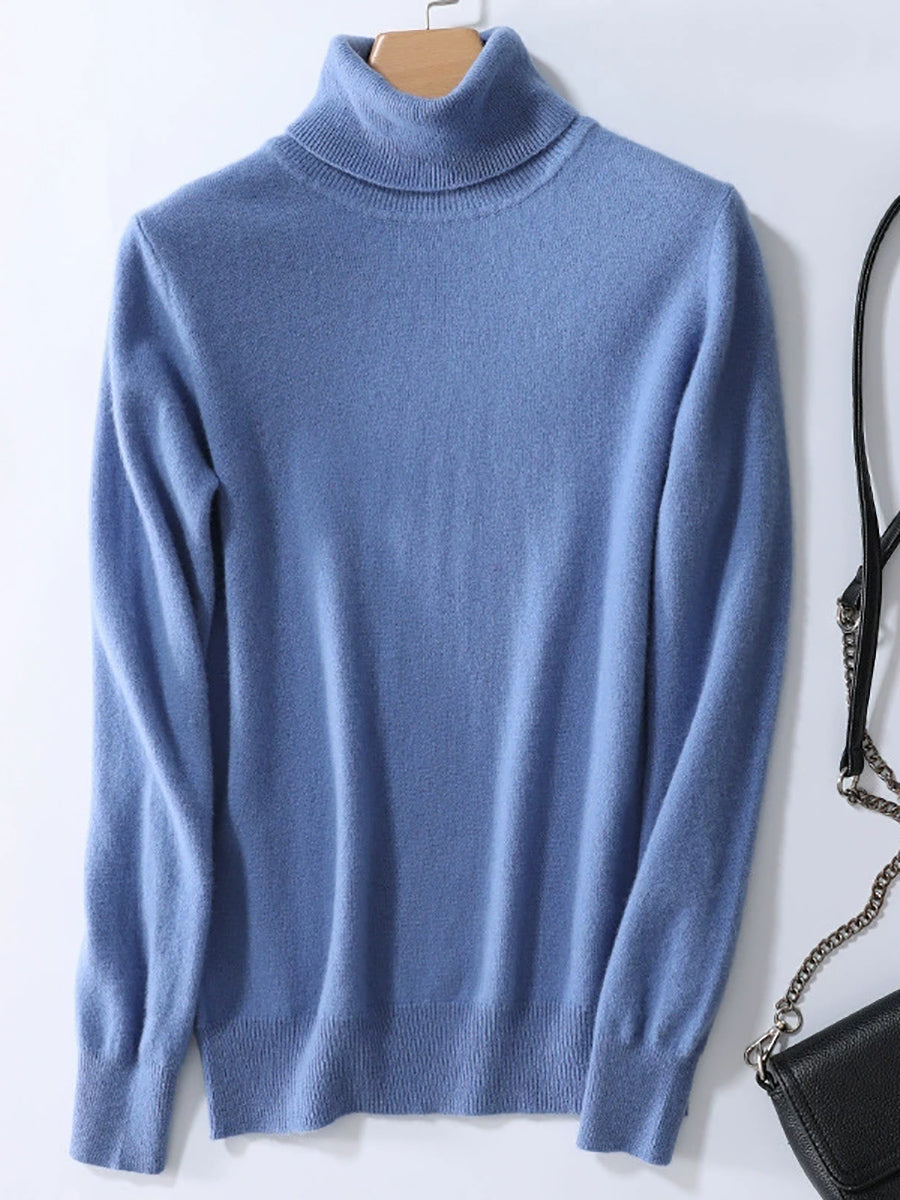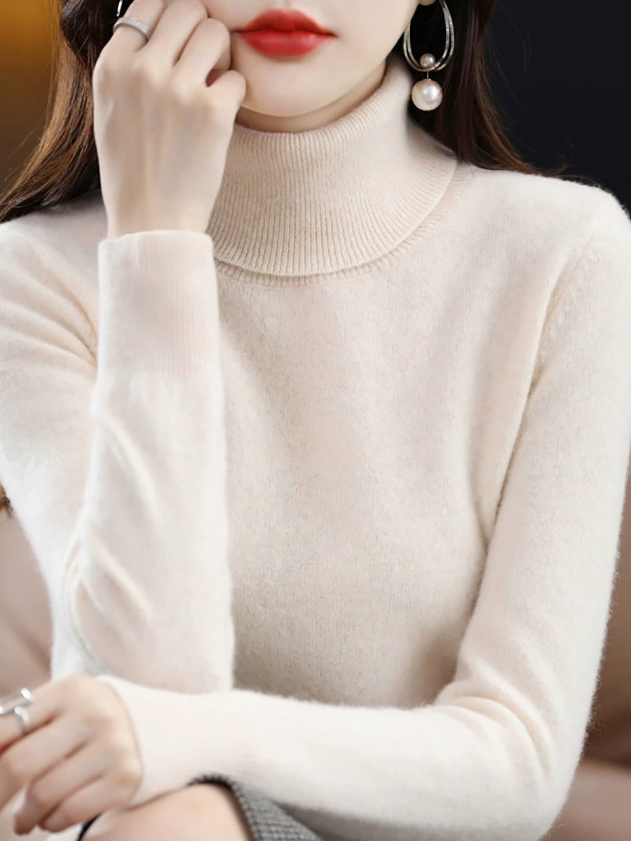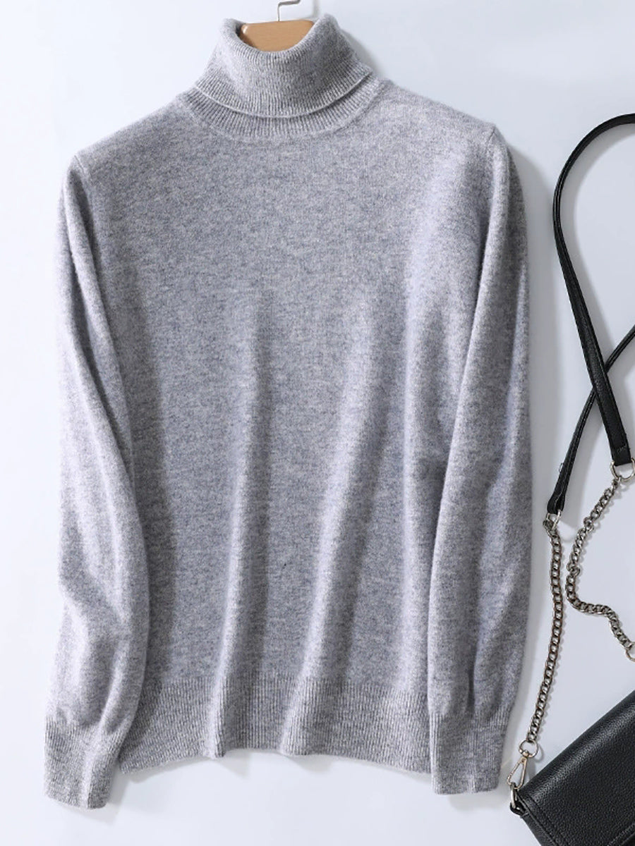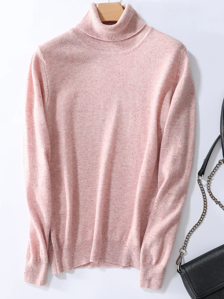 Suéter feminino de gola alta em cores lisas e estilo artístico para o outono.