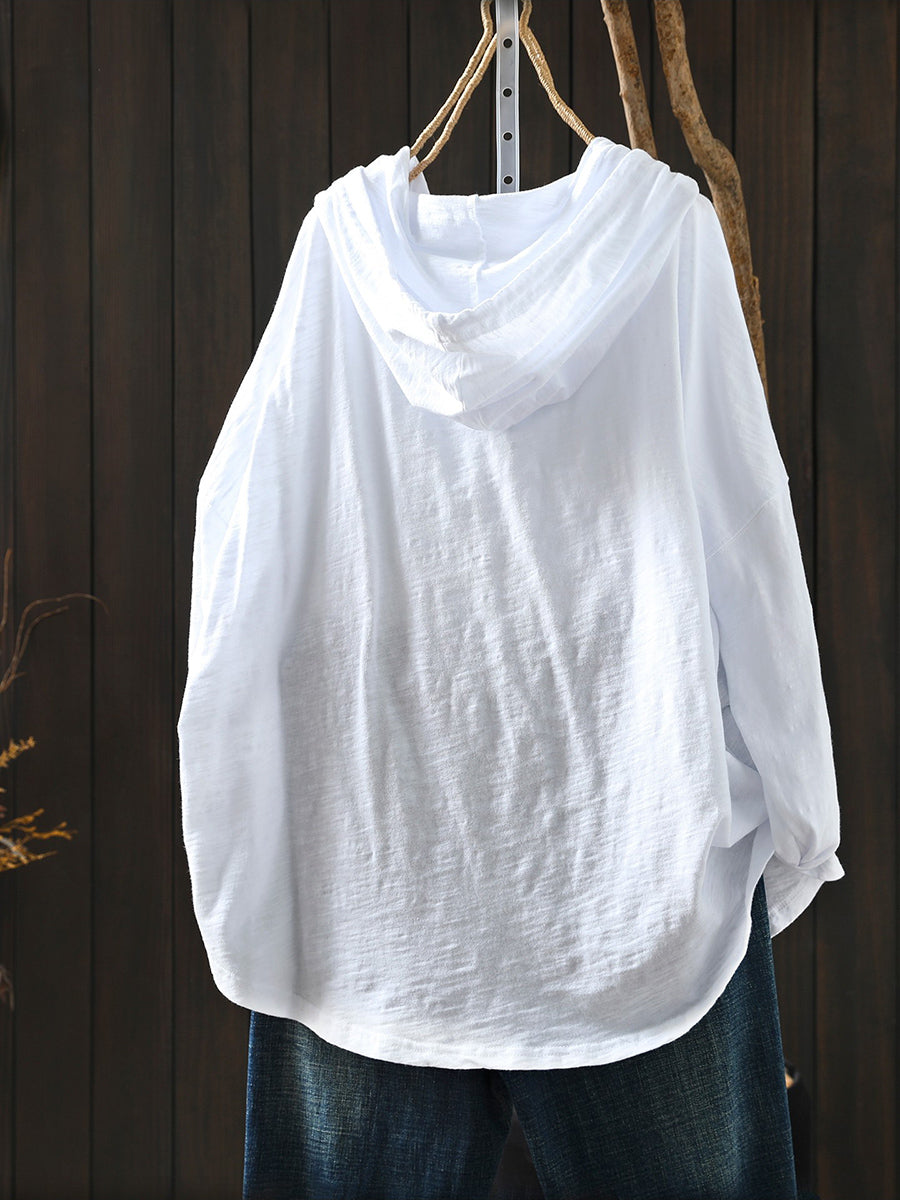 Moletom feminino casual de primavera, cor lisa, 100% algodão.