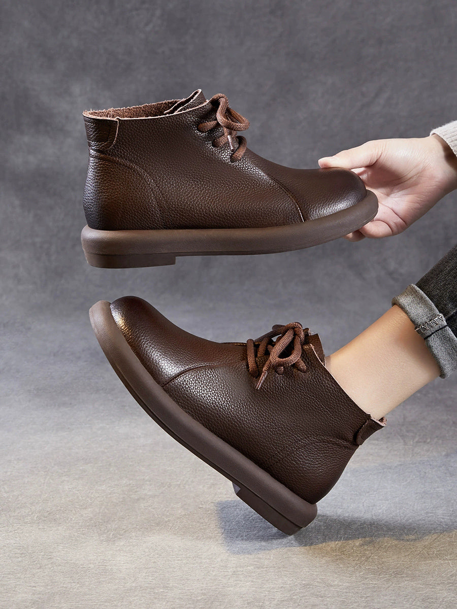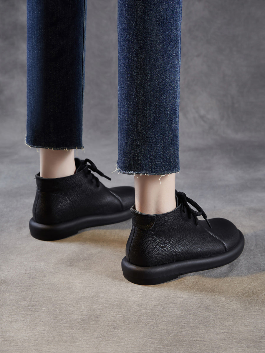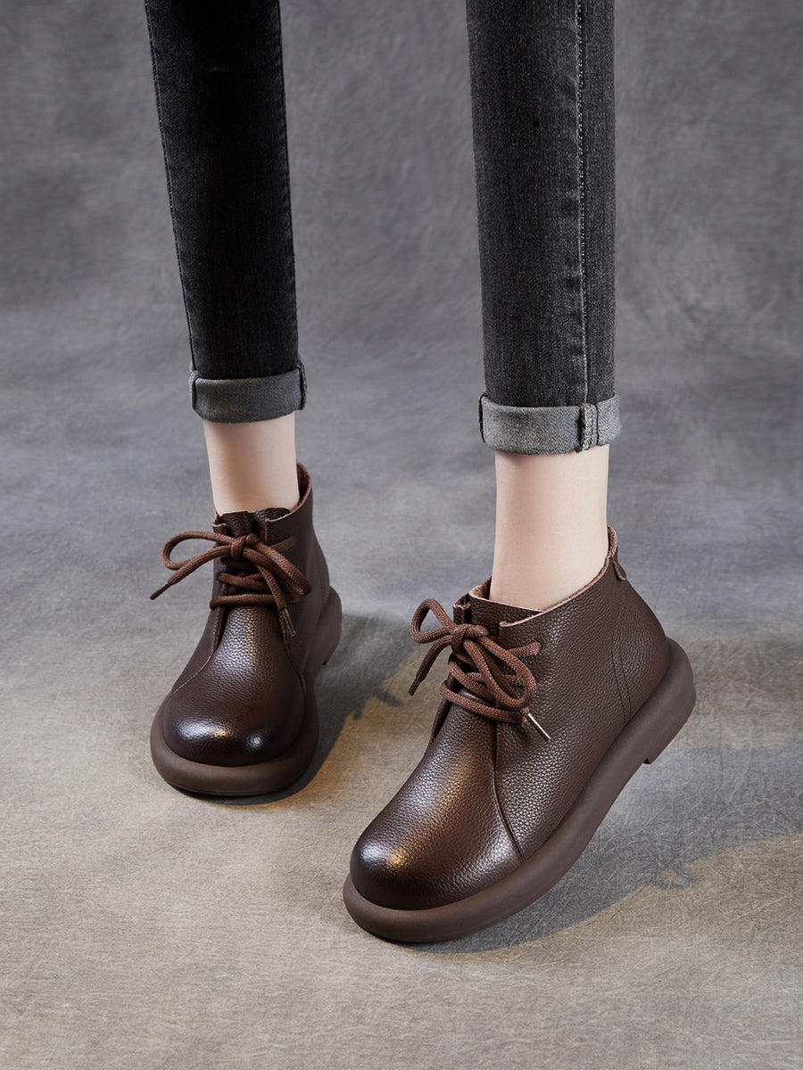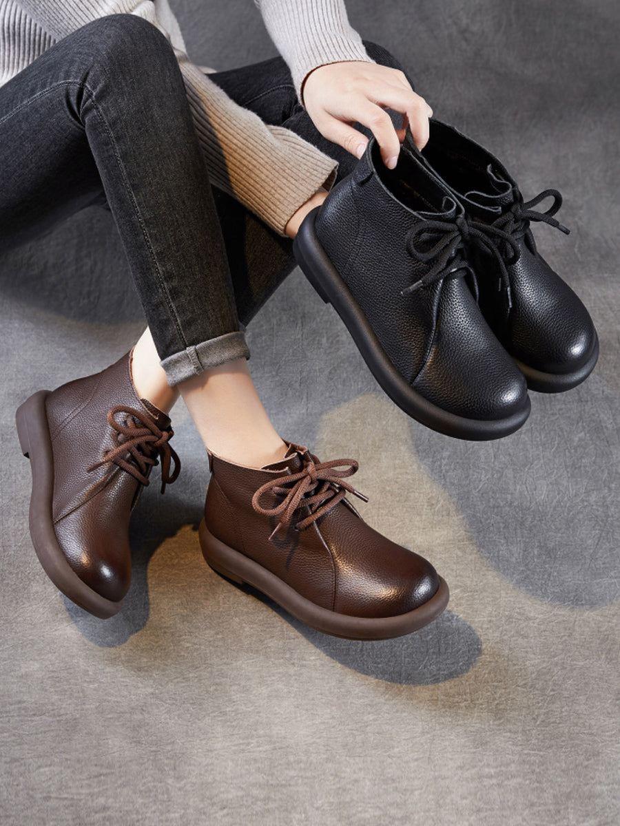 Botas de cano curto femininas vintage em couro legítimo com salto baixo