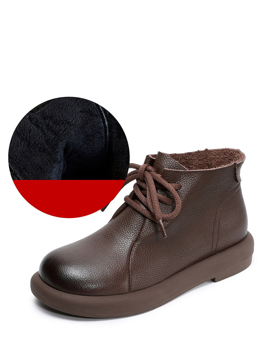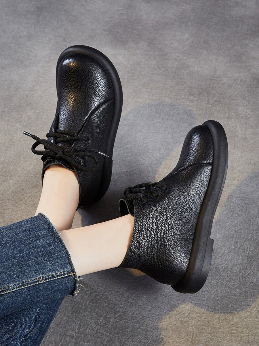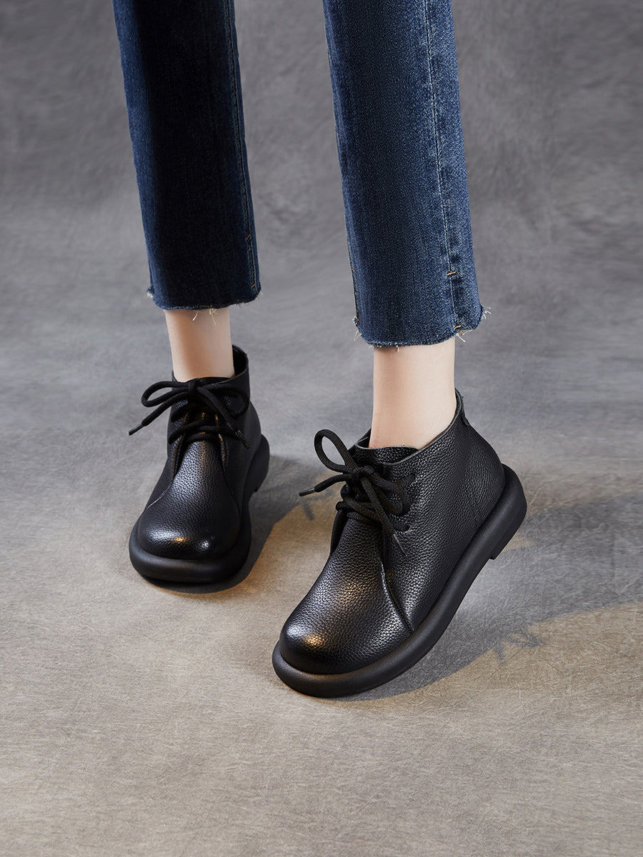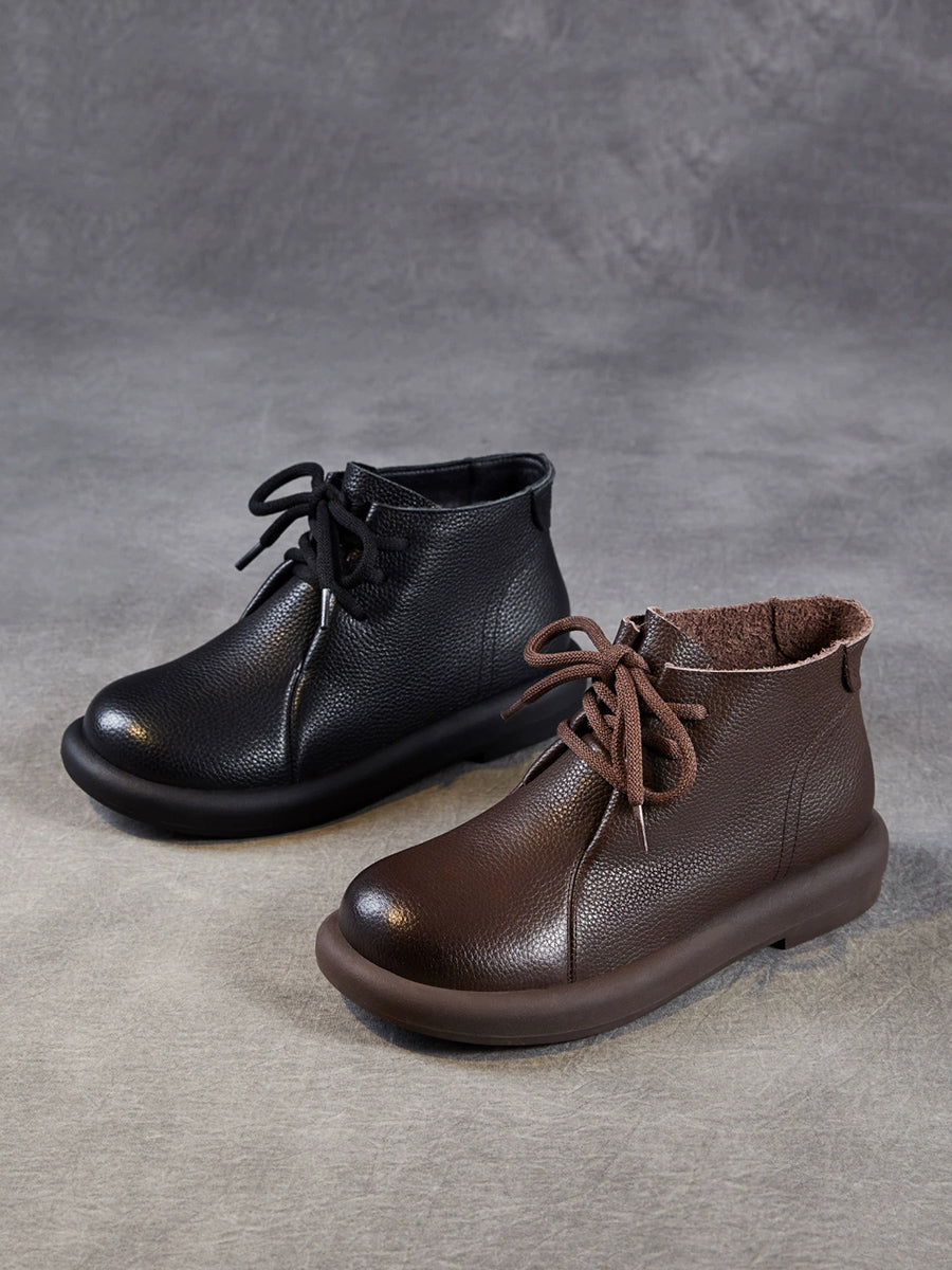 Botas de cano curto femininas vintage em couro legítimo com salto baixo