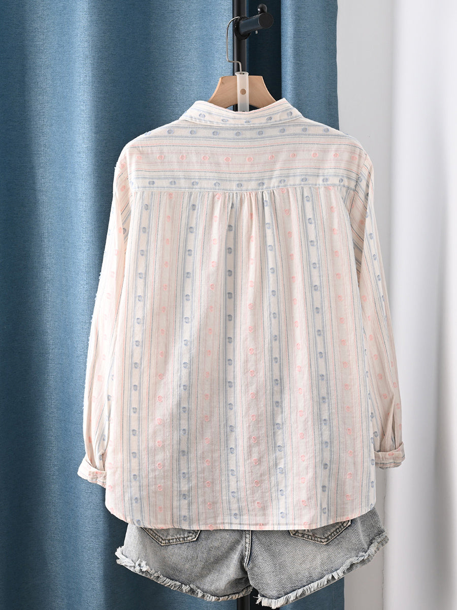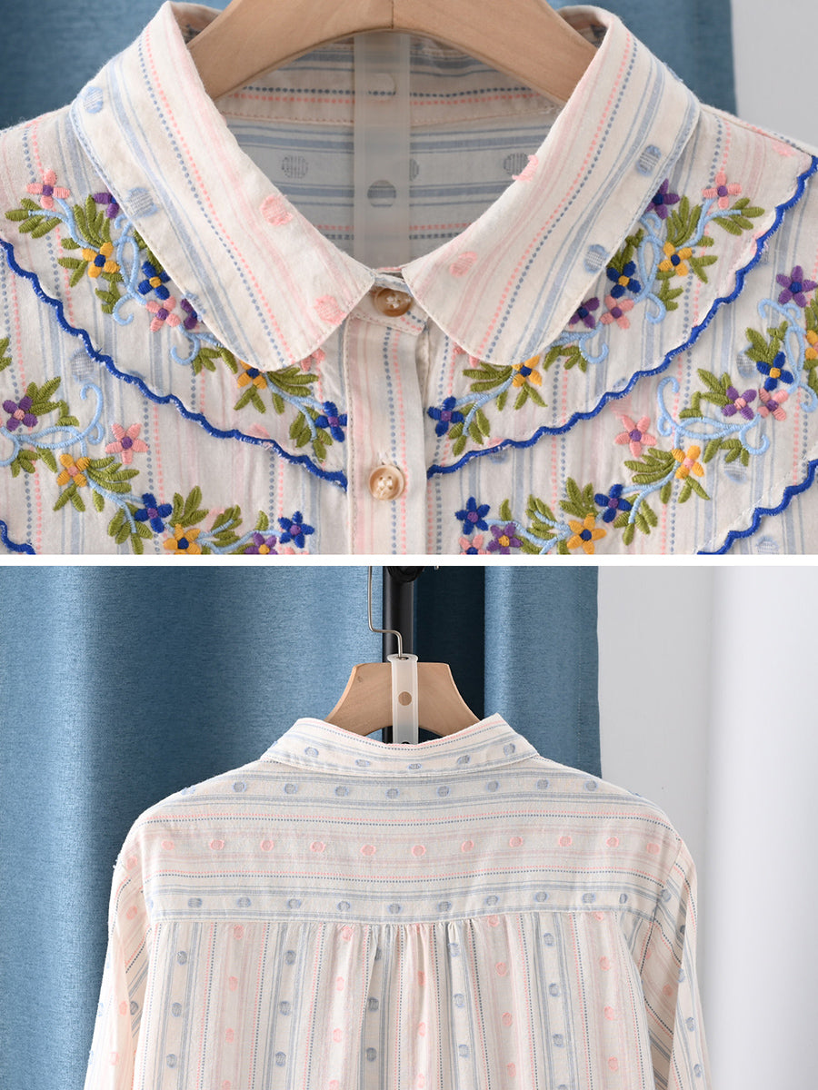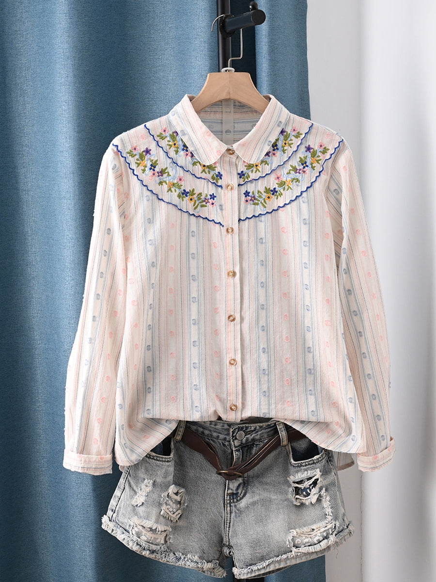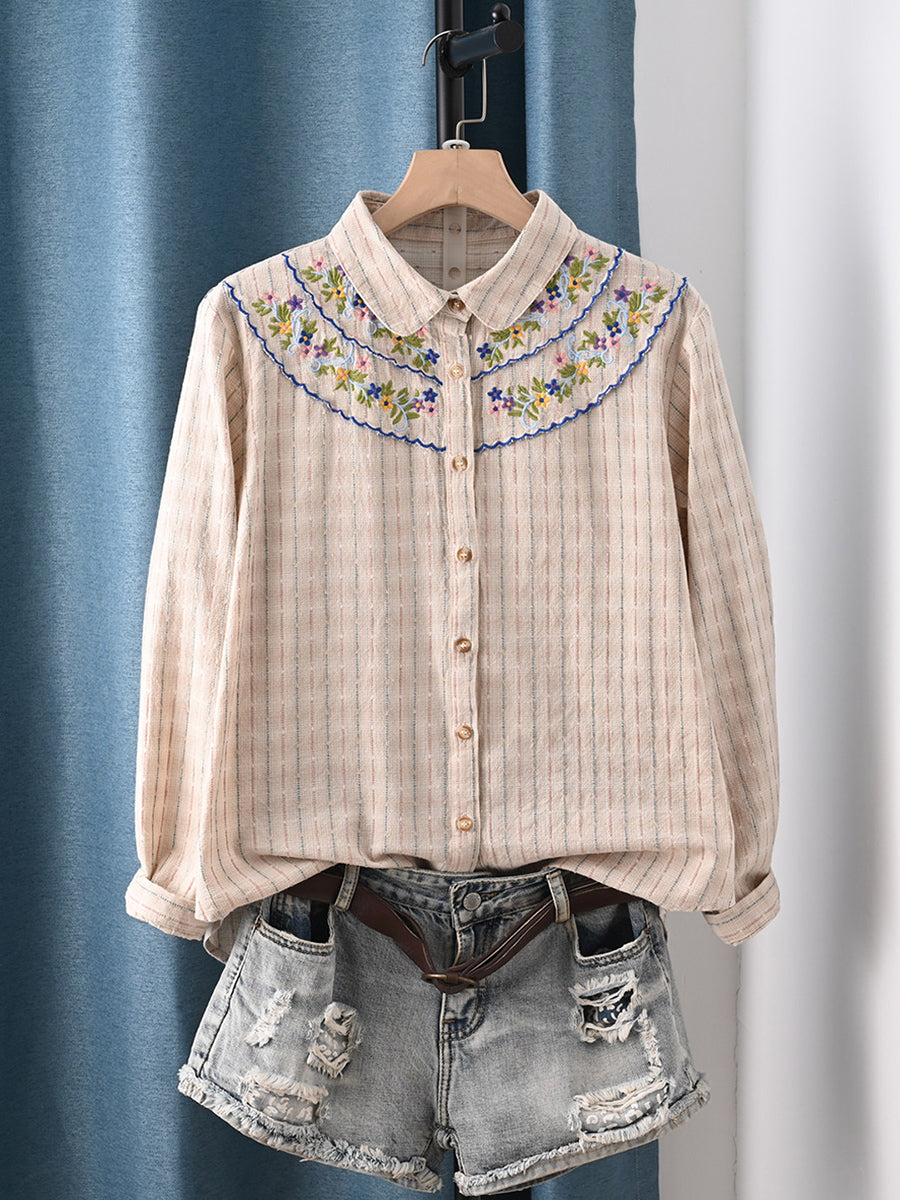 Camisa feminina de primavera com bordado artístico, 100% algodão.