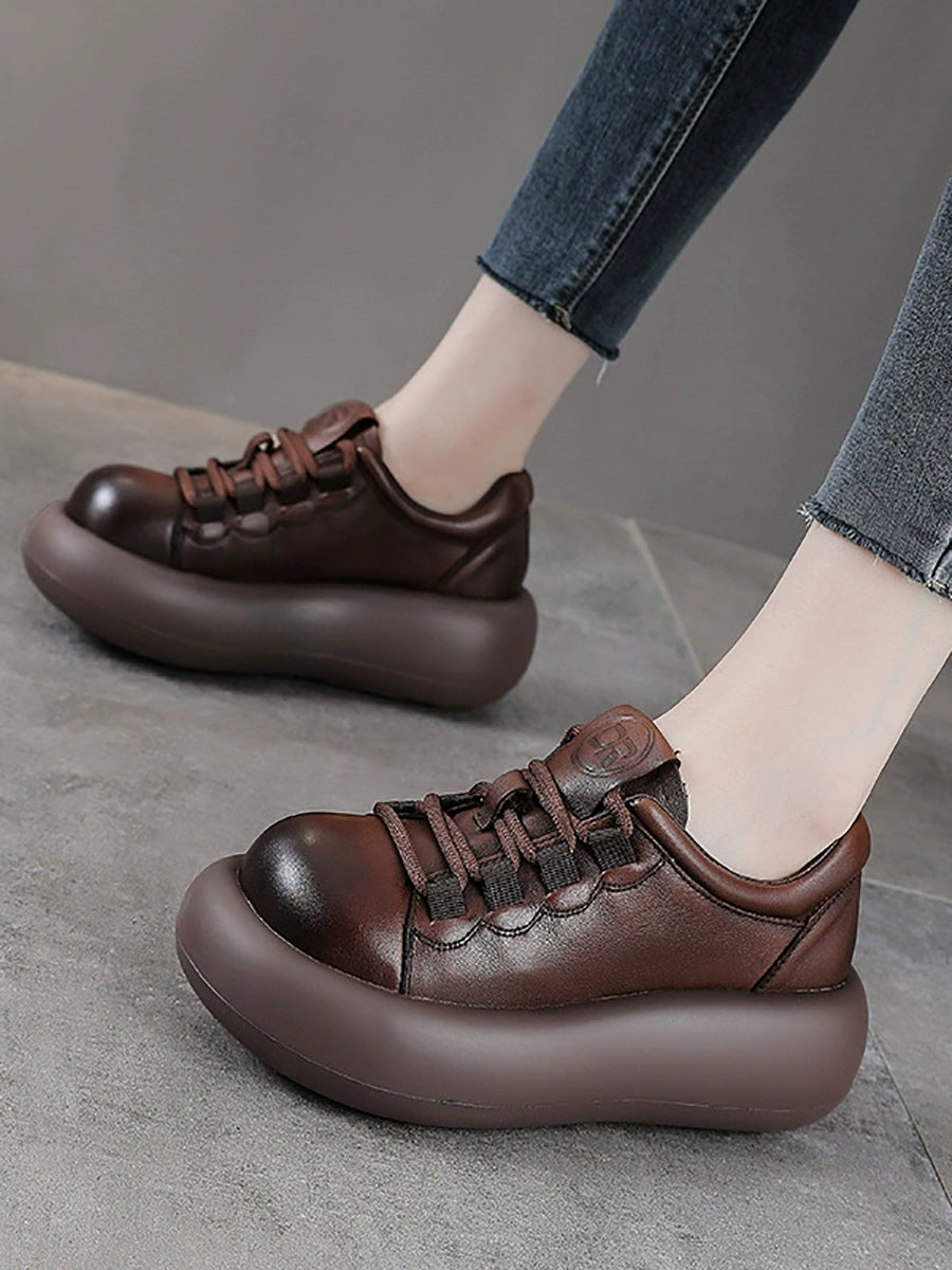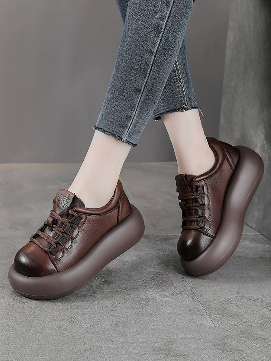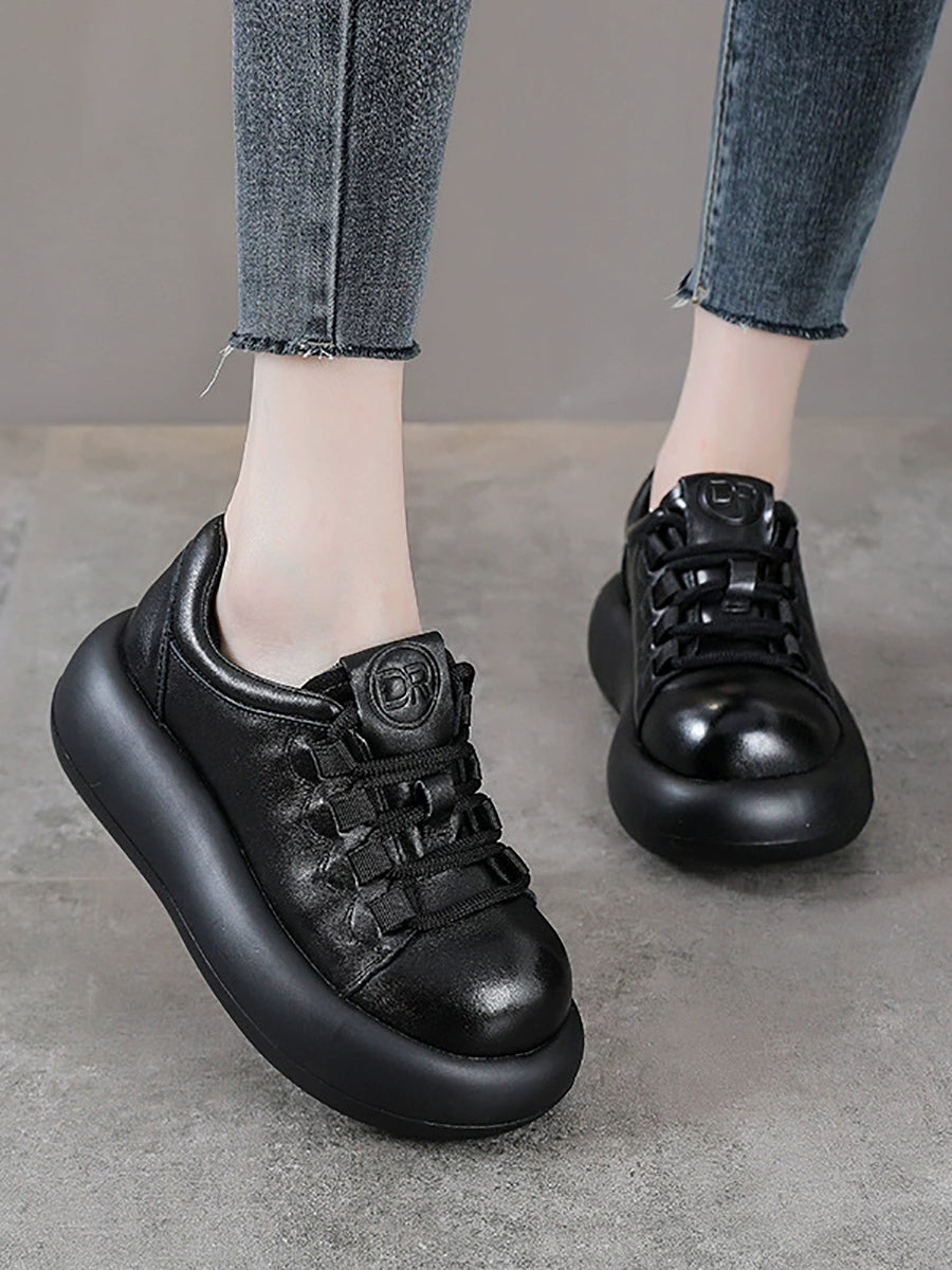 Sapatos plataforma femininos de couro genuíno para a primavera