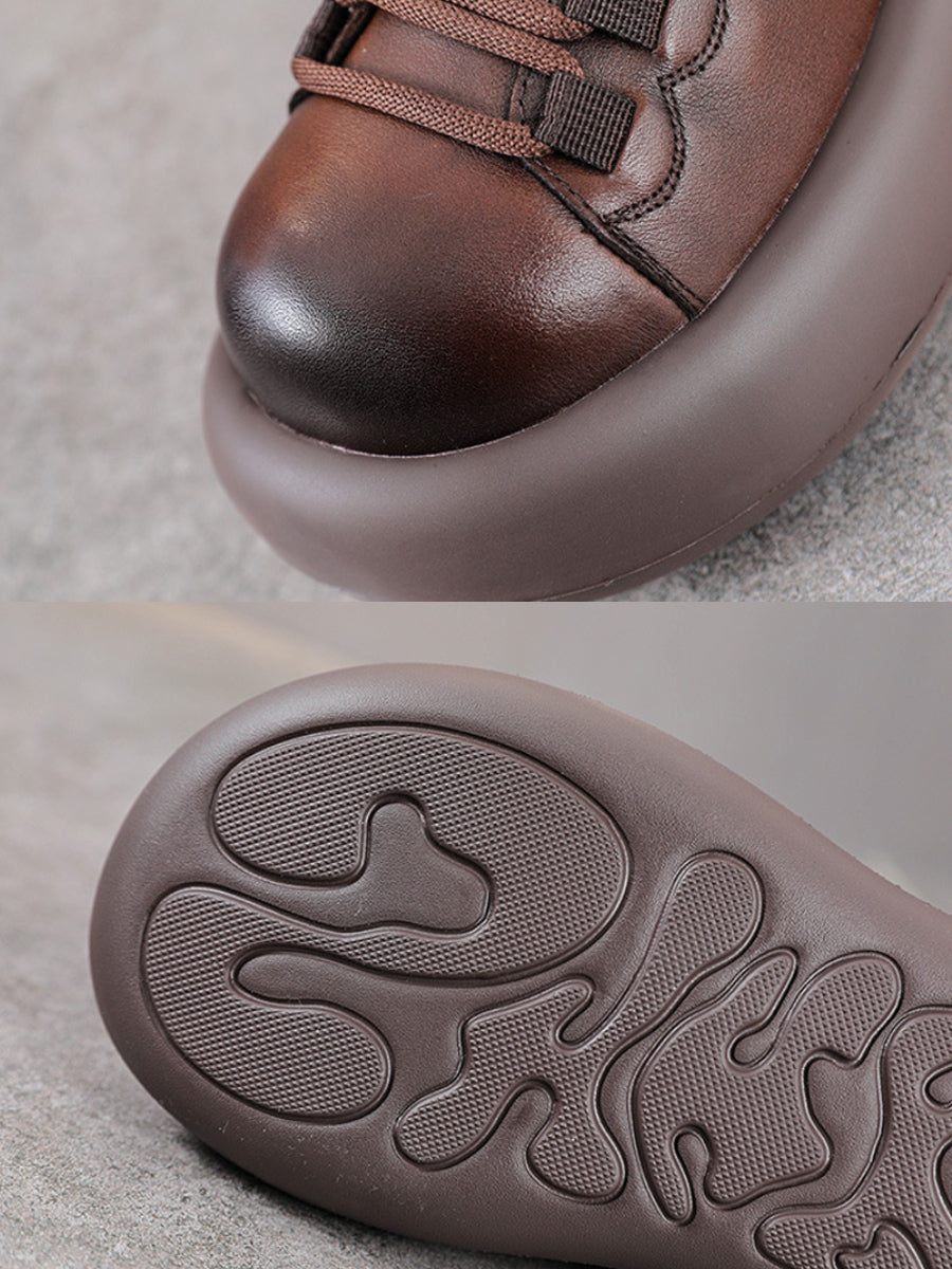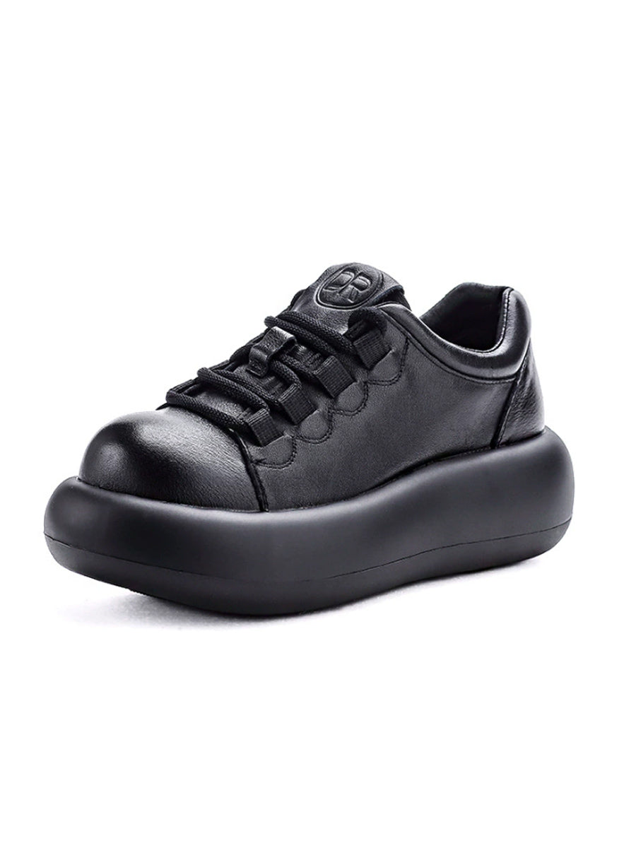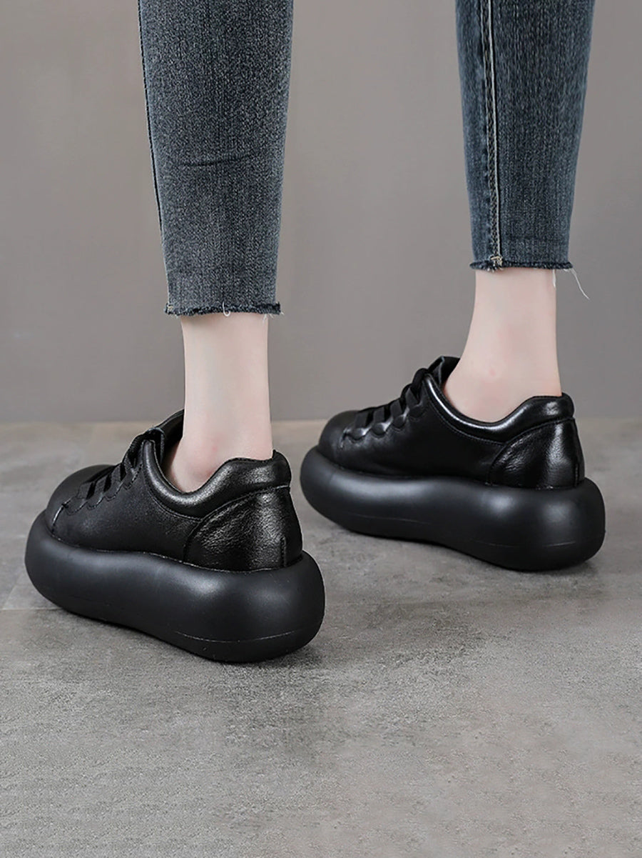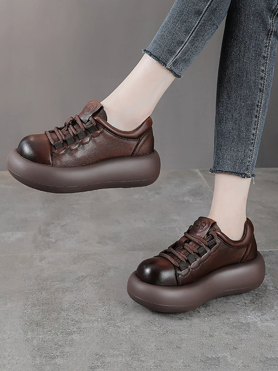 Sapatos plataforma femininos de couro genuíno para a primavera