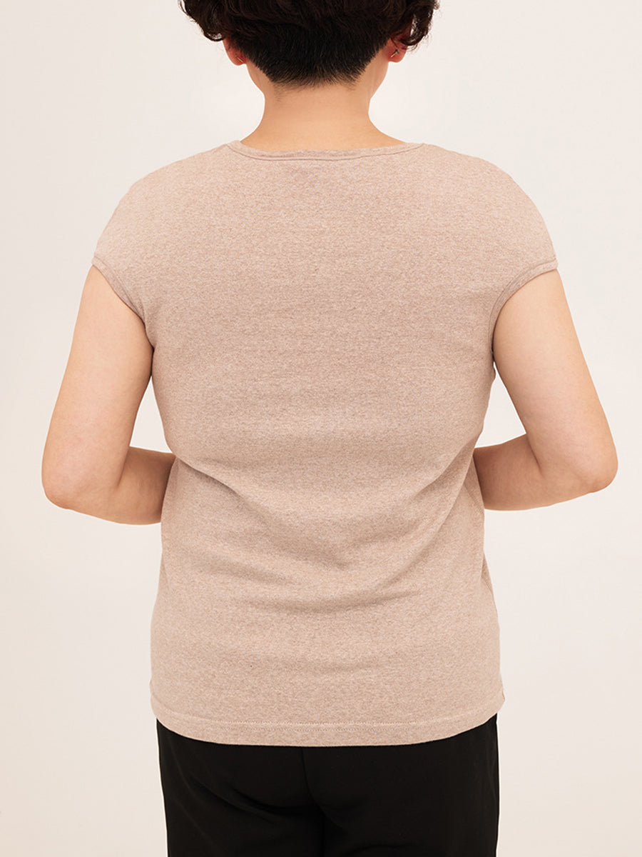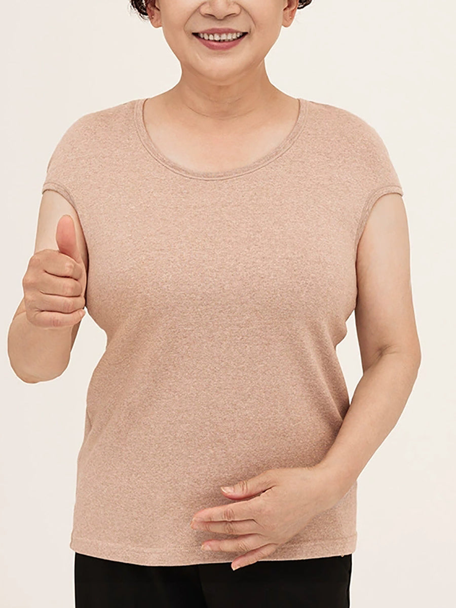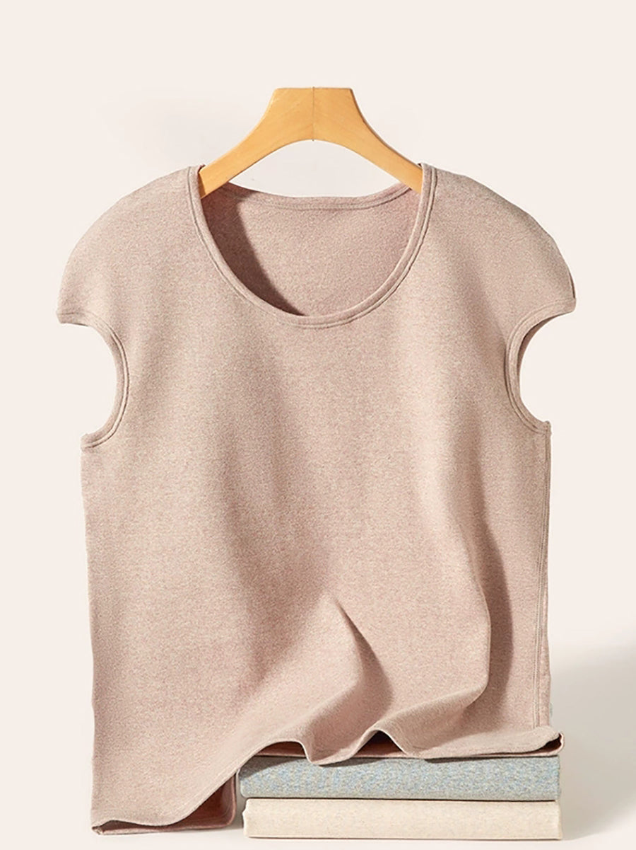 Regata feminina casual de gola redonda em cor lisa
