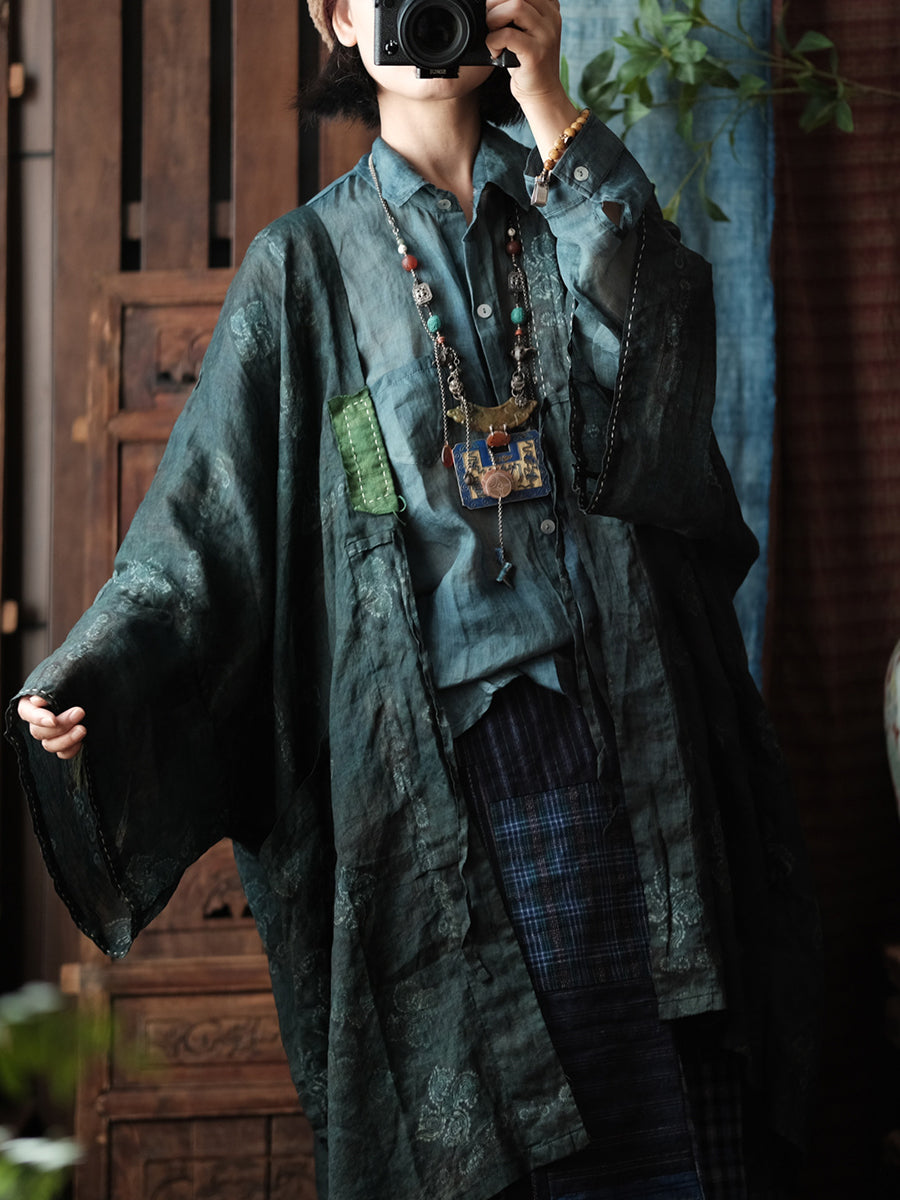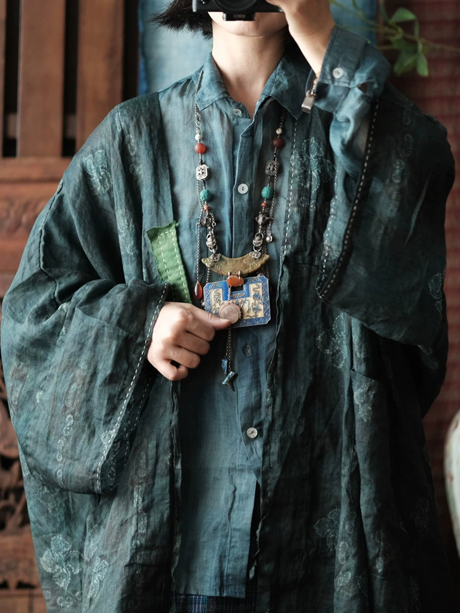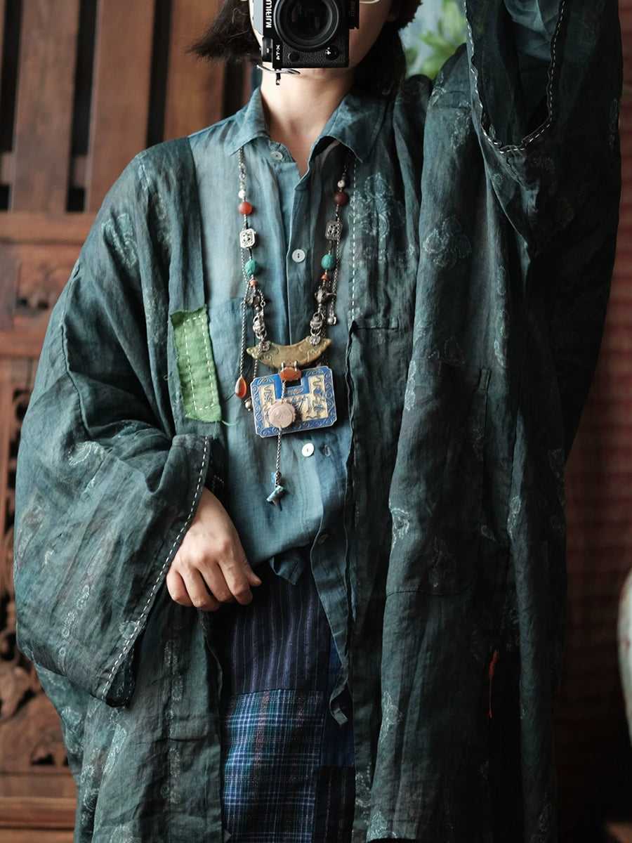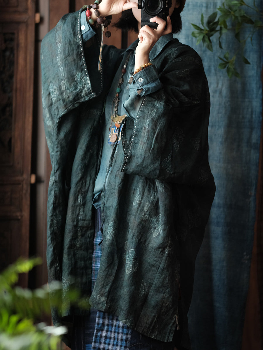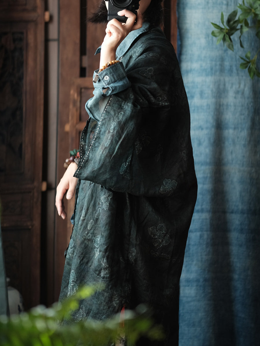 Casaco feminino de rami com estampa floral vintage e decote em V para a primavera