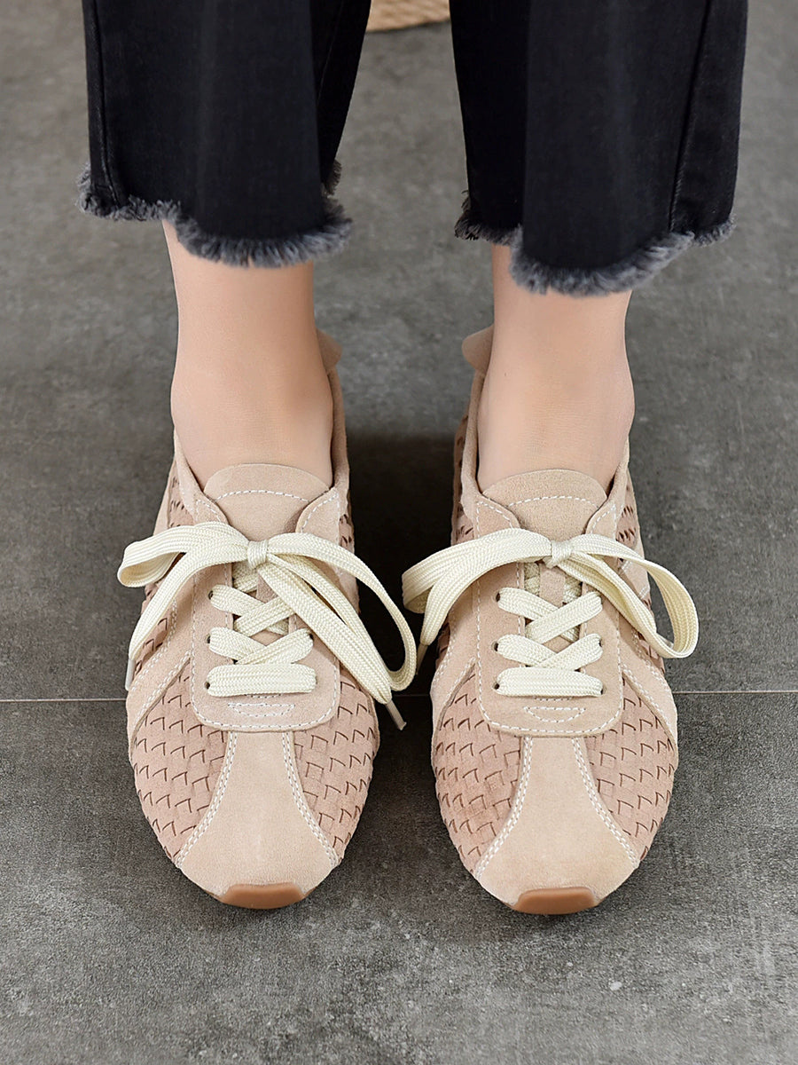 Sapatos femininos casuais de couro com detalhes em rasteirinhas
