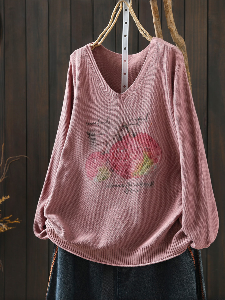 Blusa feminina casual de primavera com decote em V na cor lichia.