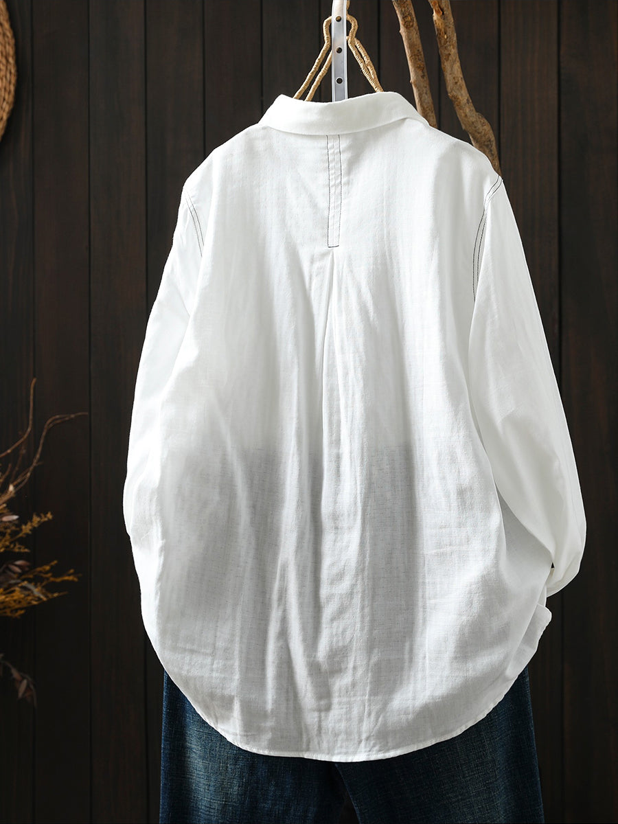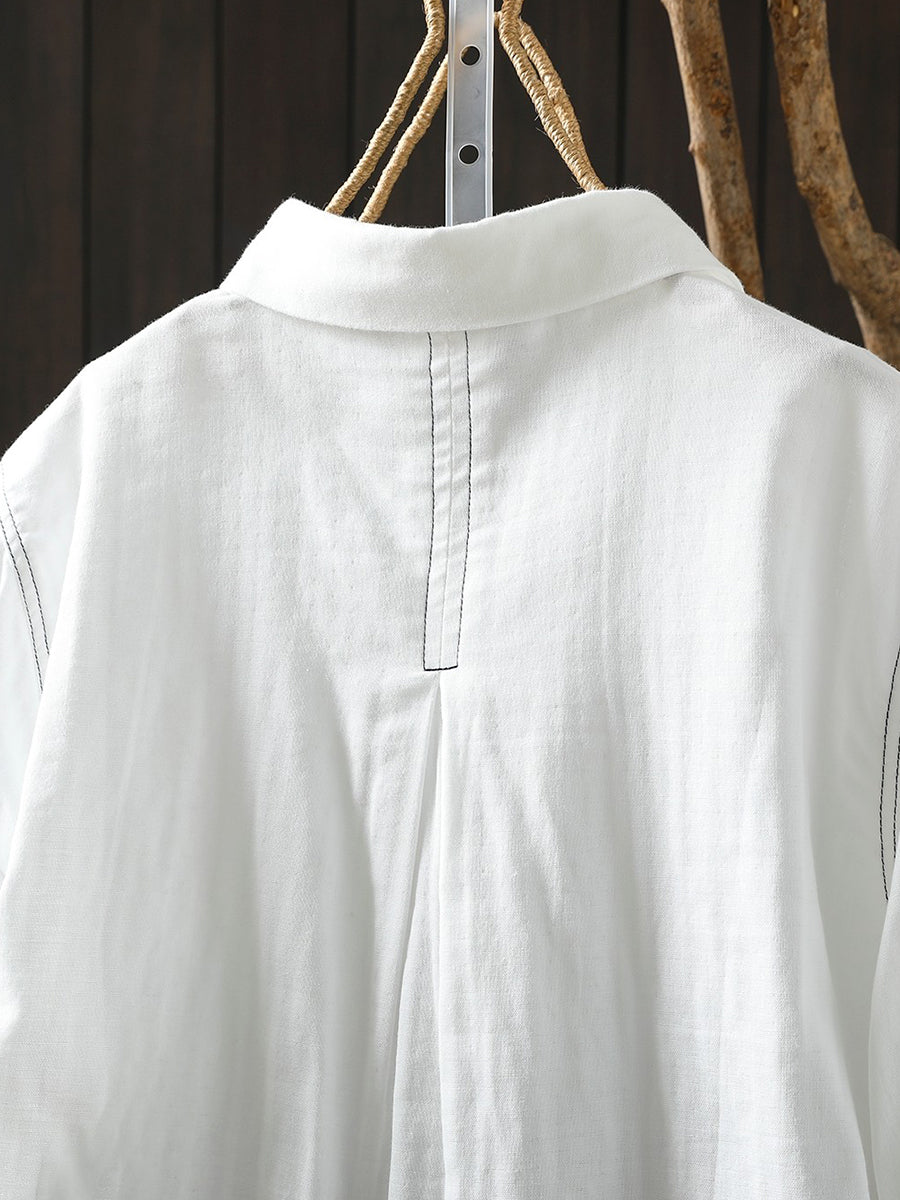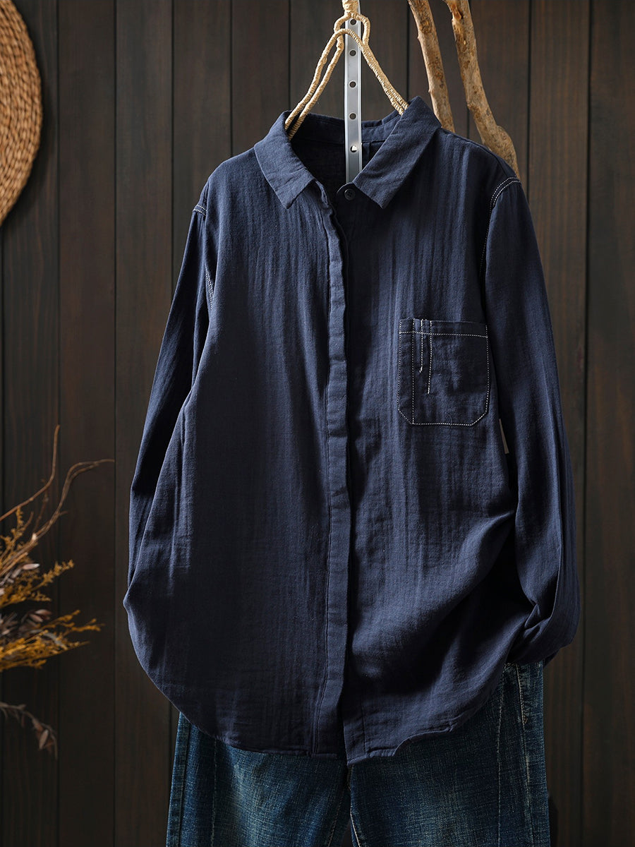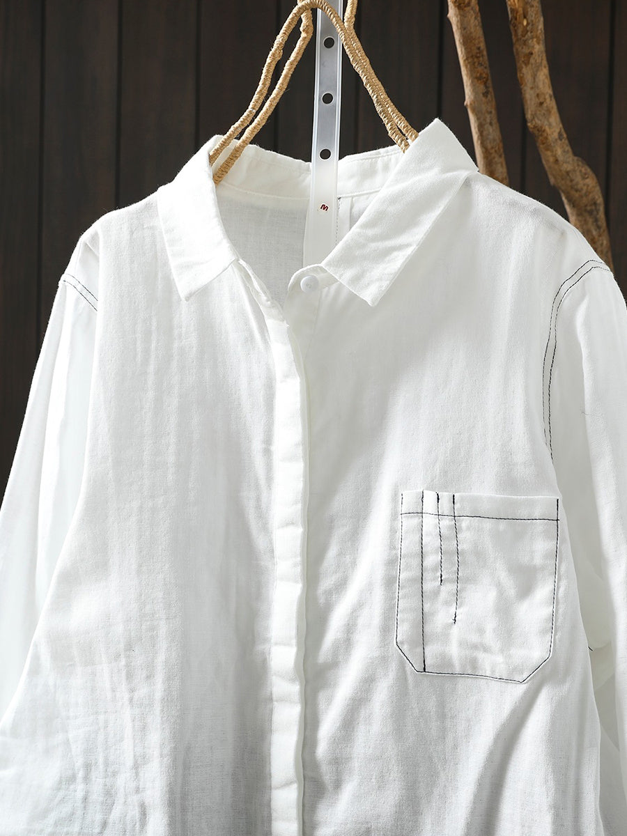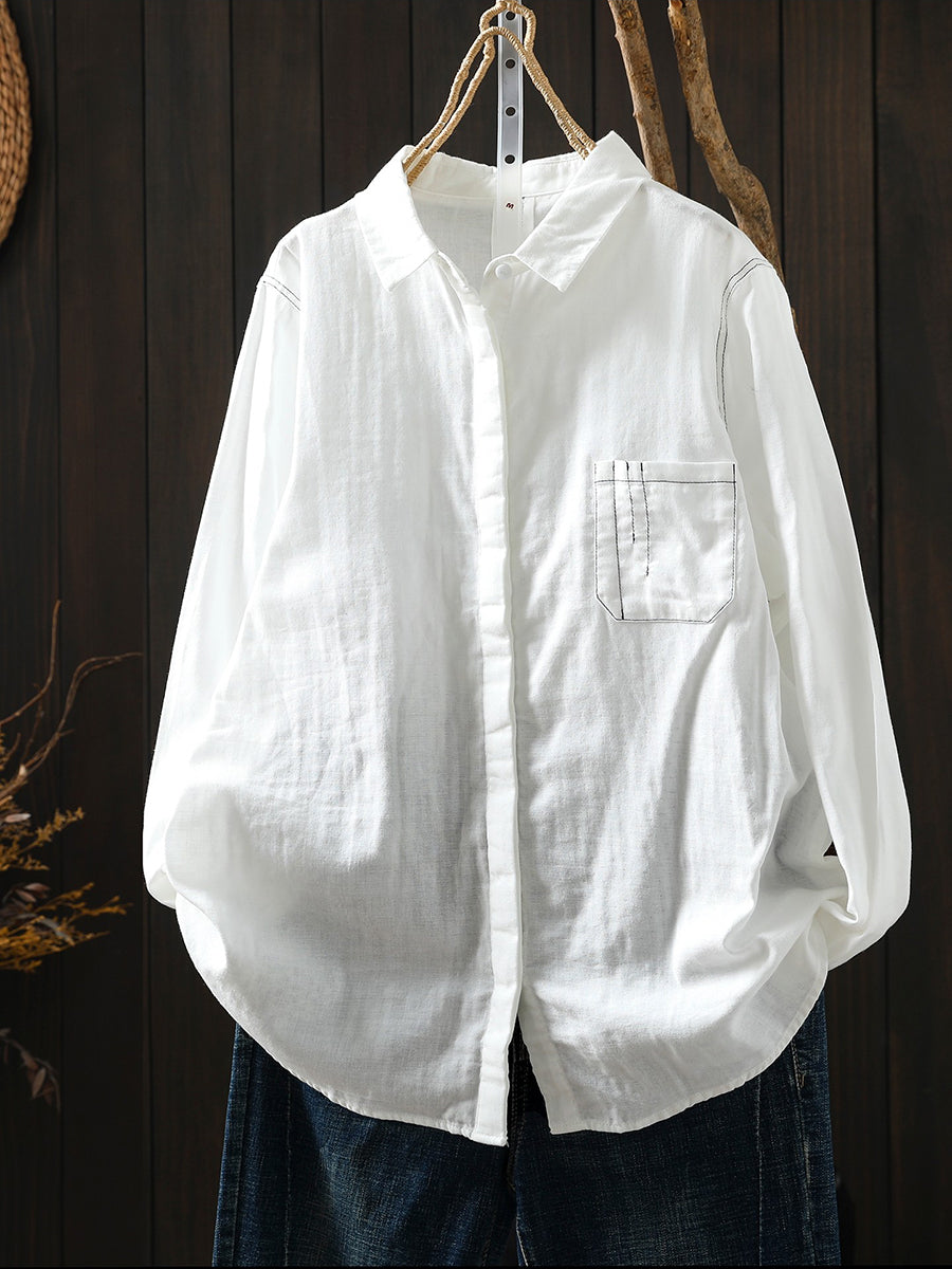 Camisa feminina casual de primavera, cor lisa, 100% algodão.