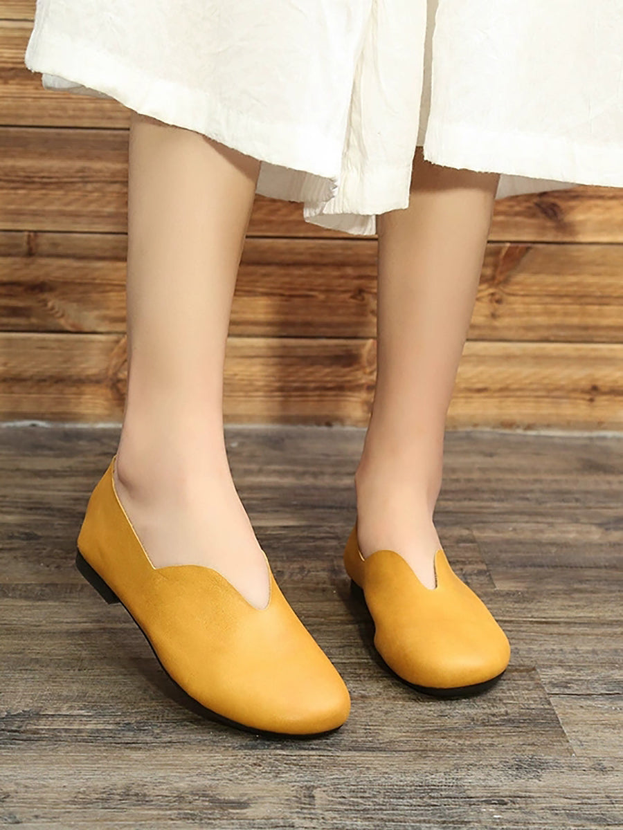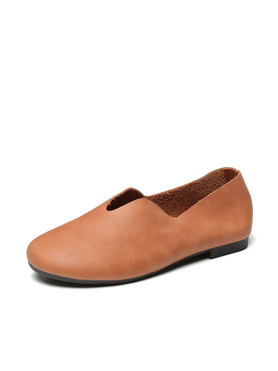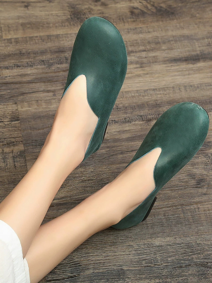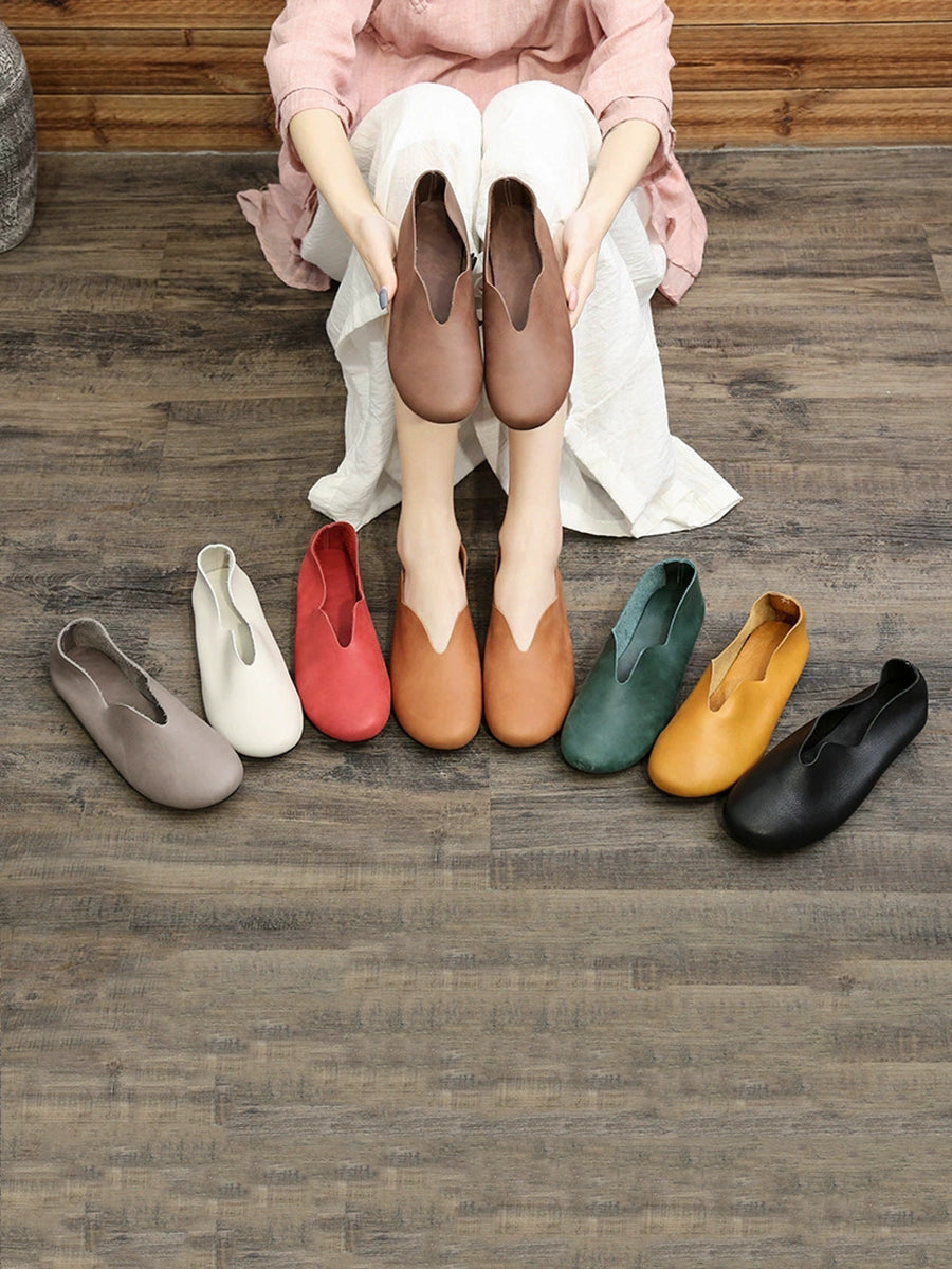 Sapatos femininos vintage de couro genuíno com salto baixo