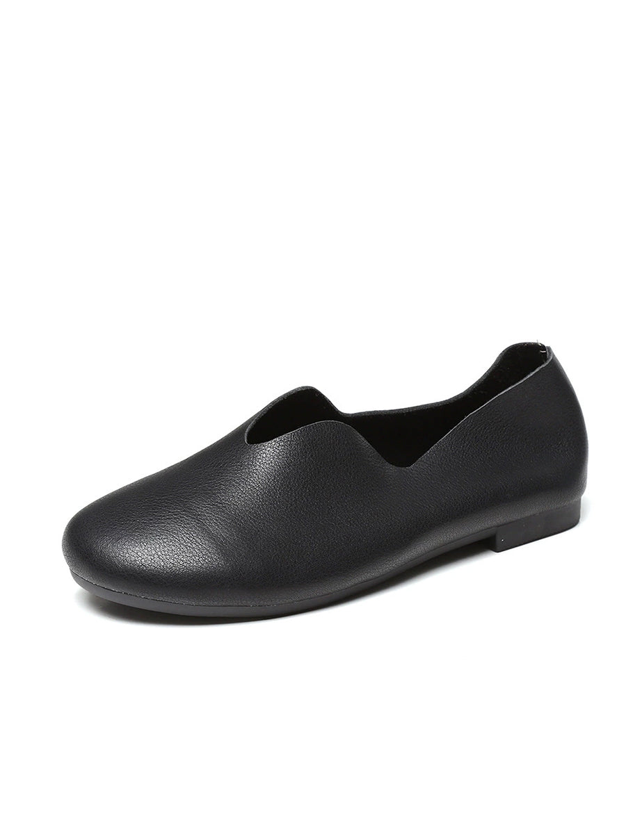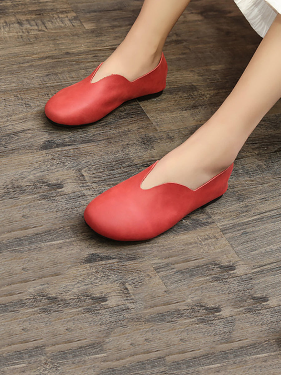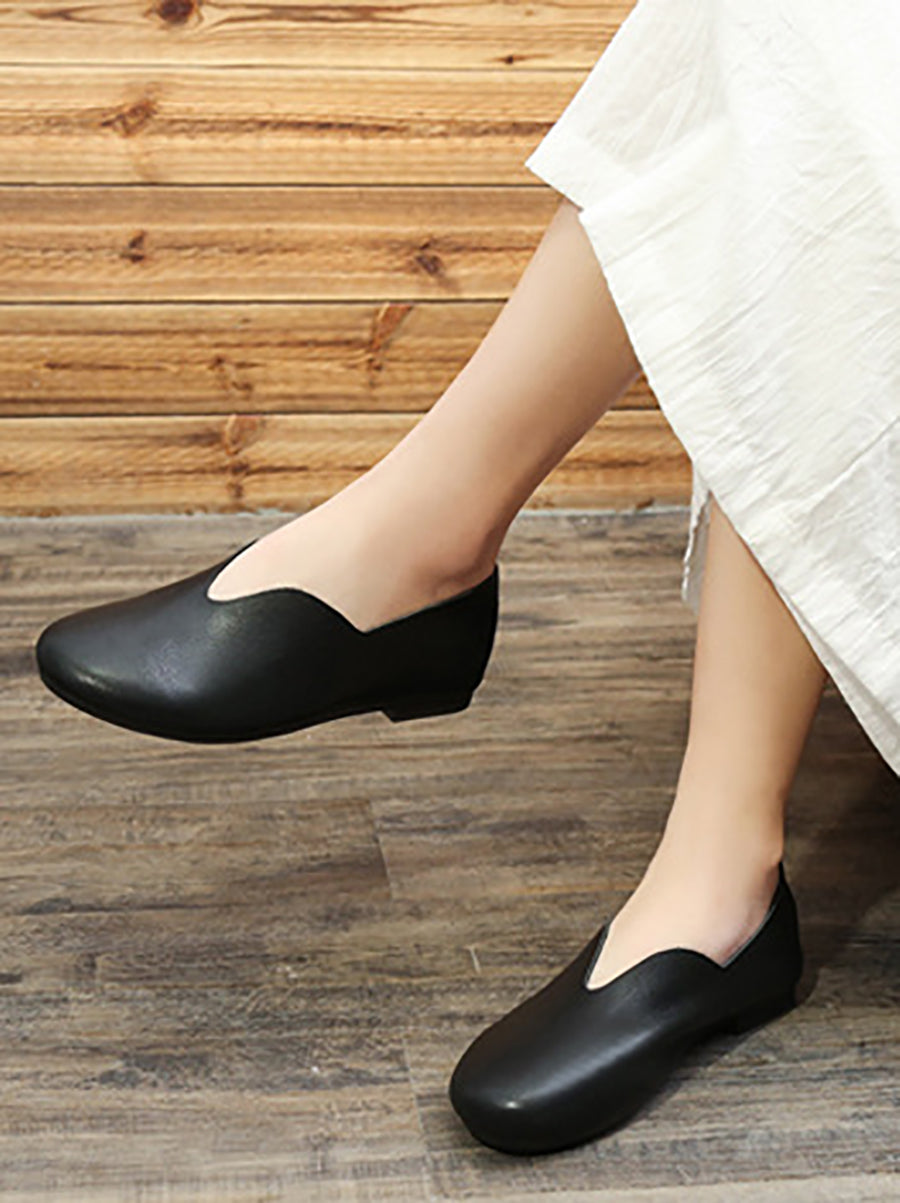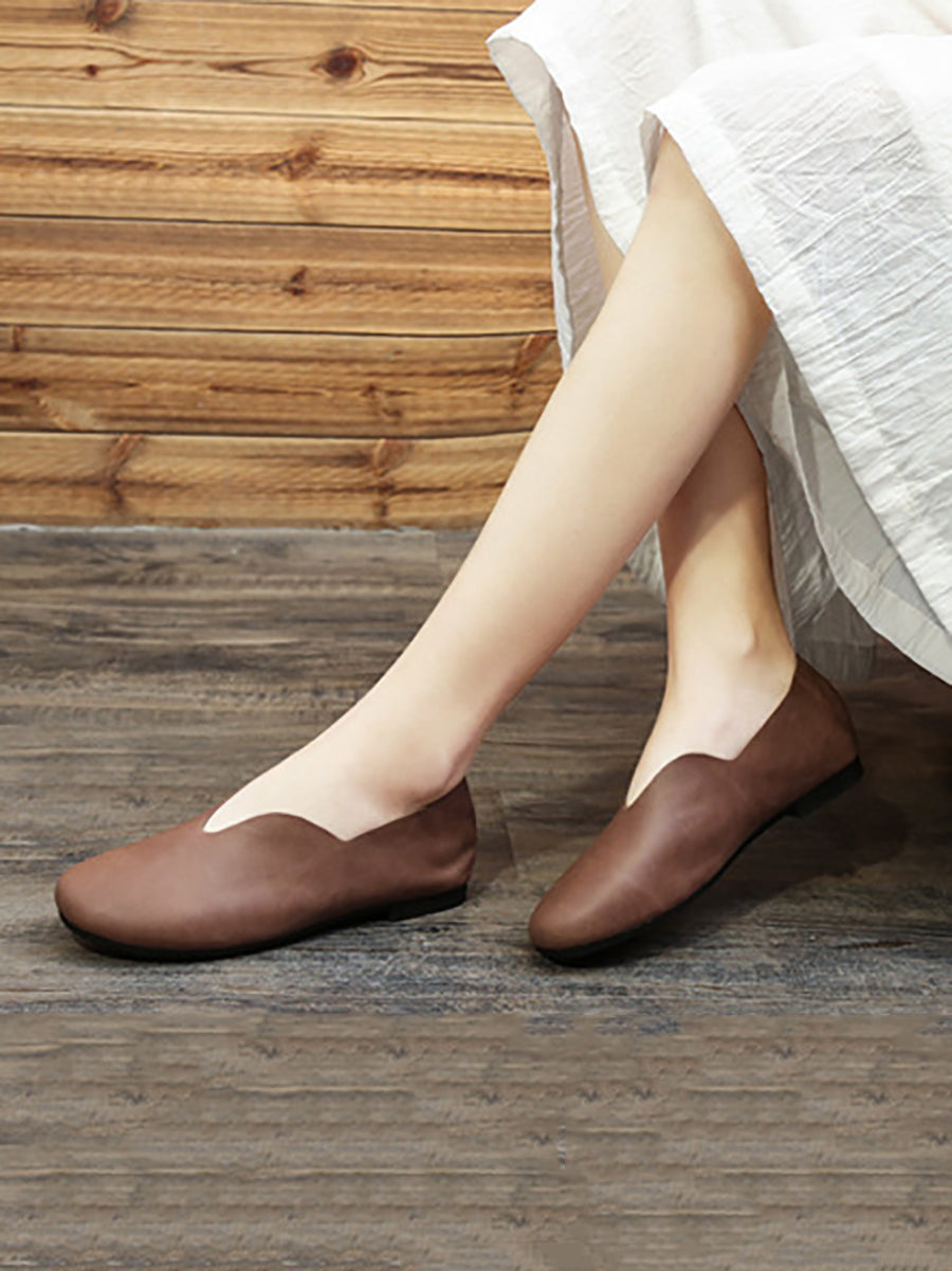 Sapatos femininos vintage de couro genuíno com salto baixo