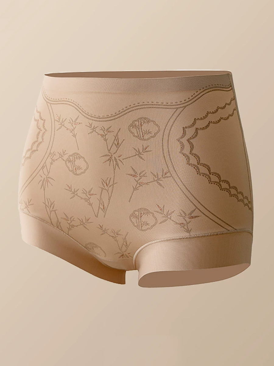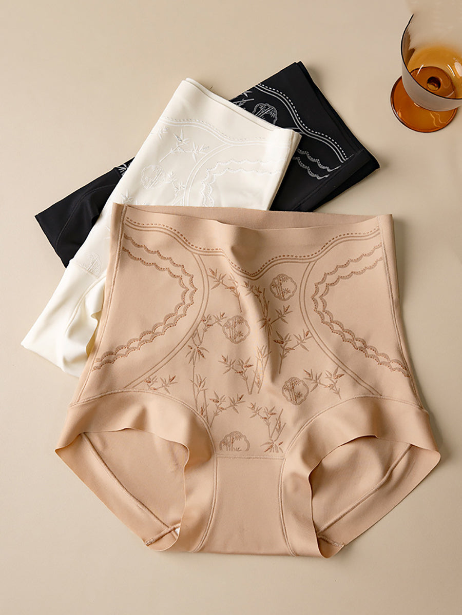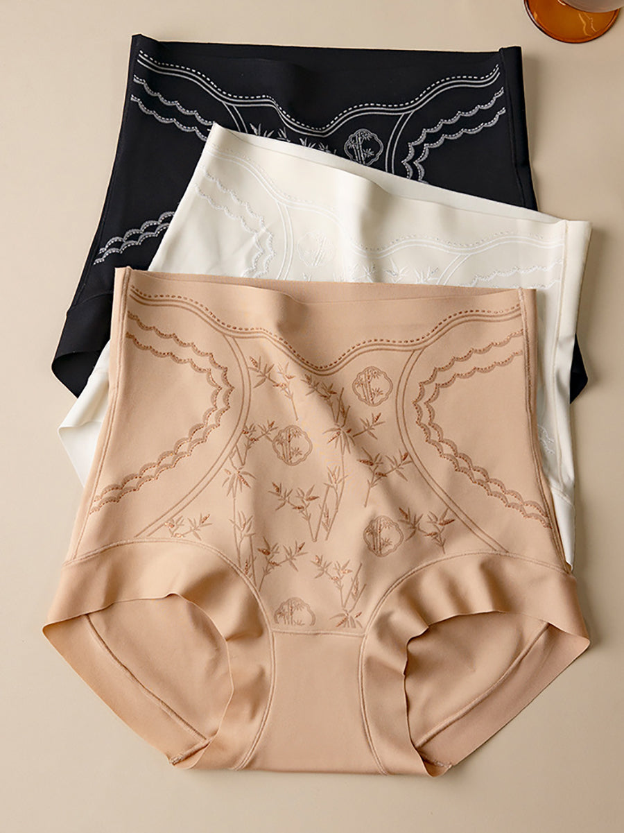 Conjunto de 3 peças de calcinha feminina de cintura alta com estampa floral artística.