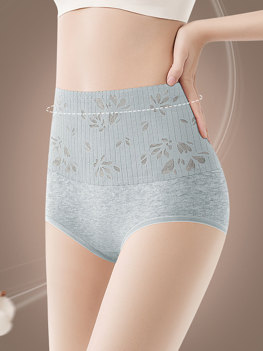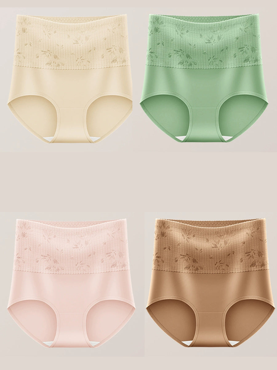 Conjunto de 4 peças de calcinhas femininas de cintura alta com estampa floral artística.