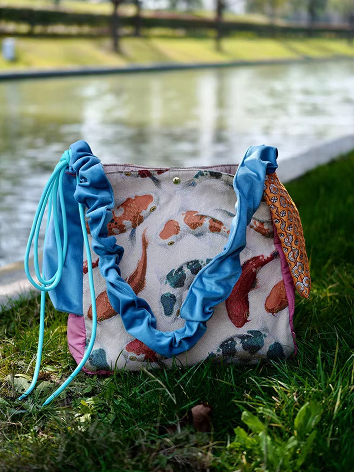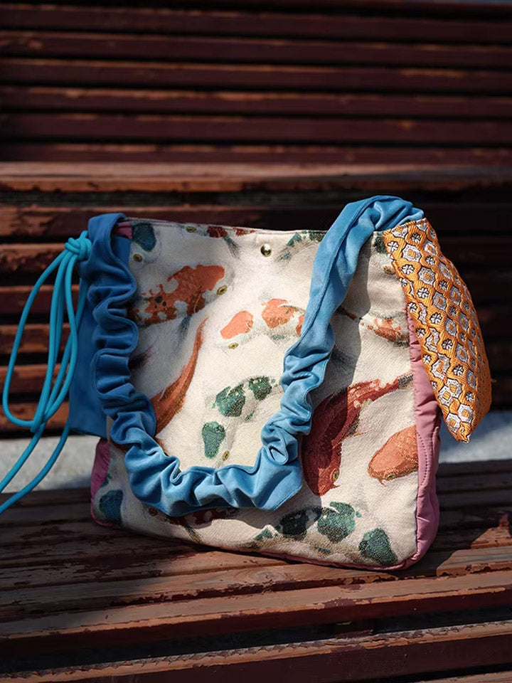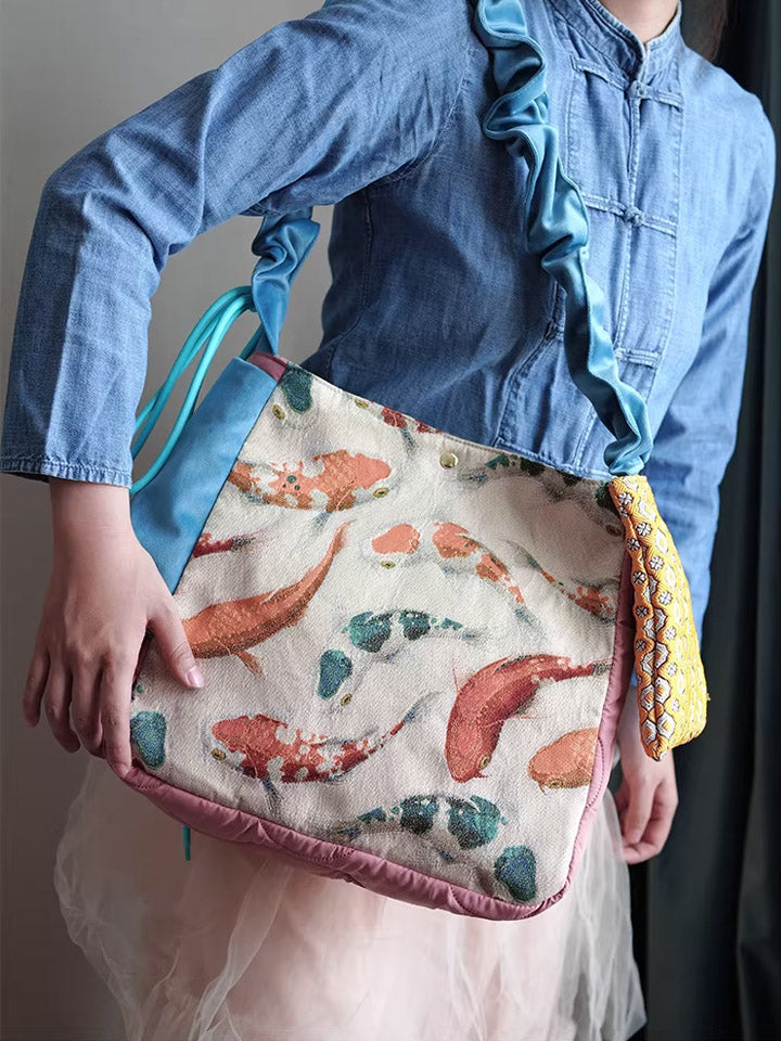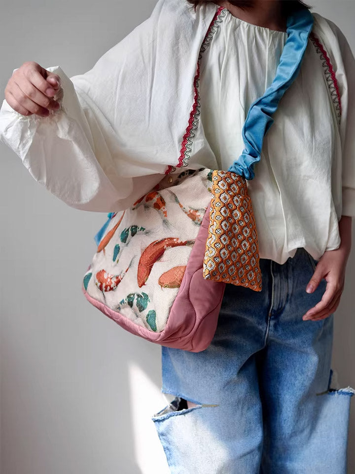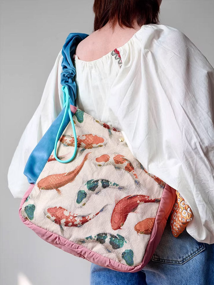 Bolsa transversal com estampa étnica de carpas koi, modelo 30210.
