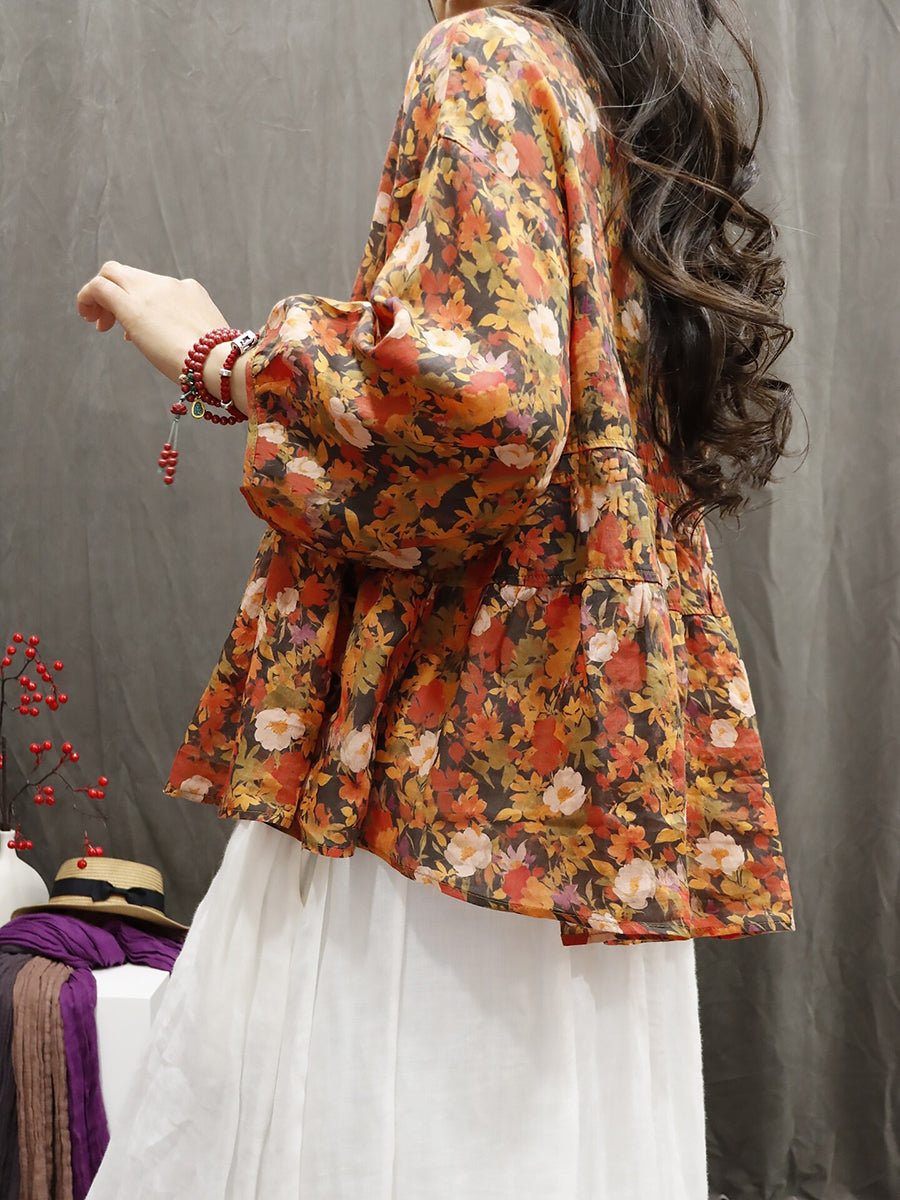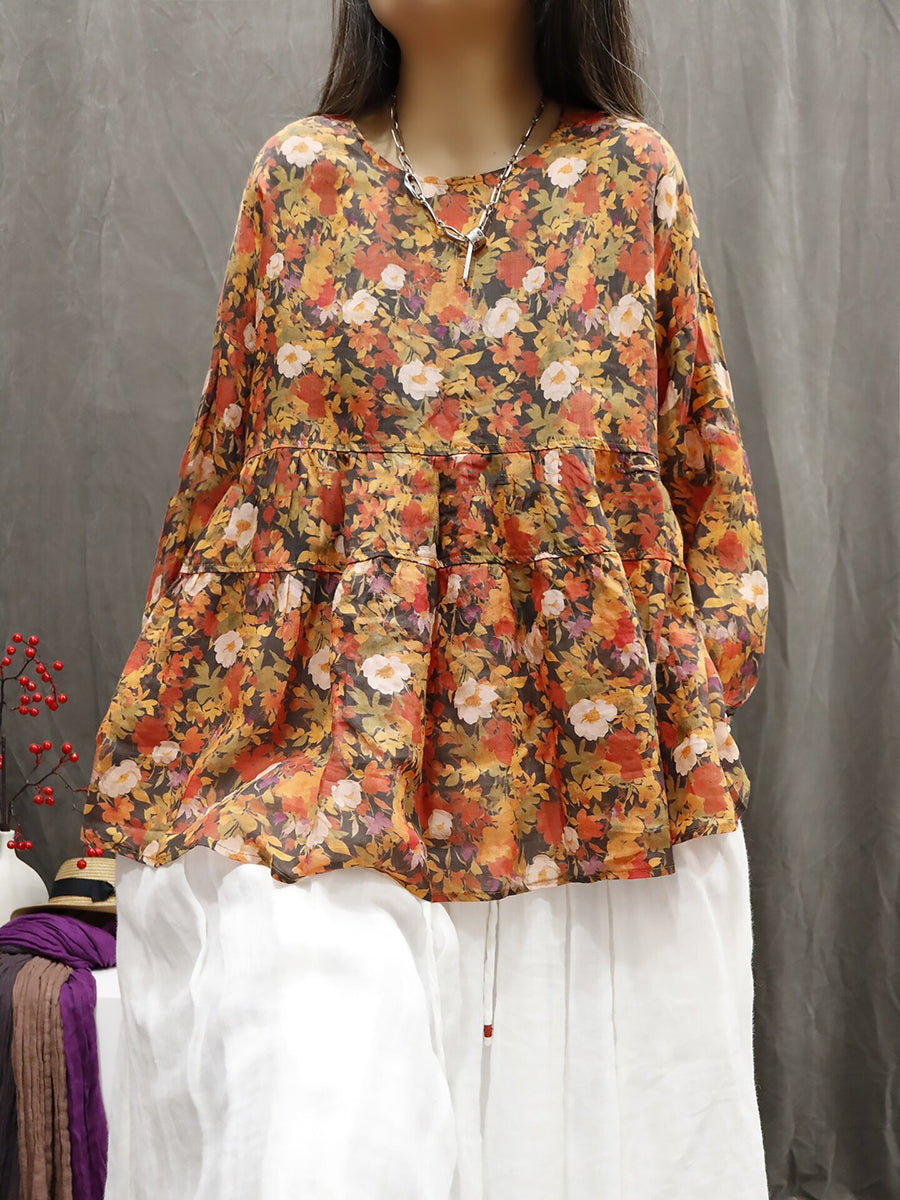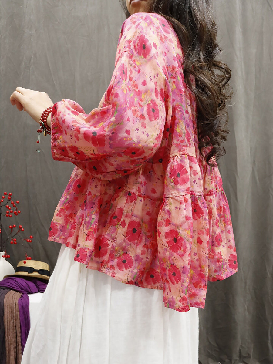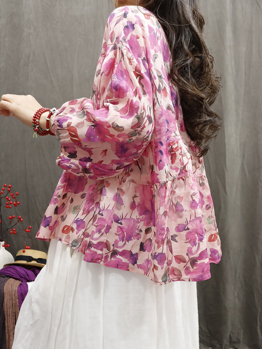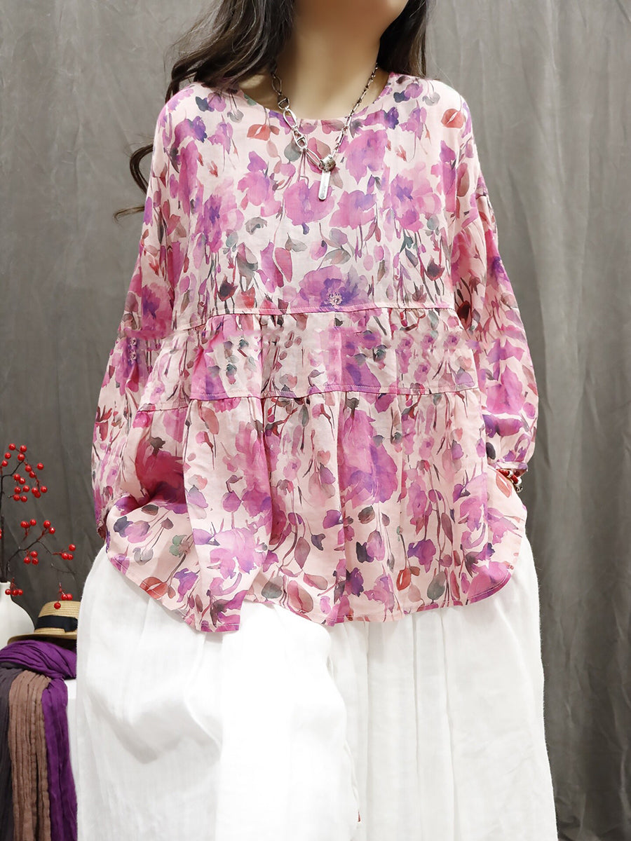 Blusa feminina de verão com estampa étnica floral, 100% rami.