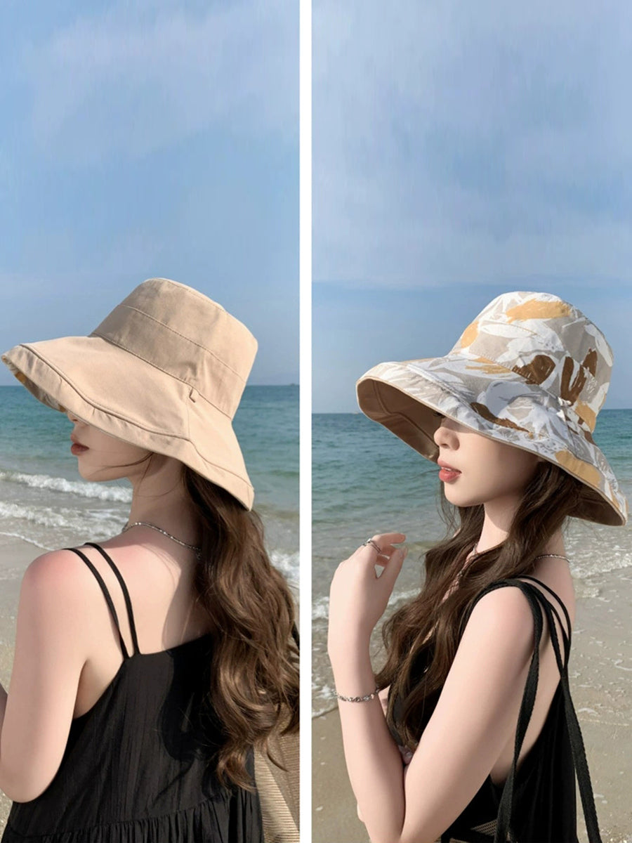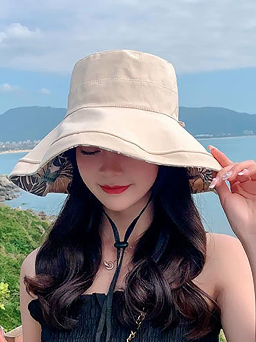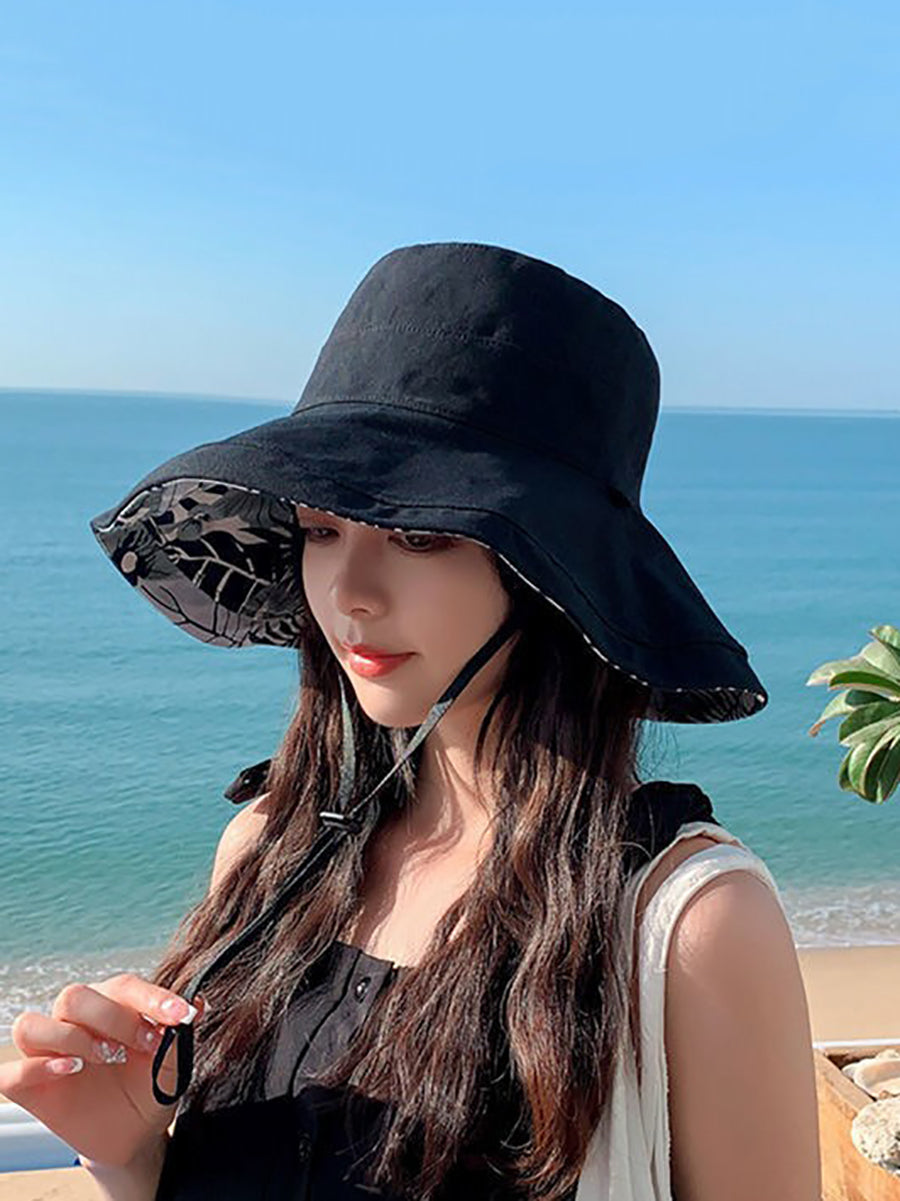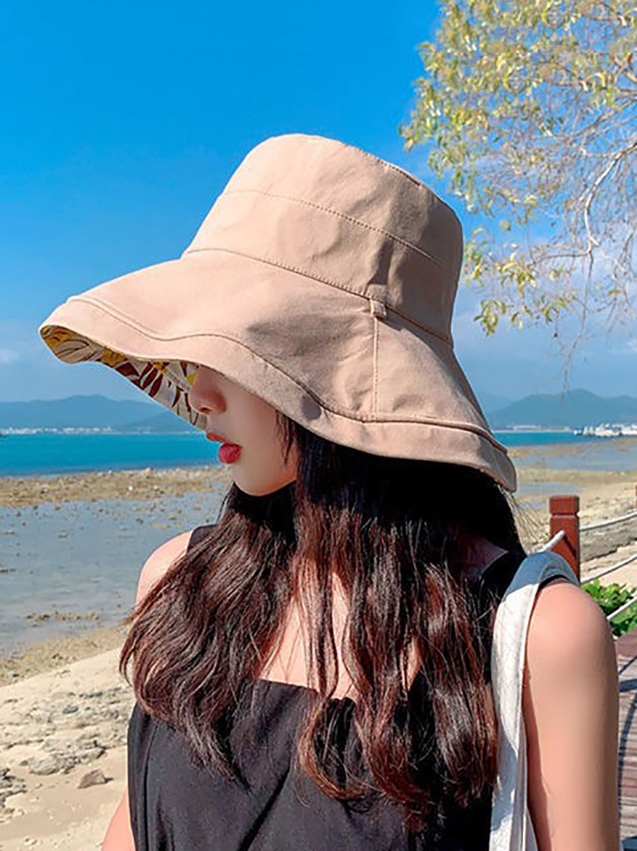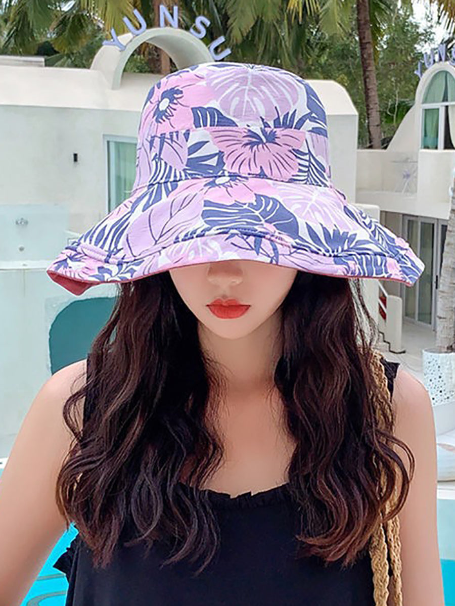Chapéu feminino de verão com estampa floral e design de duas faces