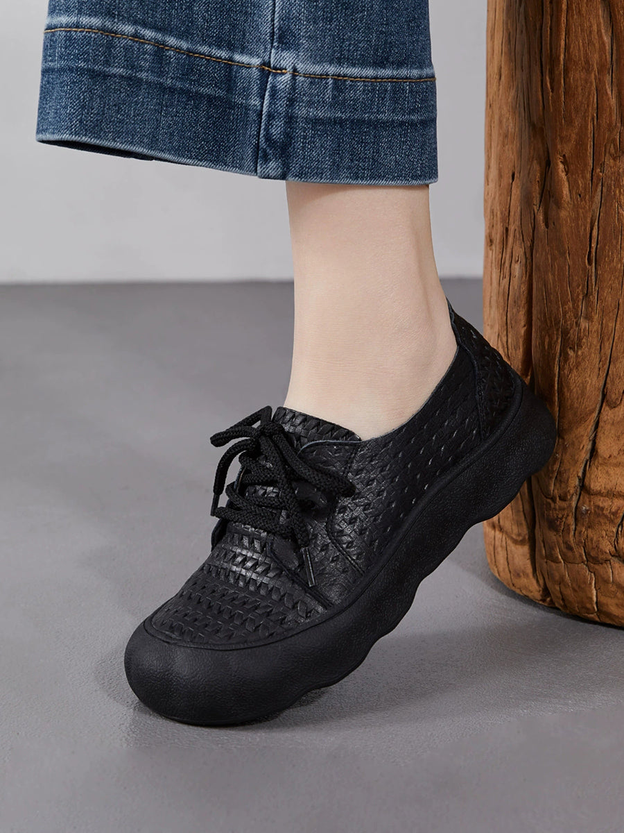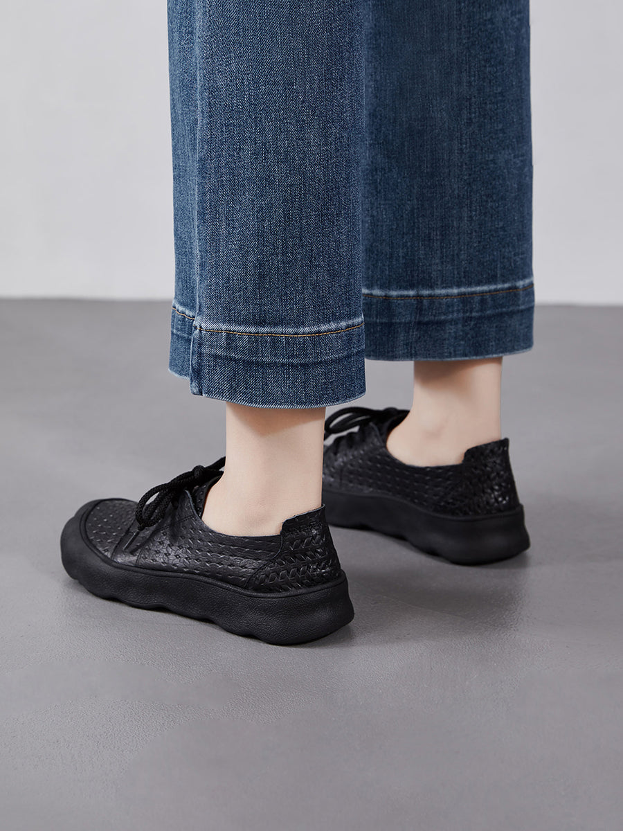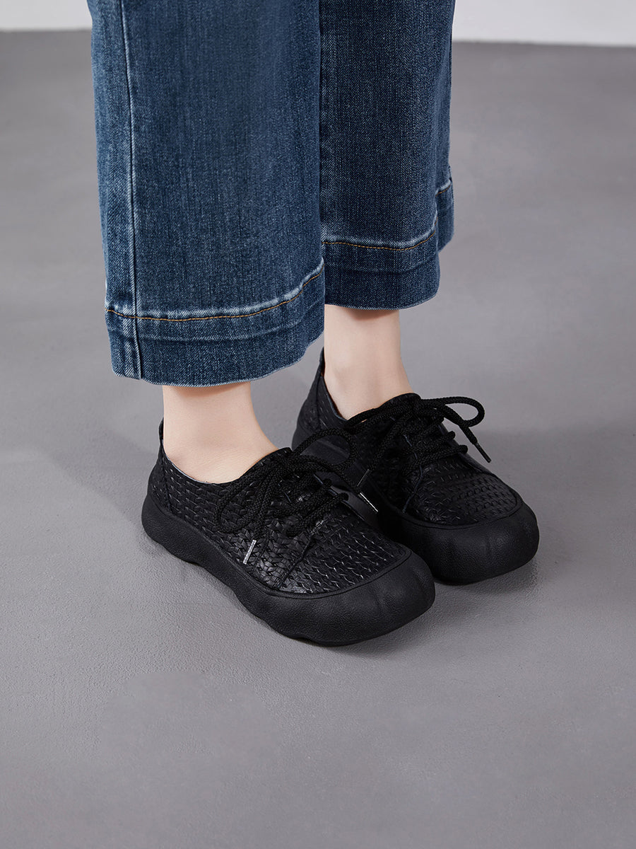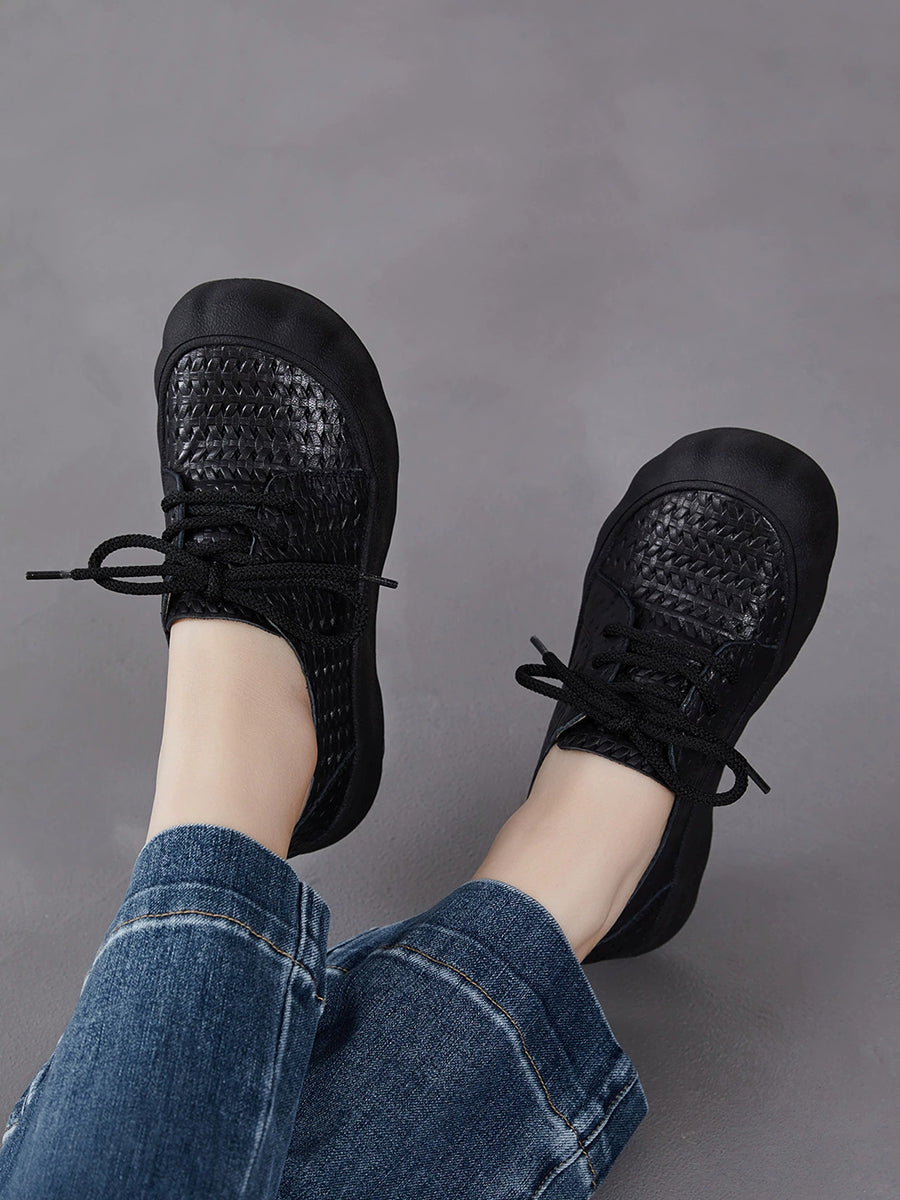 Sapatos femininos vintage de verão em couro legítimo, modelo baixo.