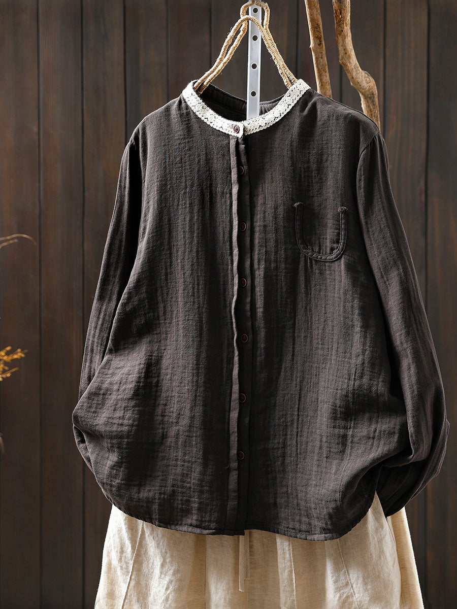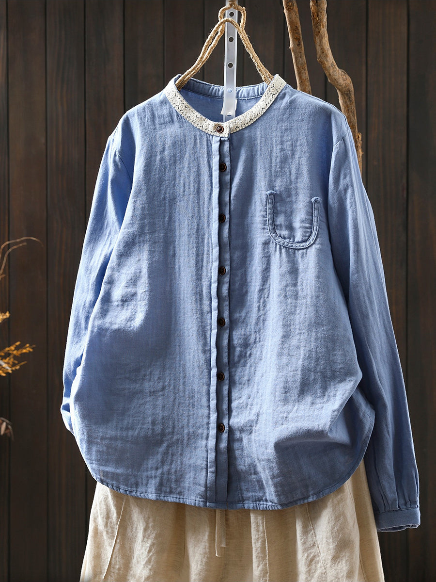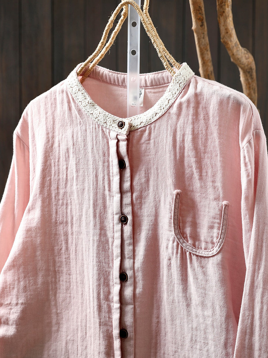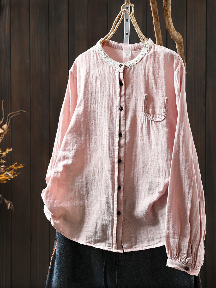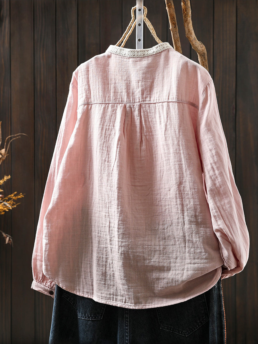 Camisa feminina de primavera com estampa artística em blocos de cores, 100% algodão.