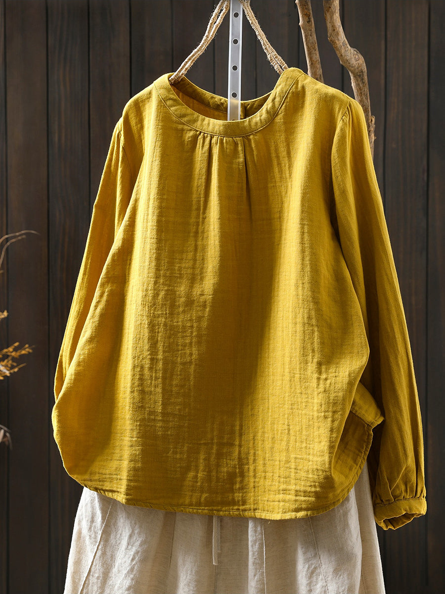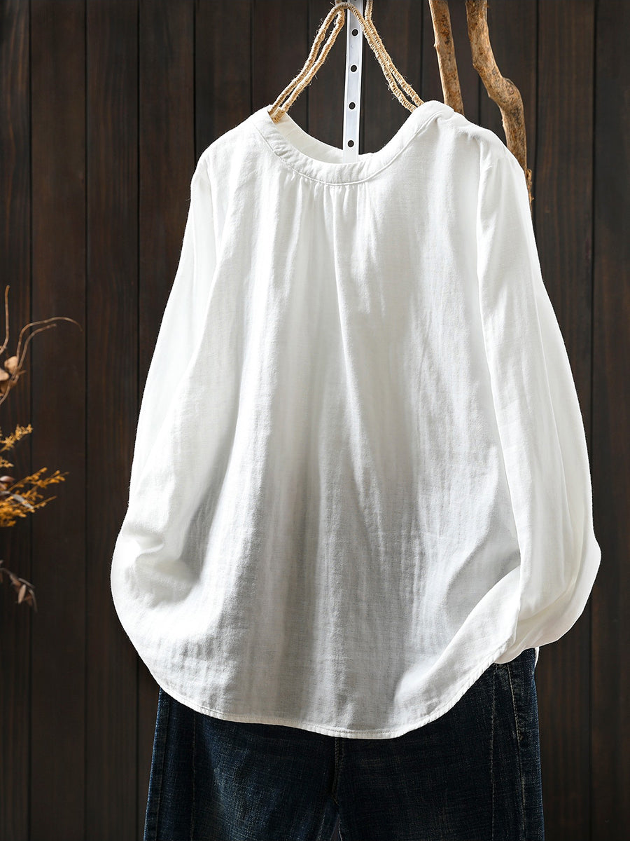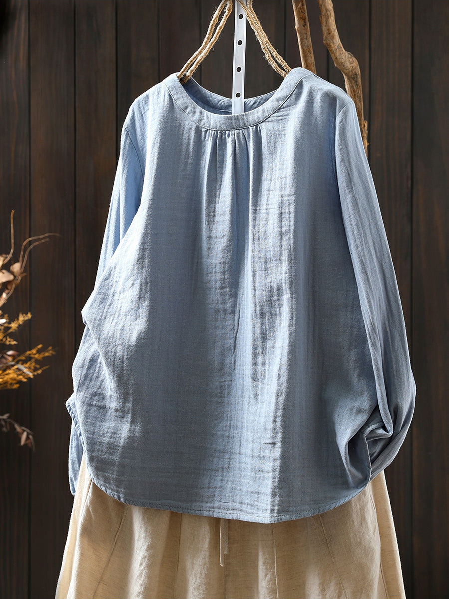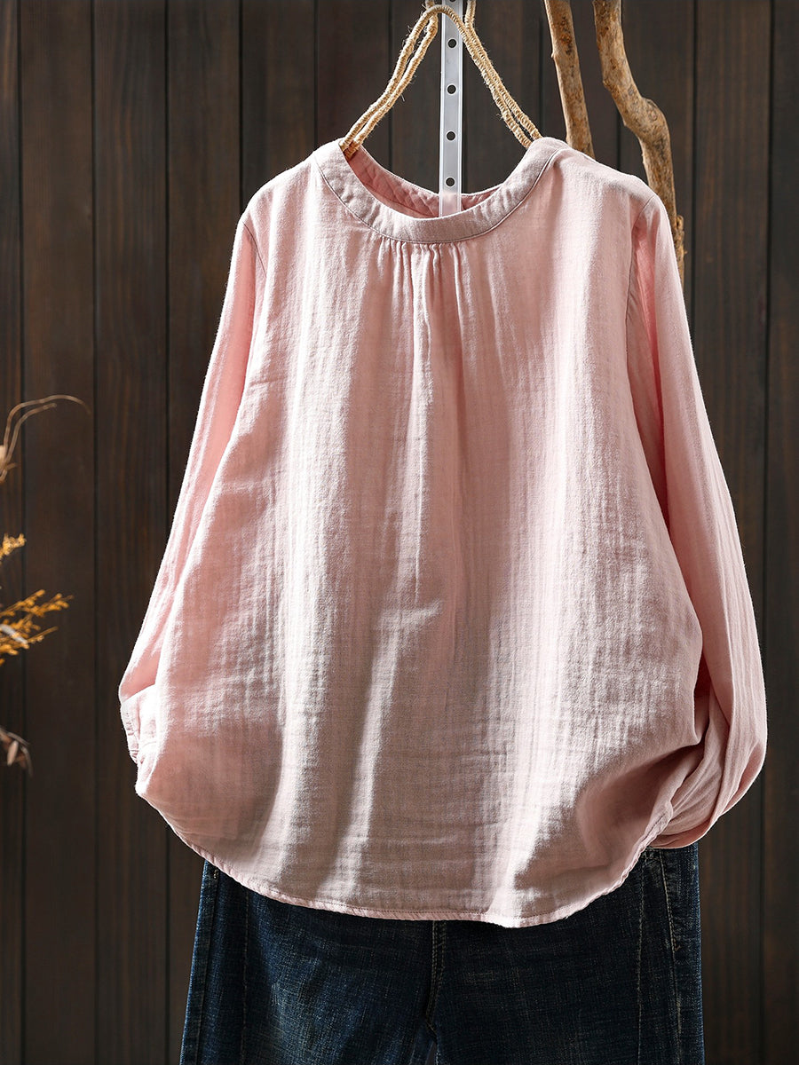 Camisa feminina de algodão 100% com estampa artística de primavera em cores puras.