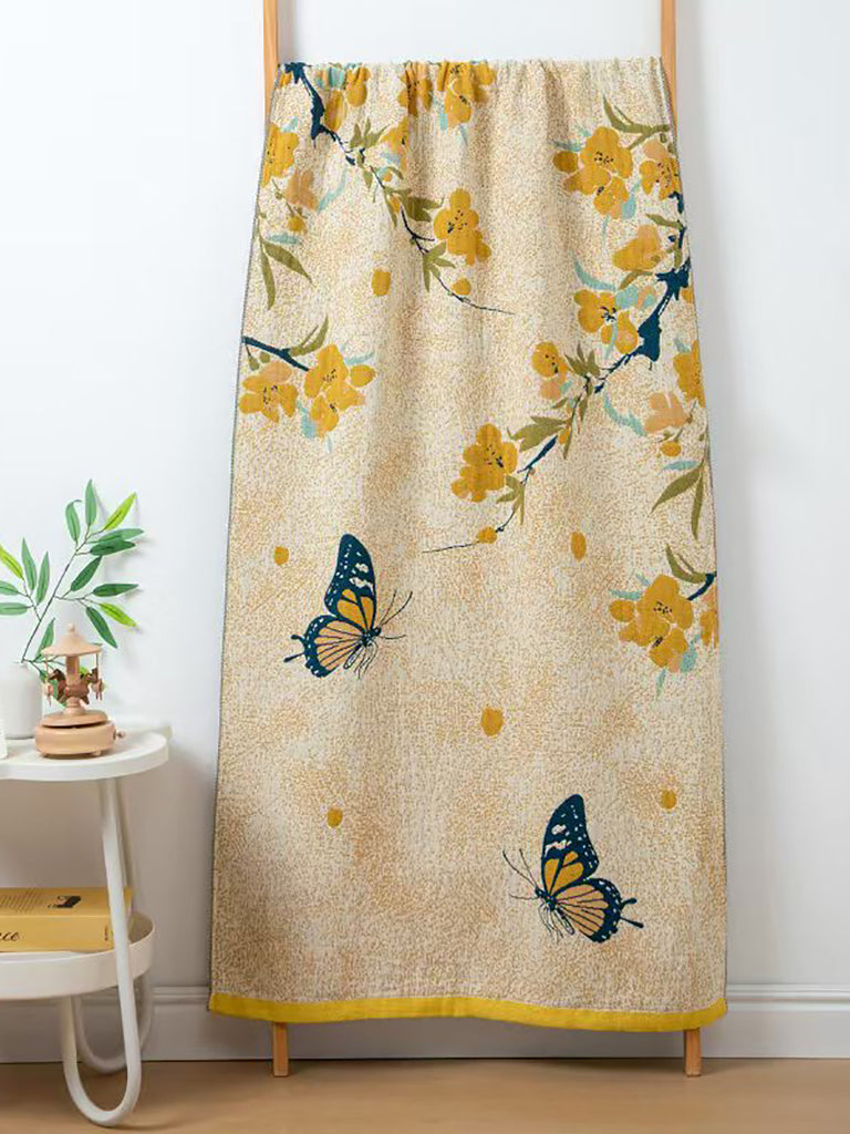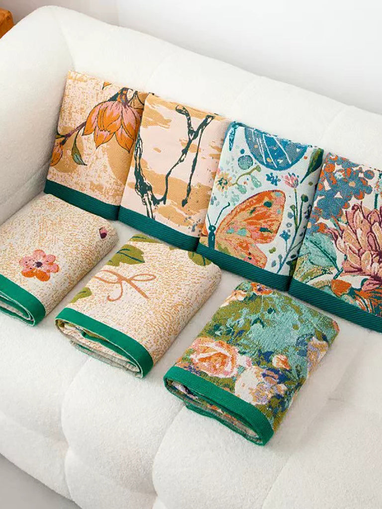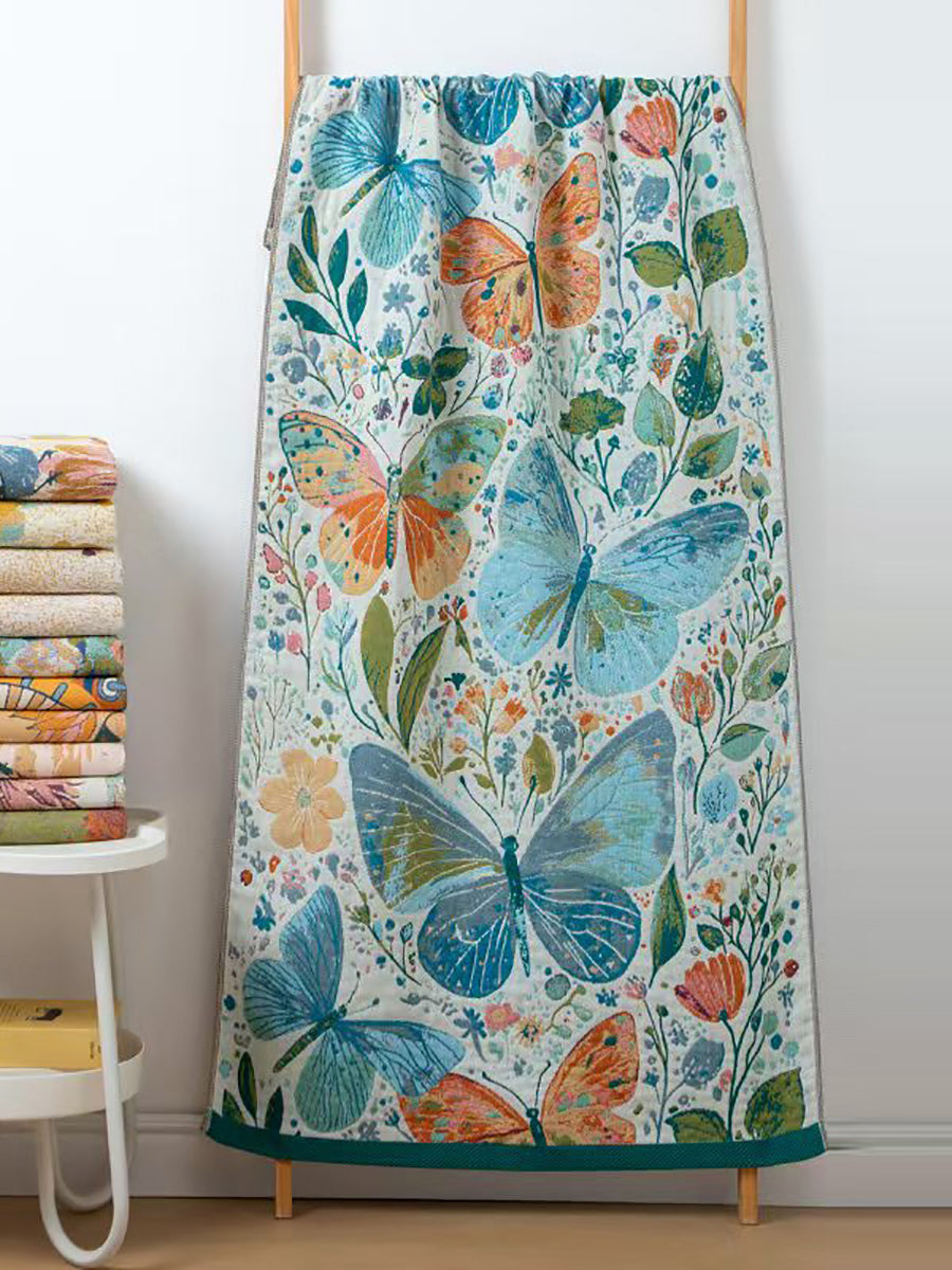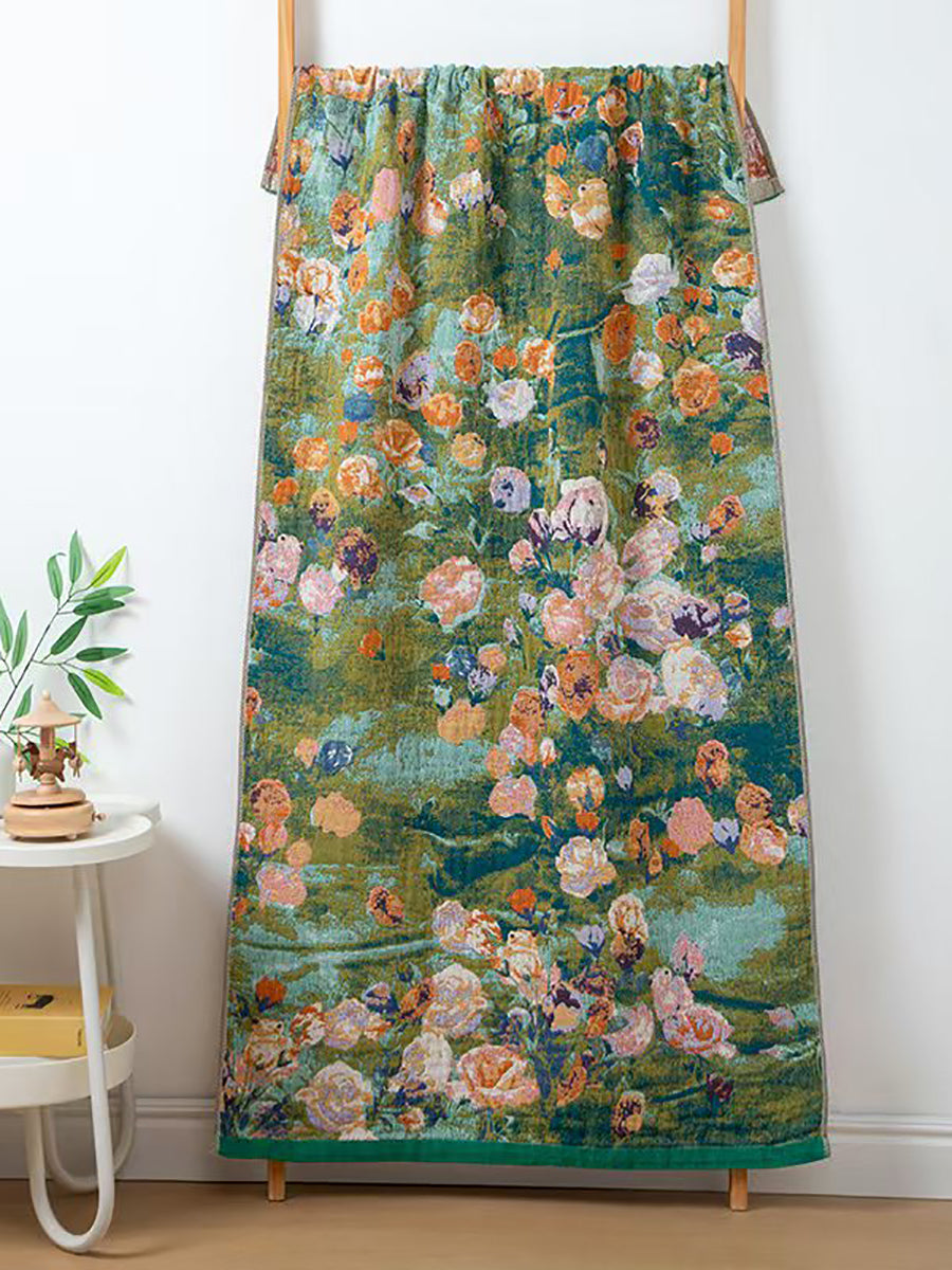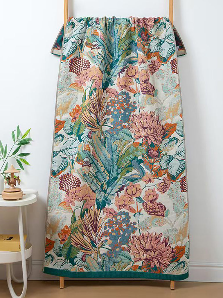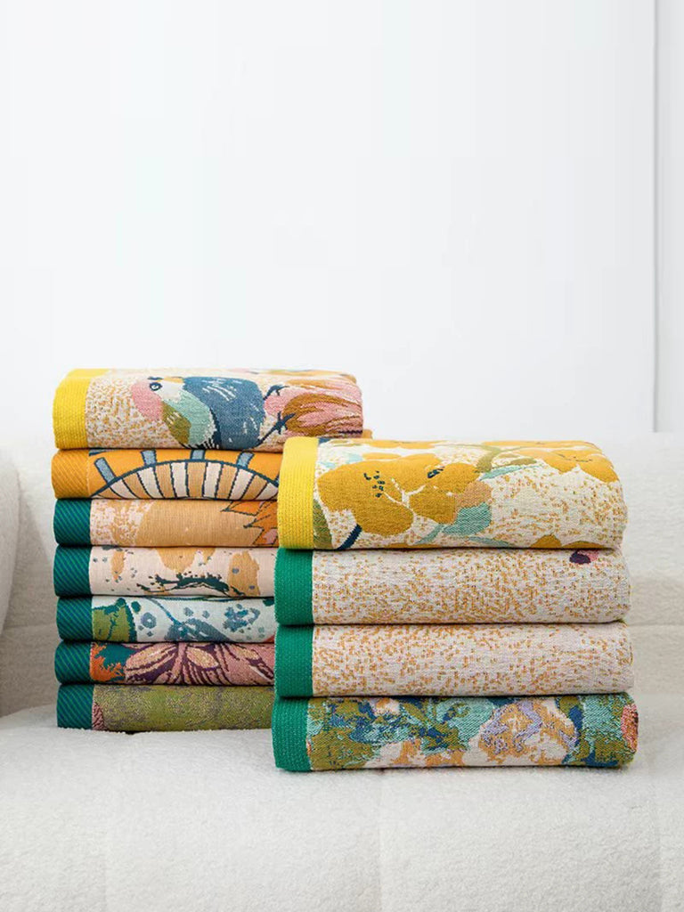 Toalha de banho para adultos, 100% algodão, com estampa floral em jacquard.