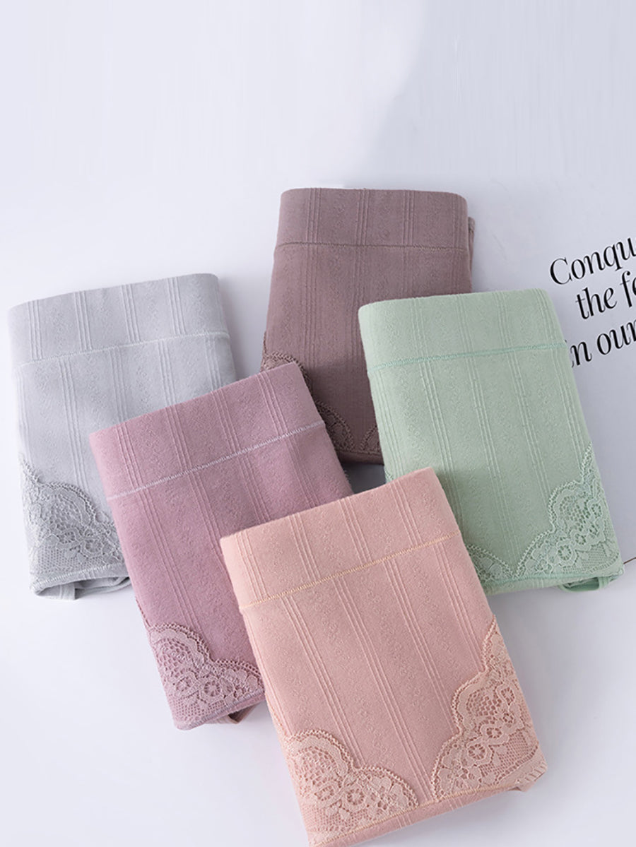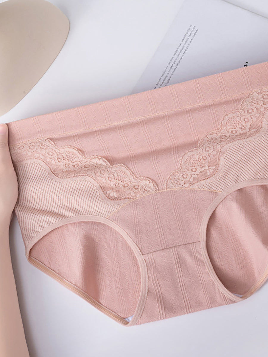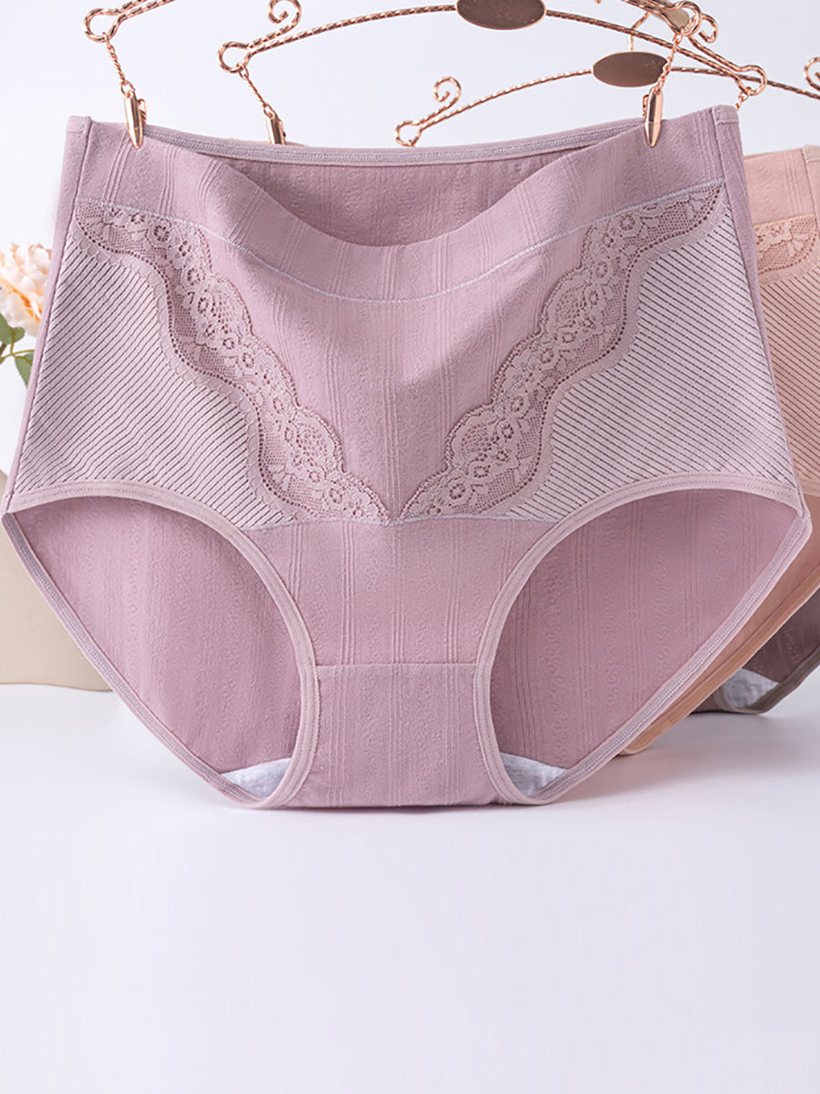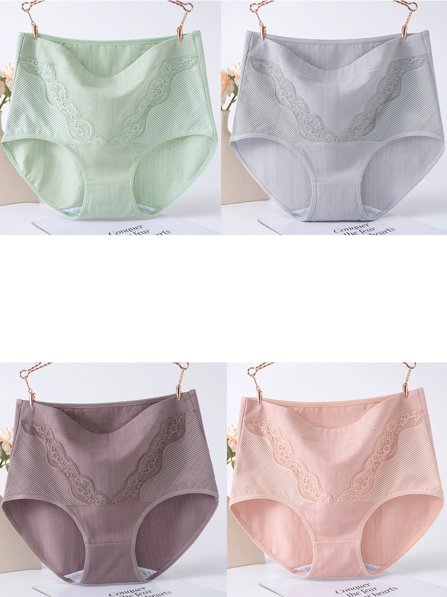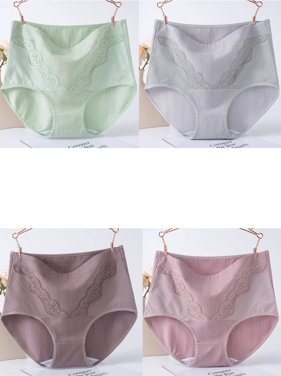 Conjunto de 4 peças de calcinha feminina de cintura alta com detalhes em renda.
