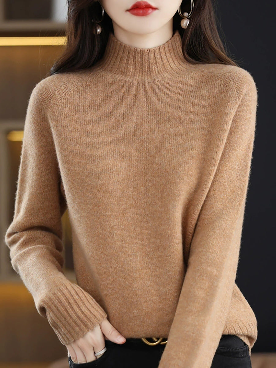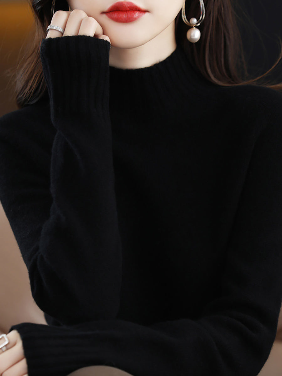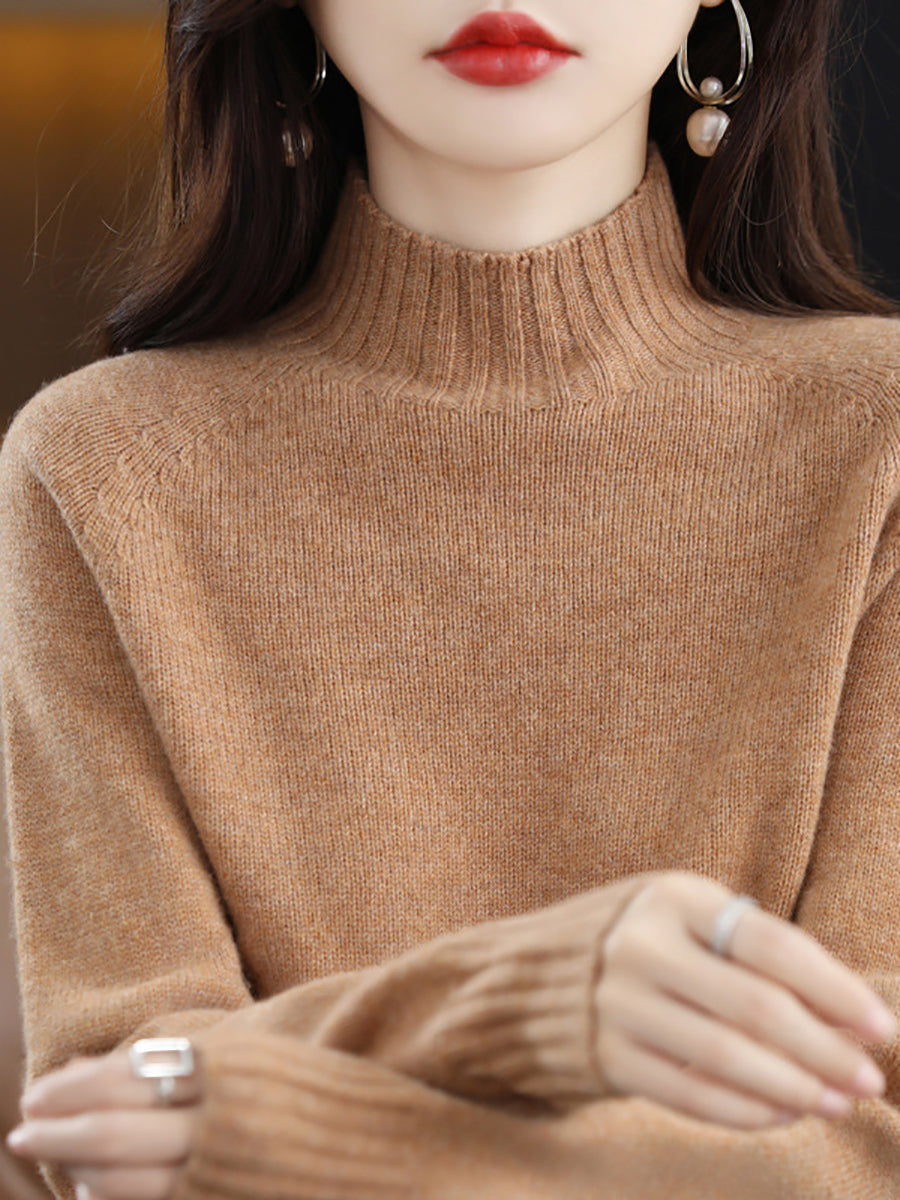 Suéter feminino de gola alta em tricô, estilo artístico, cor lisa, para o outono.