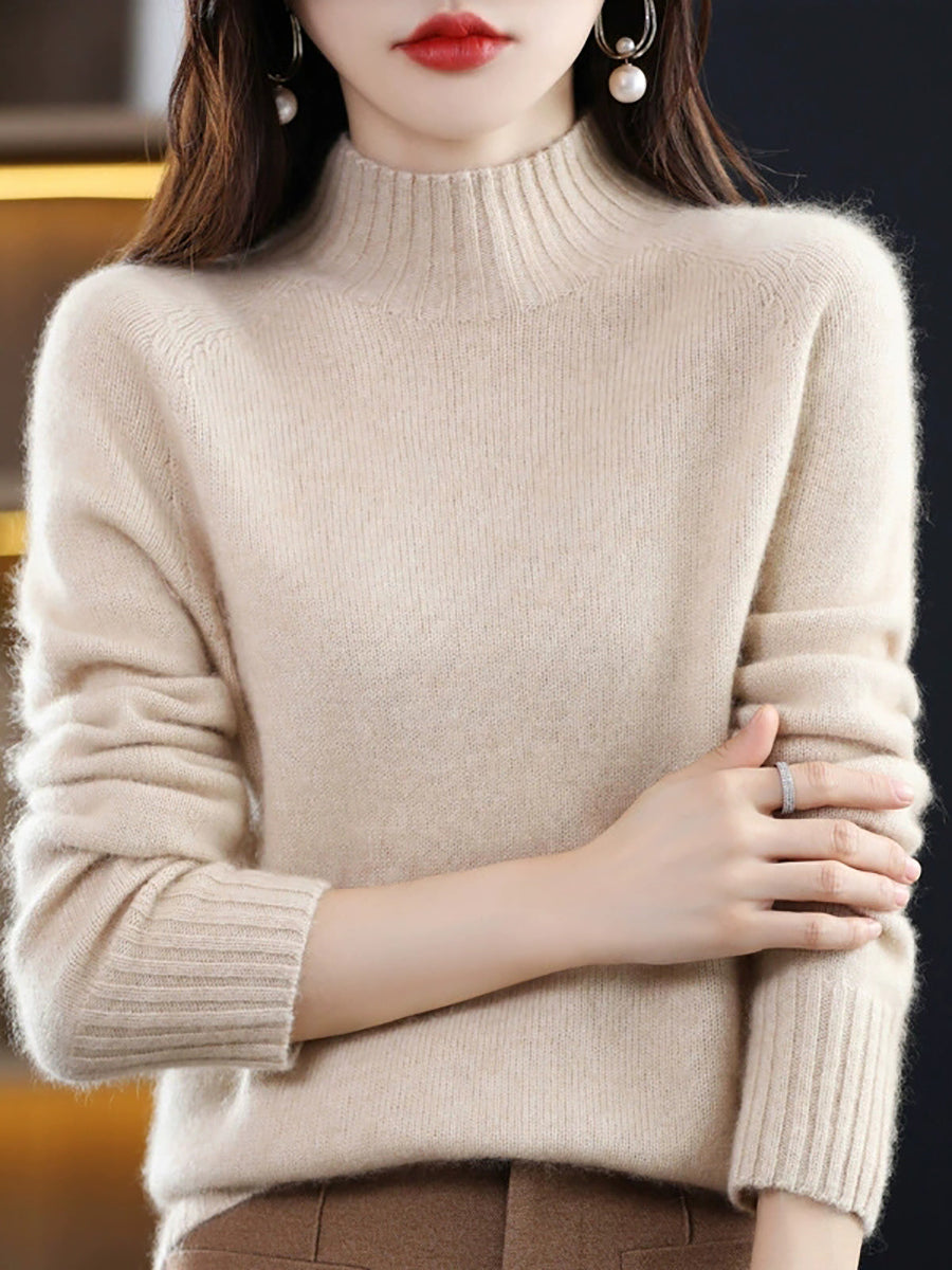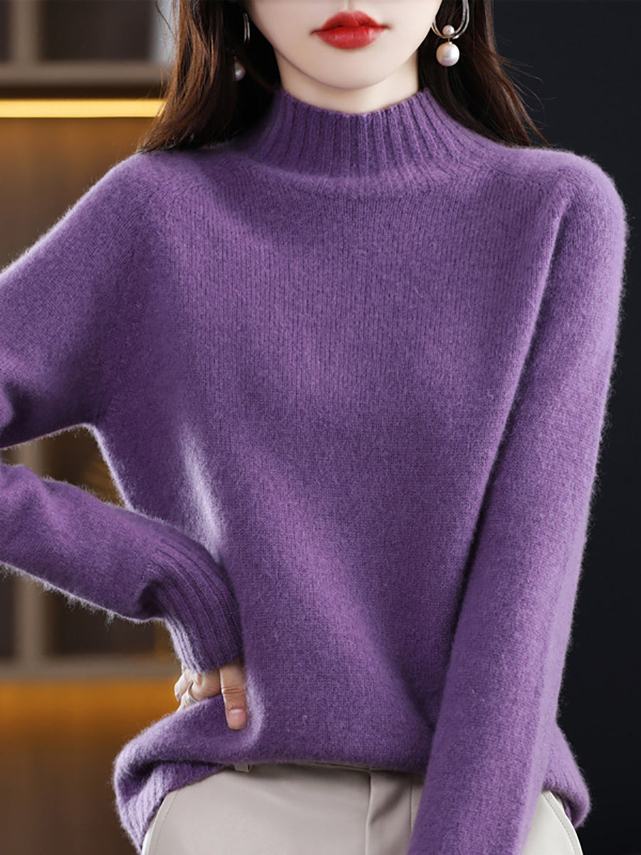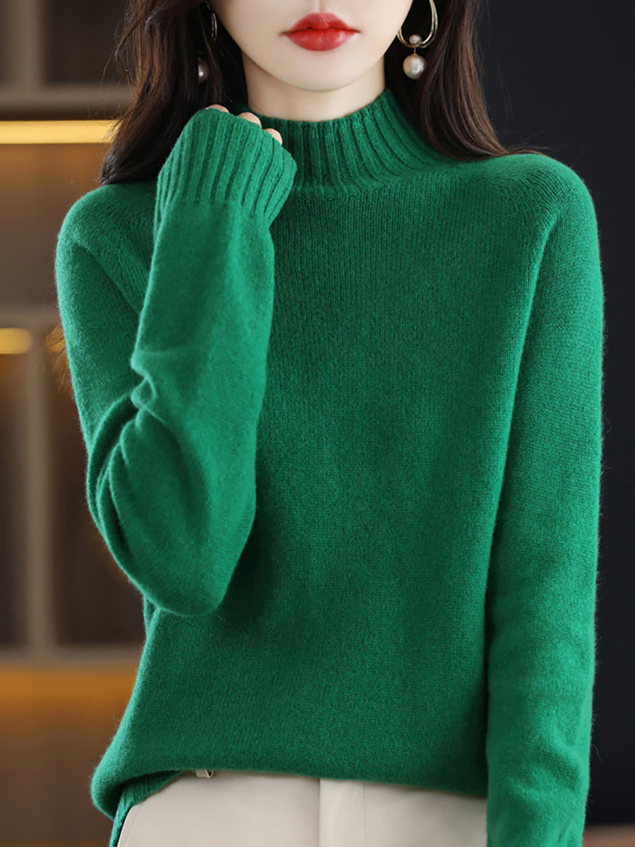 Suéter feminino de gola alta em tricô, estilo artístico, cor lisa, para o outono.