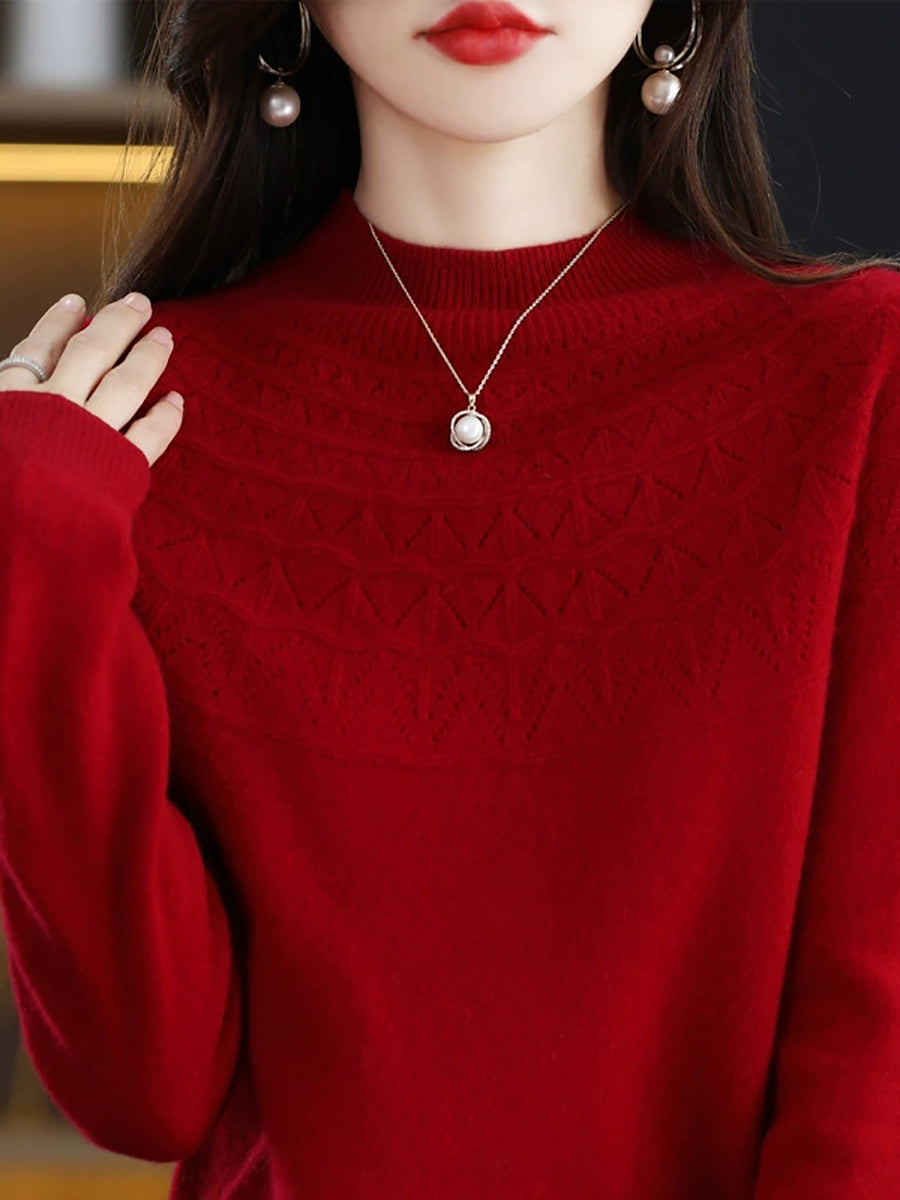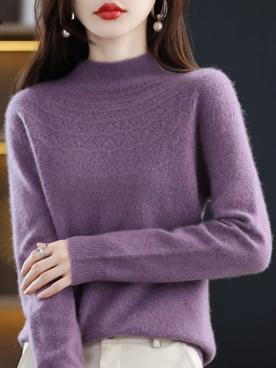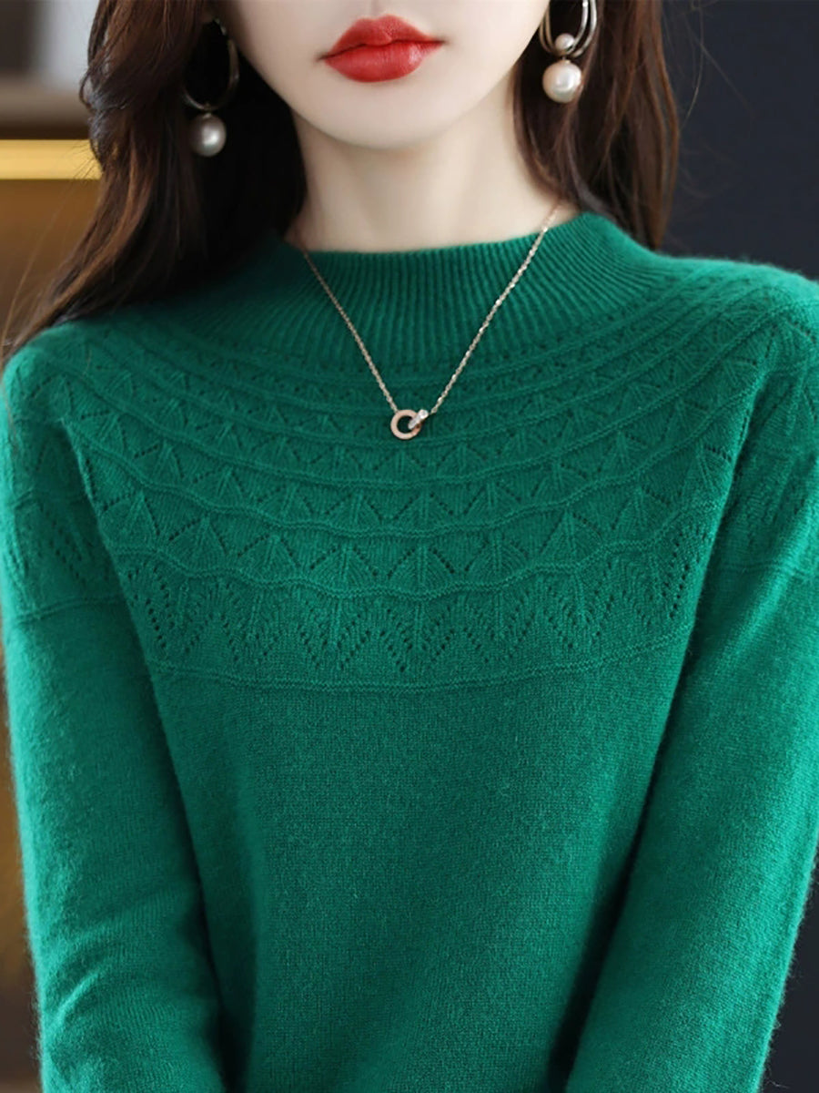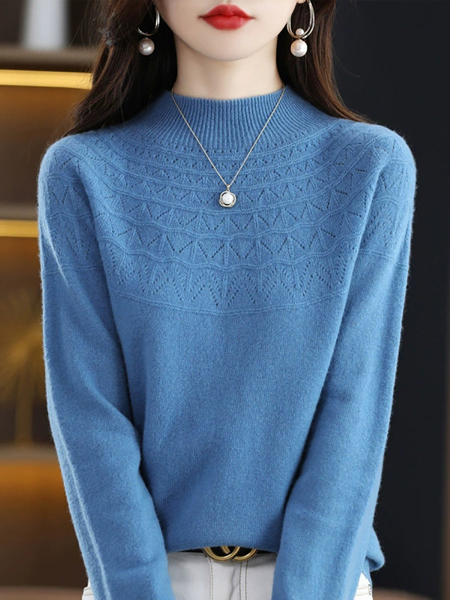 Suéter feminino de gola alta curta em cor lisa, estilo artístico para a primavera.