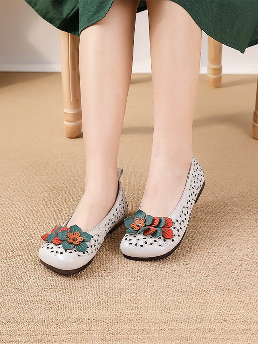 Sapatos femininos de verão em couro legítimo com estampa floral.