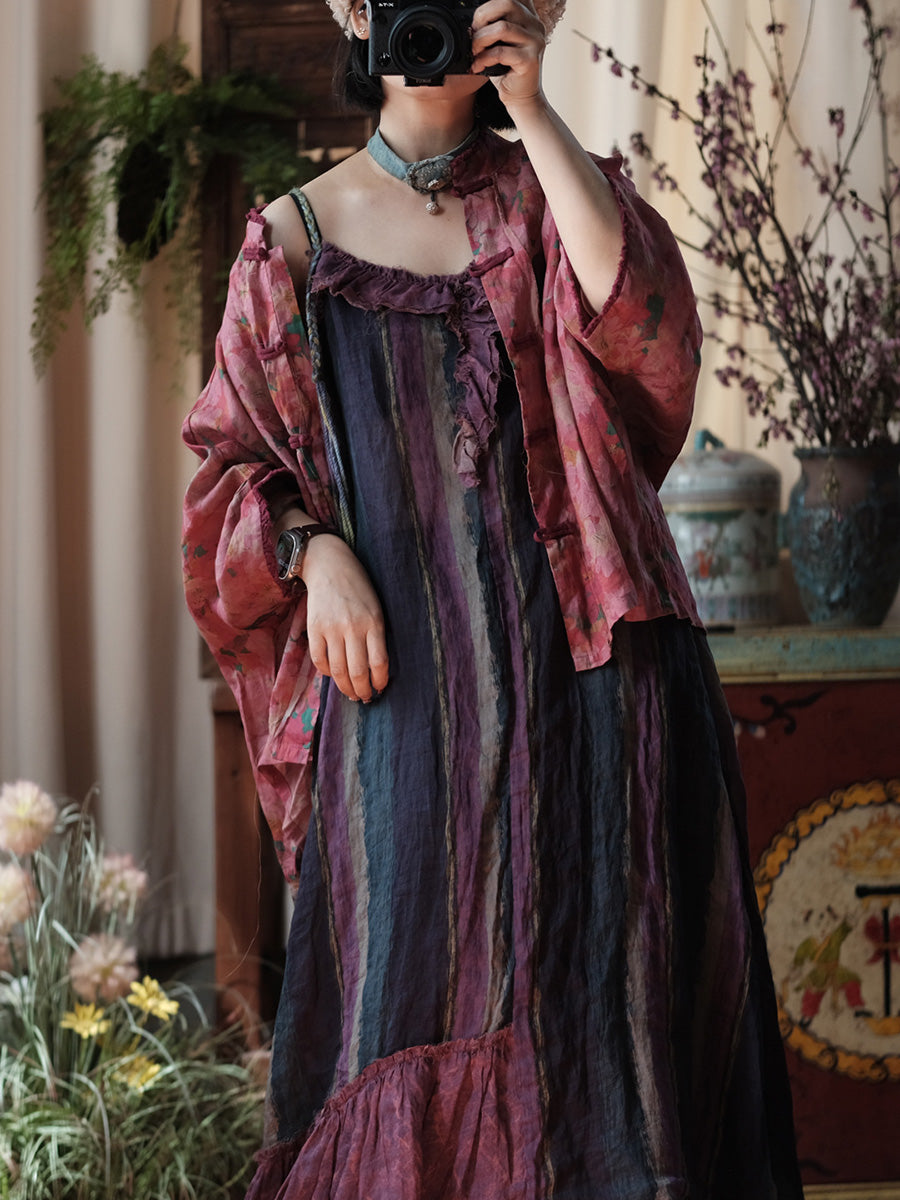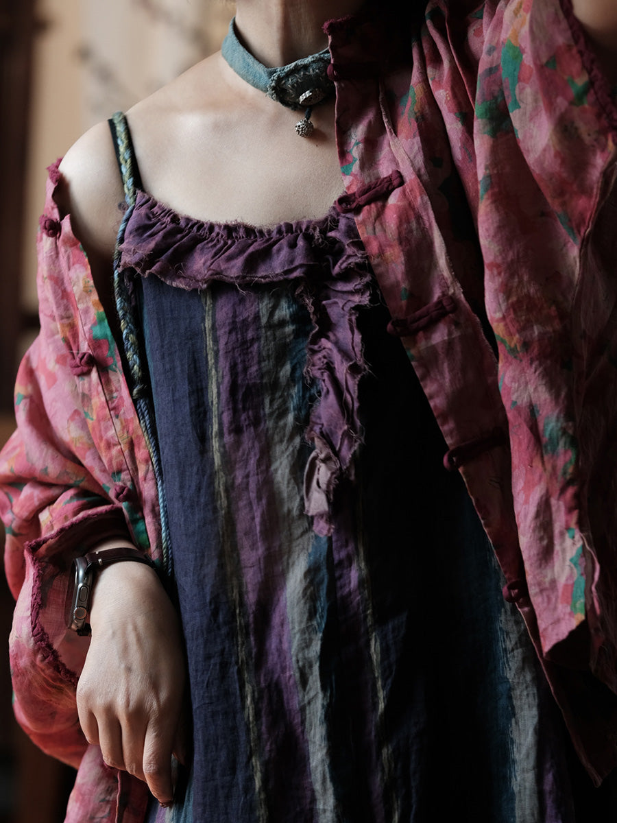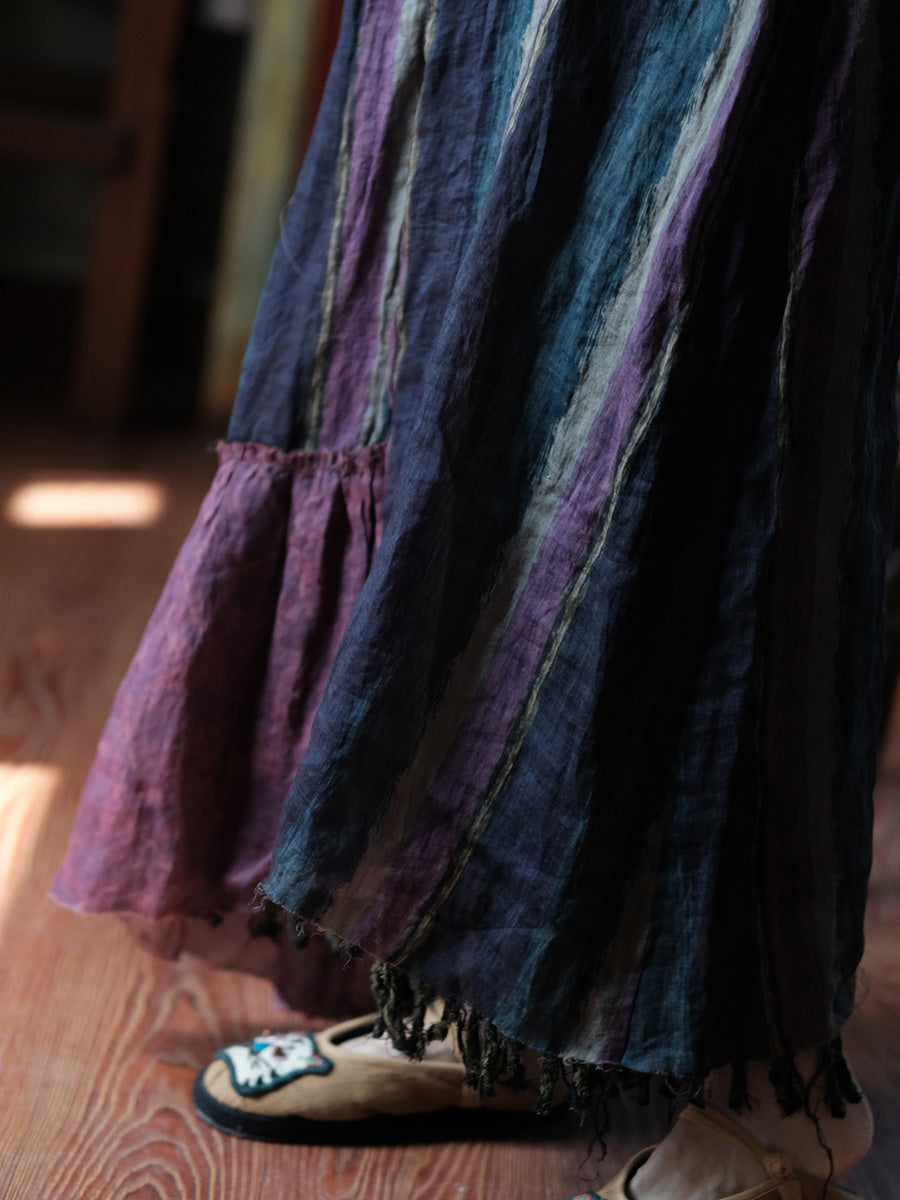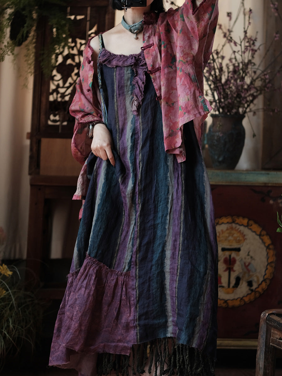 Vestido colete feminino de verão vintage com listras e recortes em rami
