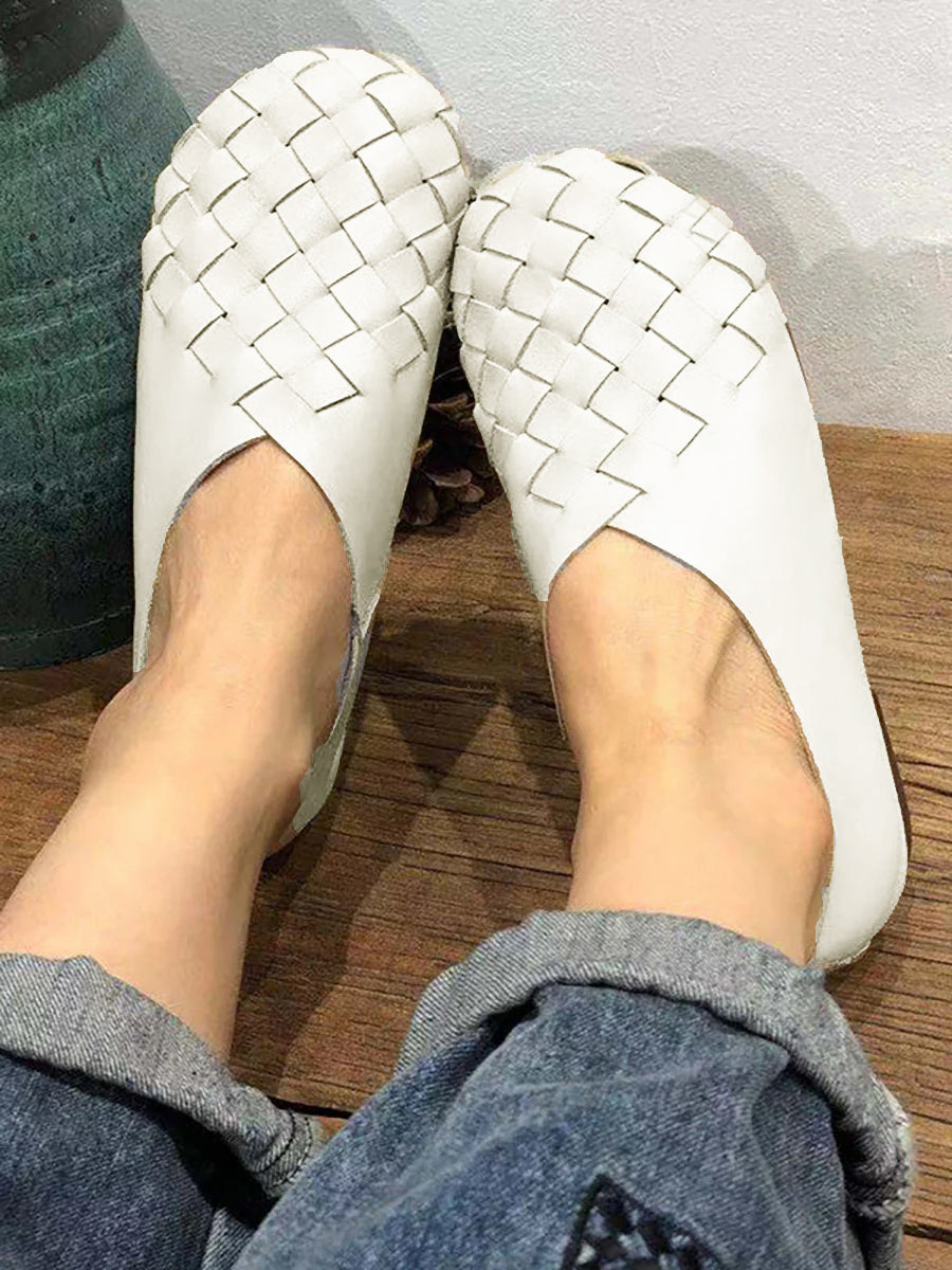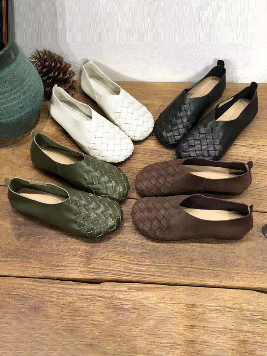 Sapatos femininos de couro, cor sólida, biqueira redonda, baixos