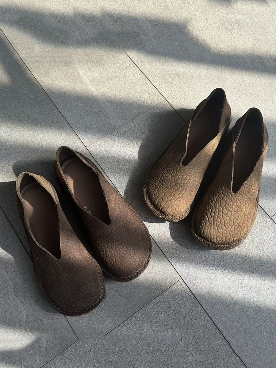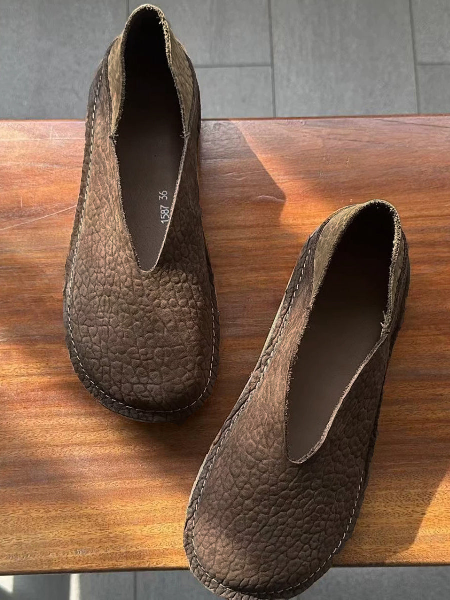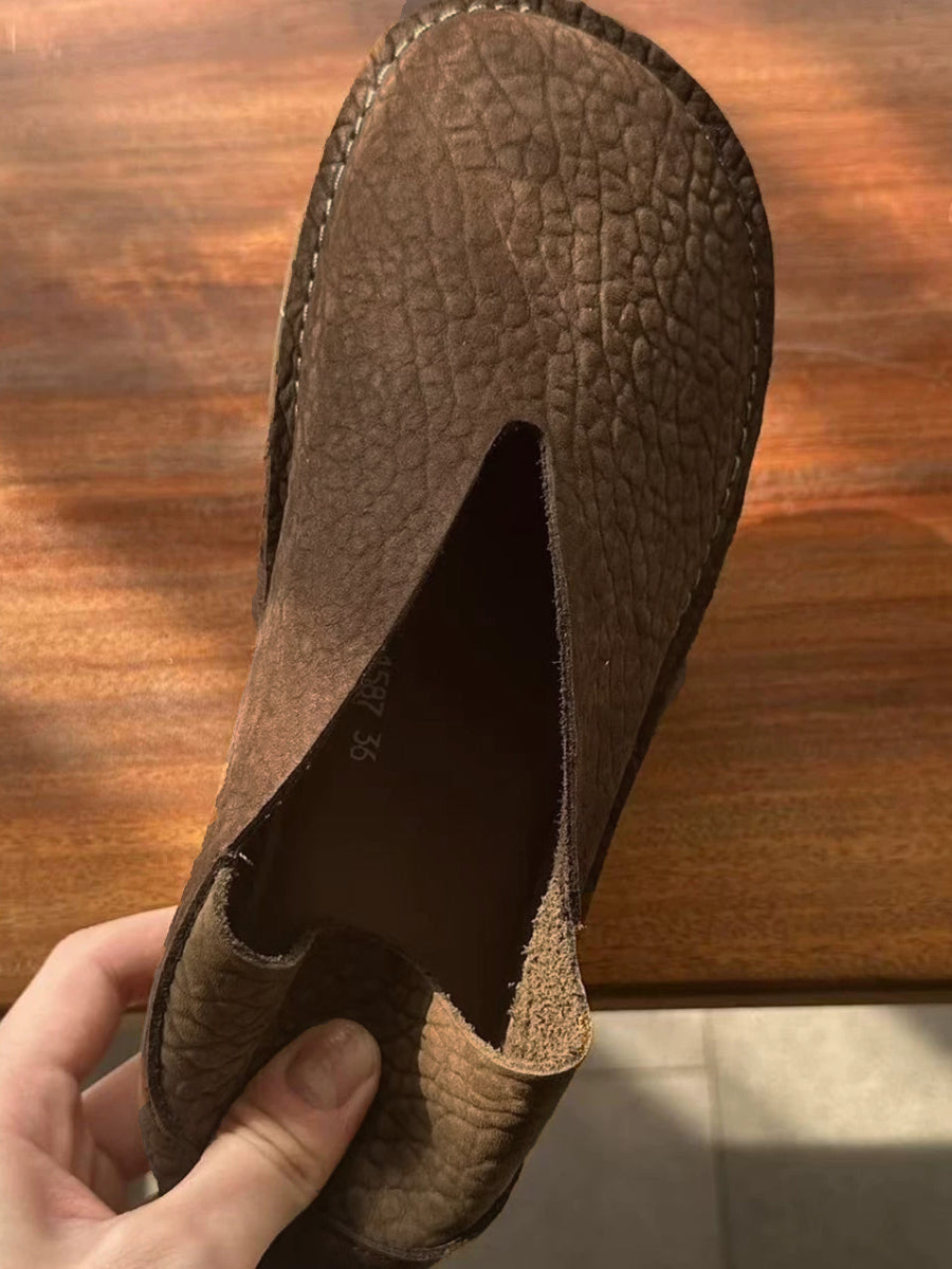 Sapatos femininos retrô de couro legítimo com detalhes em patchwork.