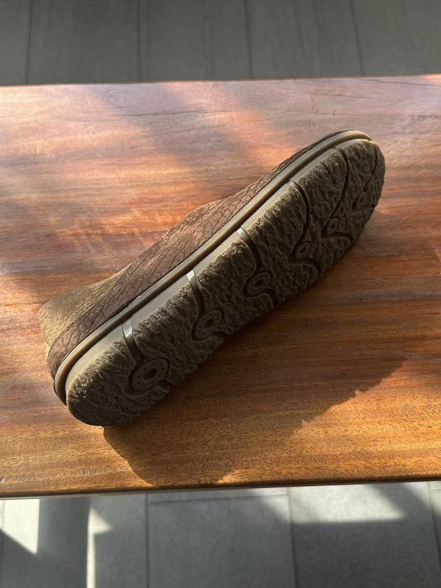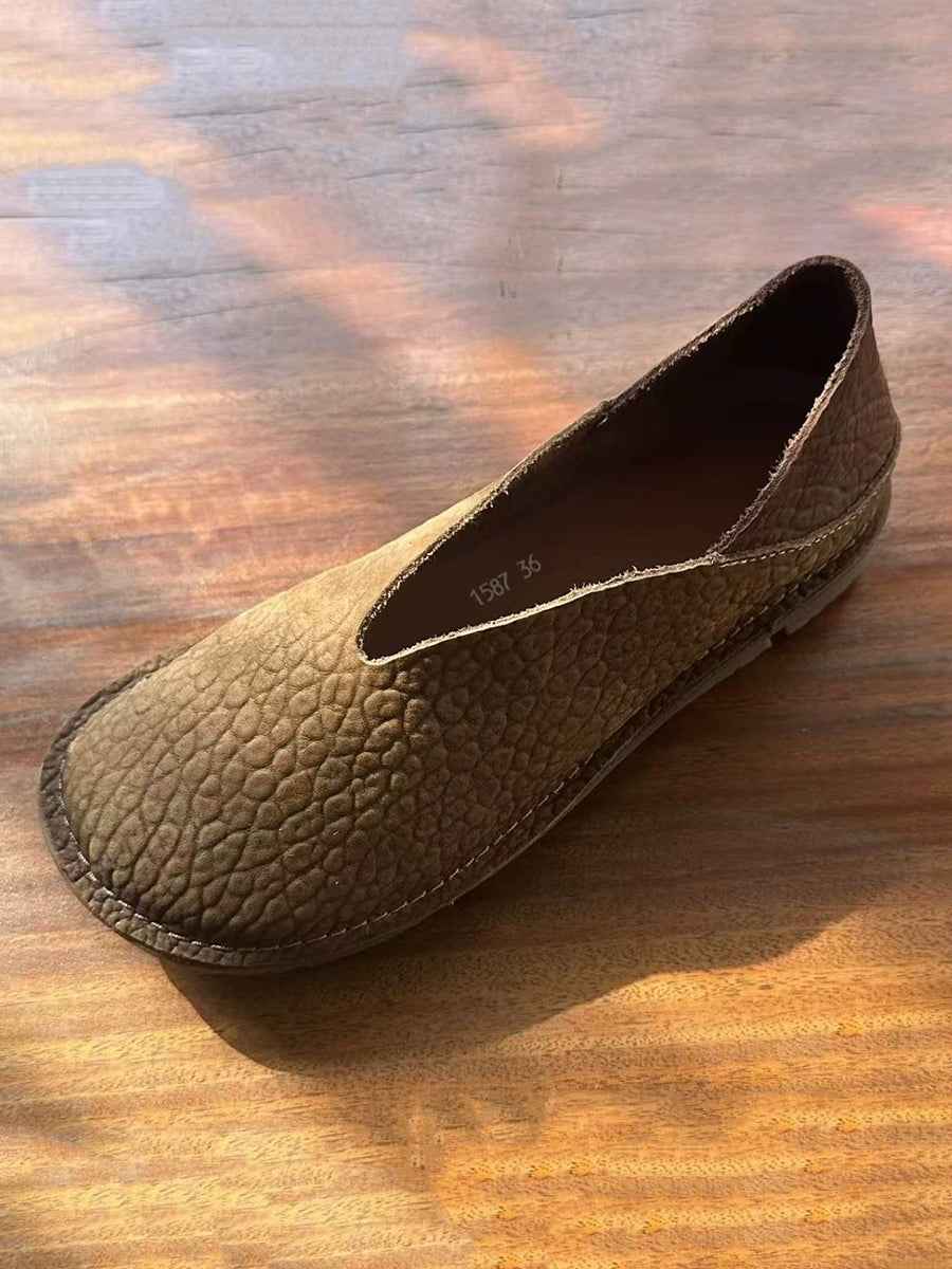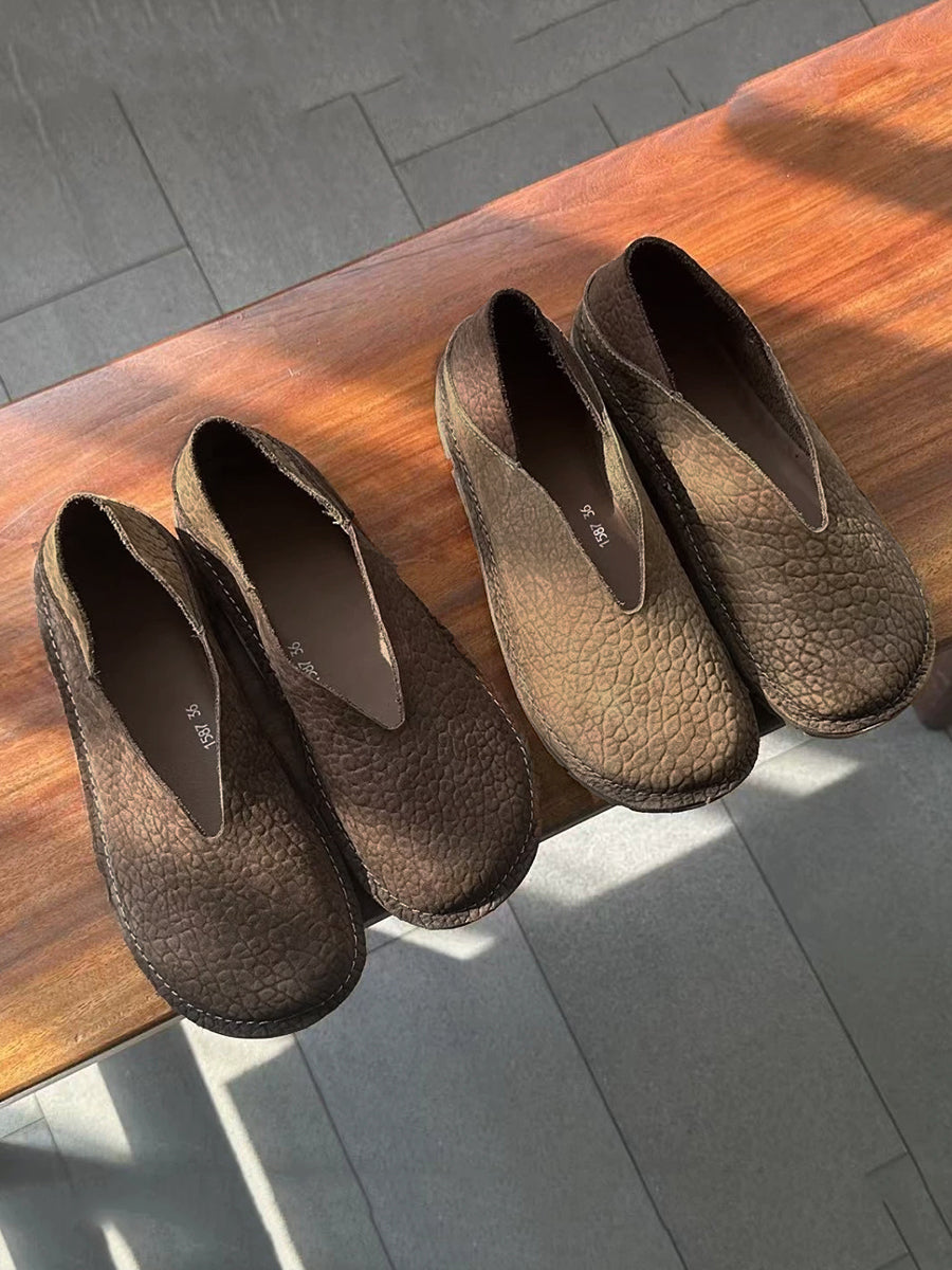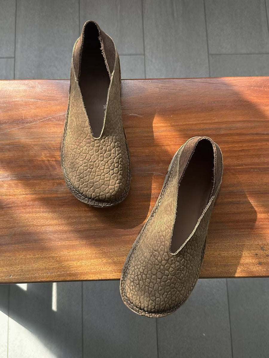 Sapatos femininos retrô de couro legítimo com detalhes em patchwork.