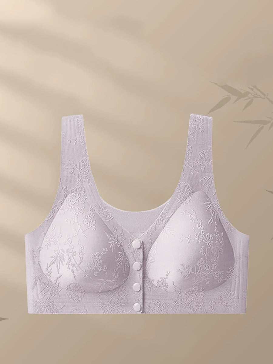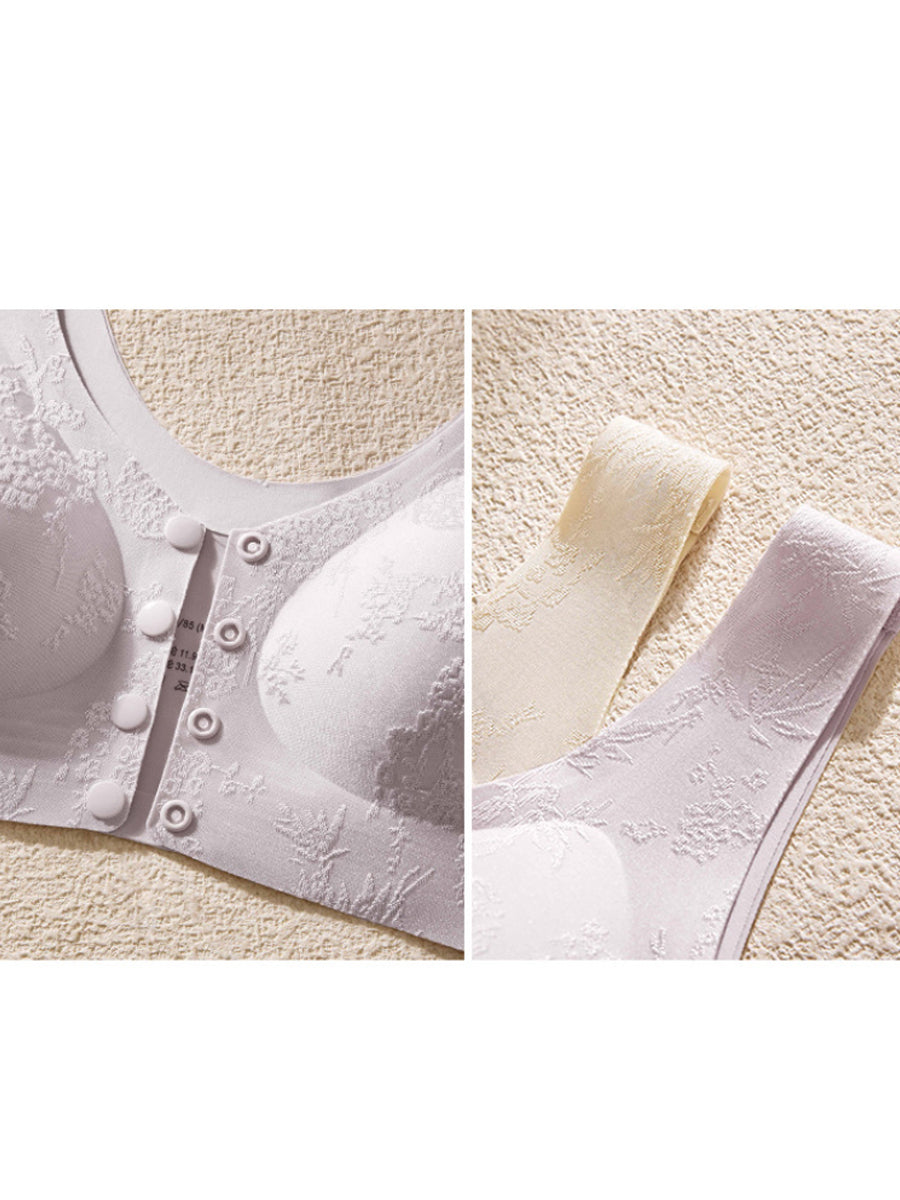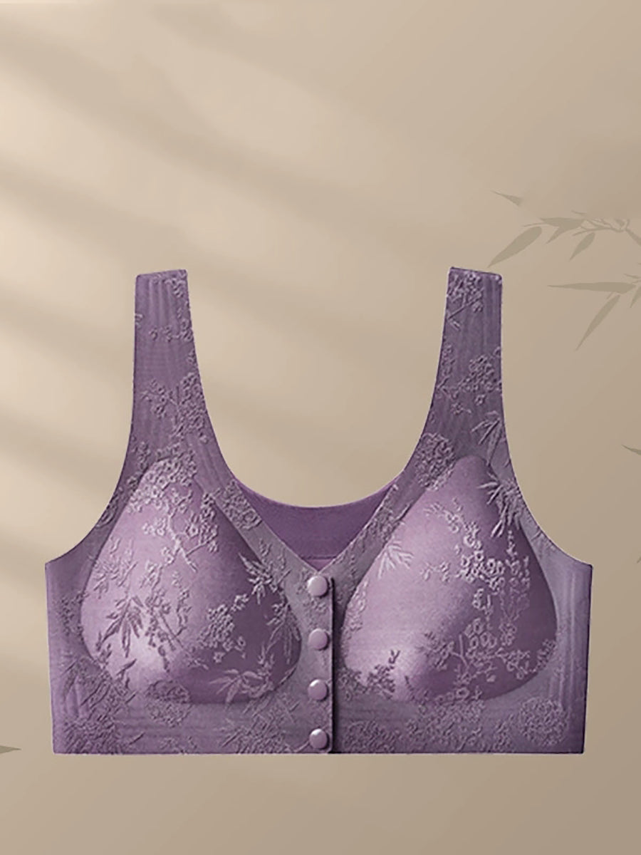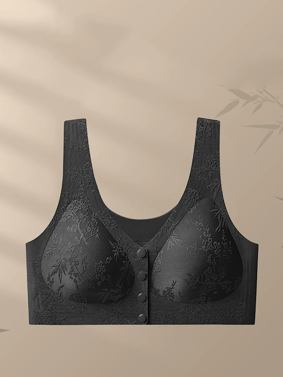 Sutiã feminino sem aro com estampa jacquard e fecho frontal