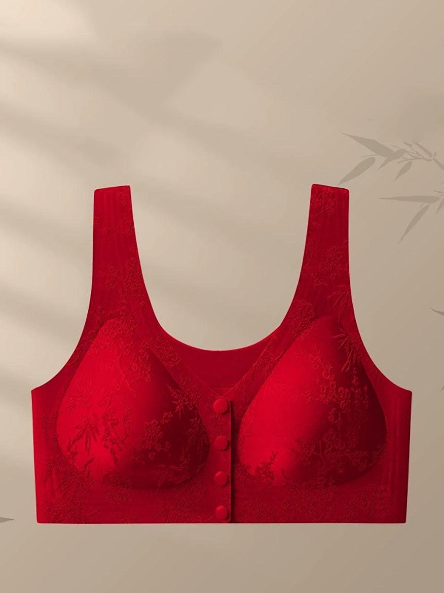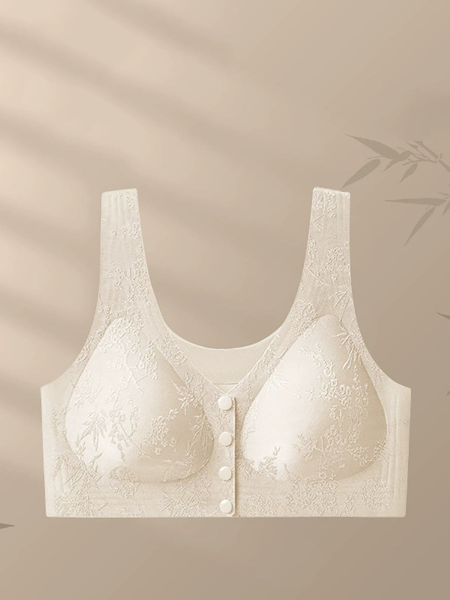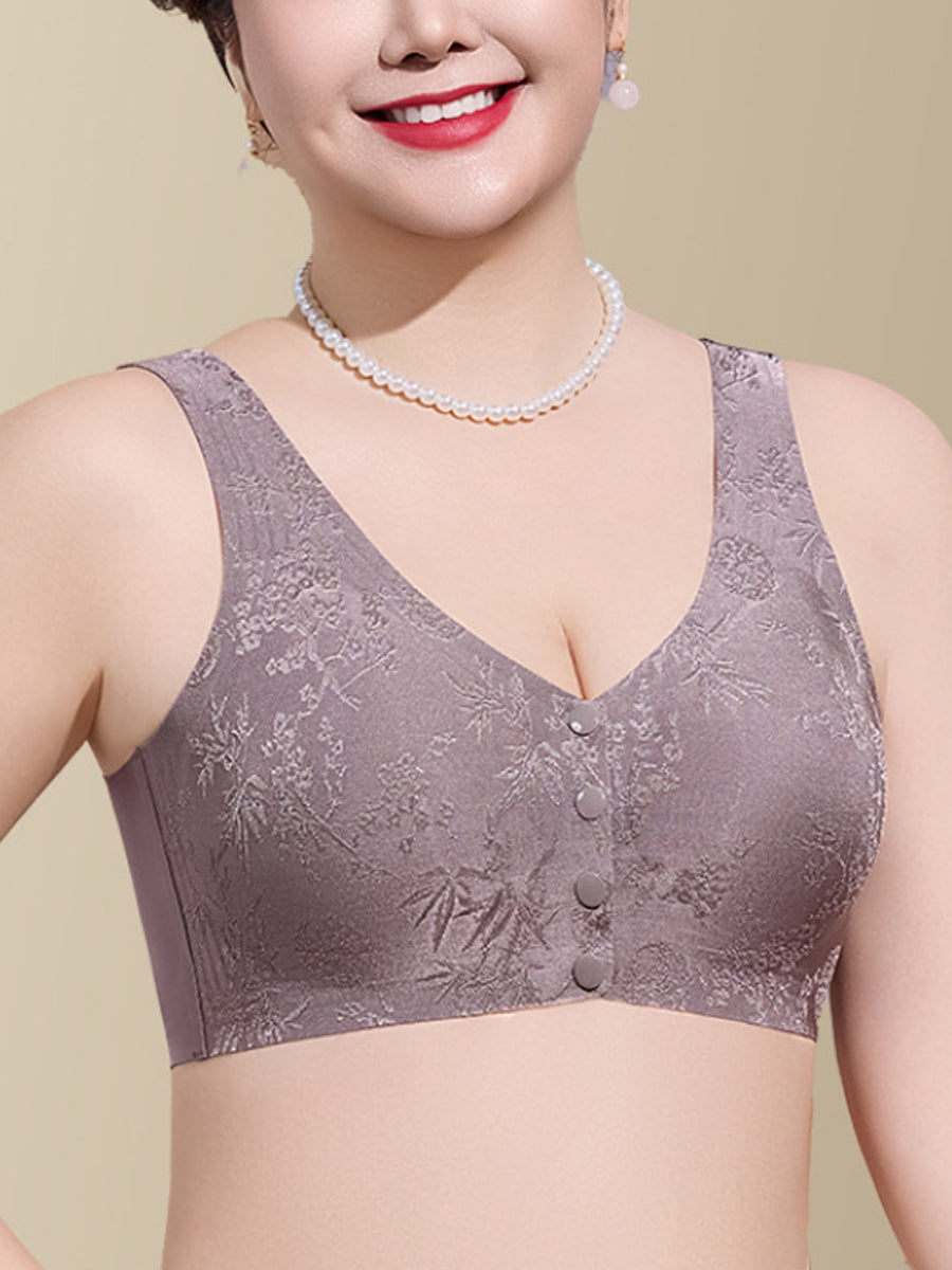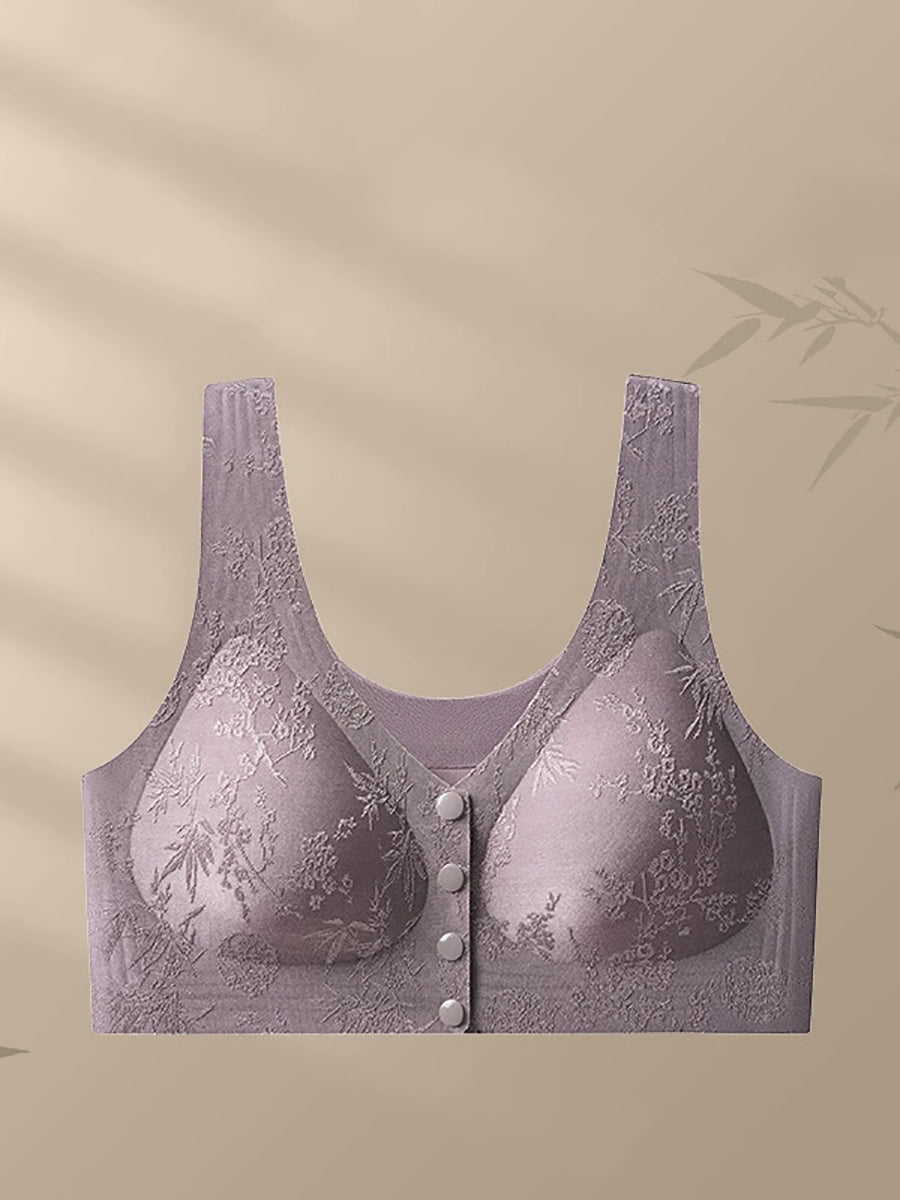 Sutiã feminino sem aro com estampa jacquard e fecho frontal