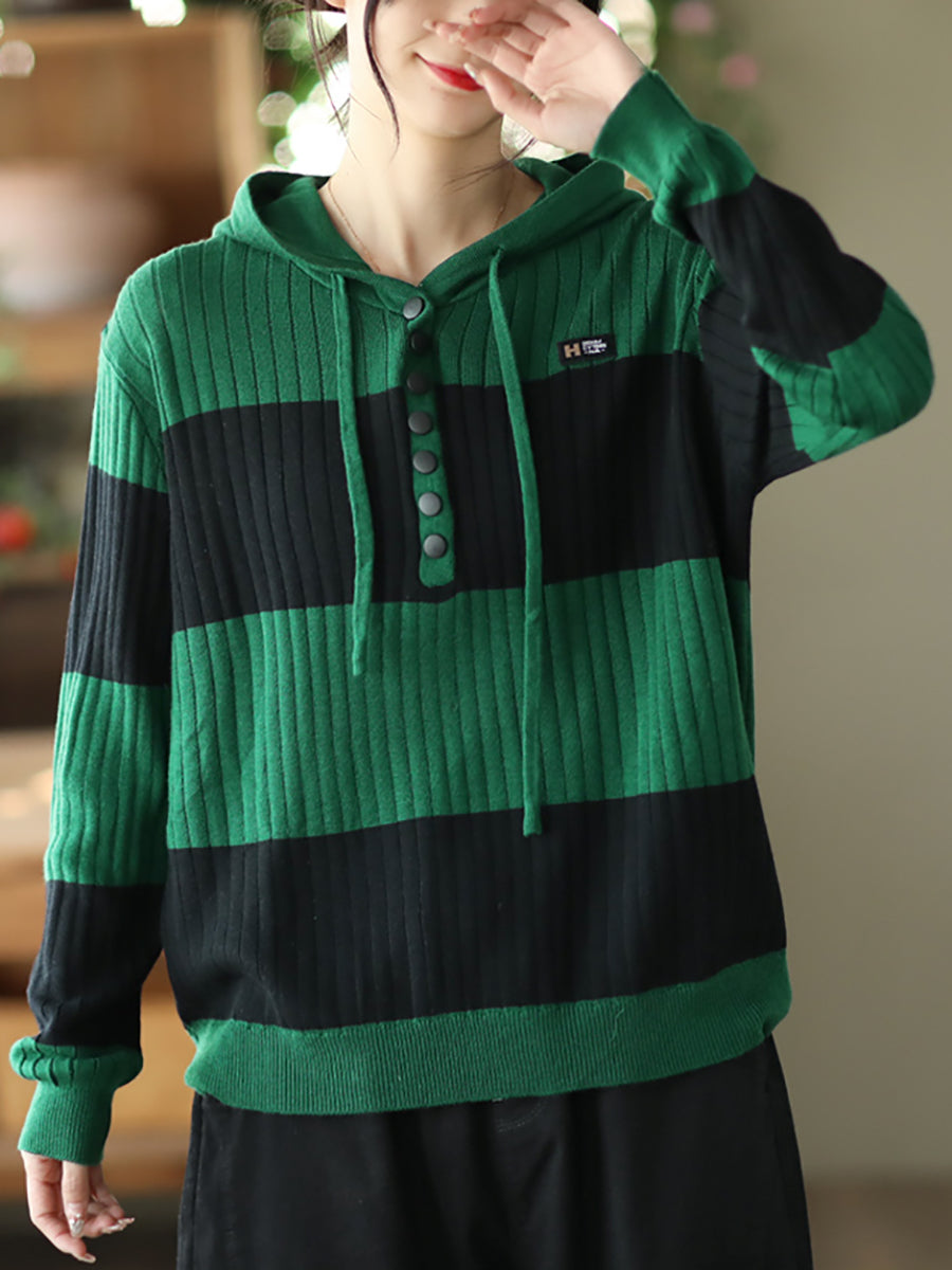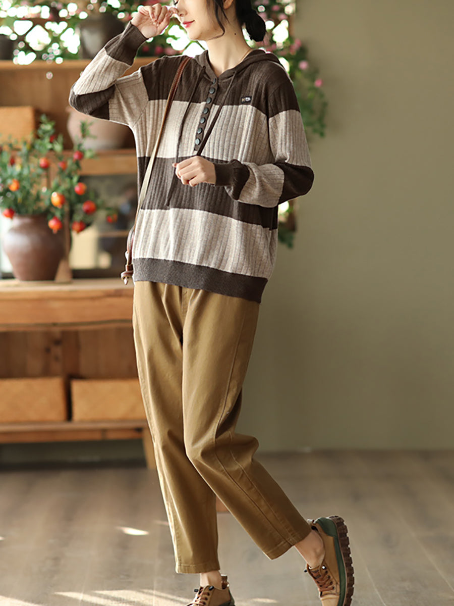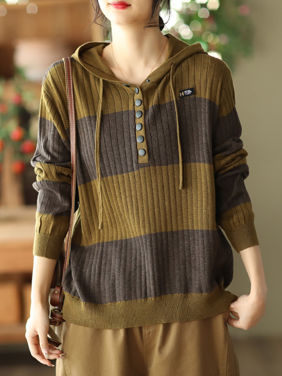Mulheres primavera casual listra botão solto com capuz Camisa