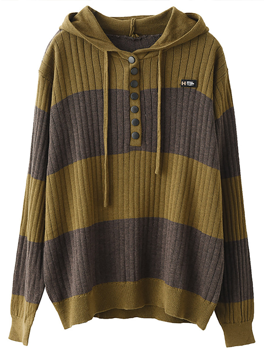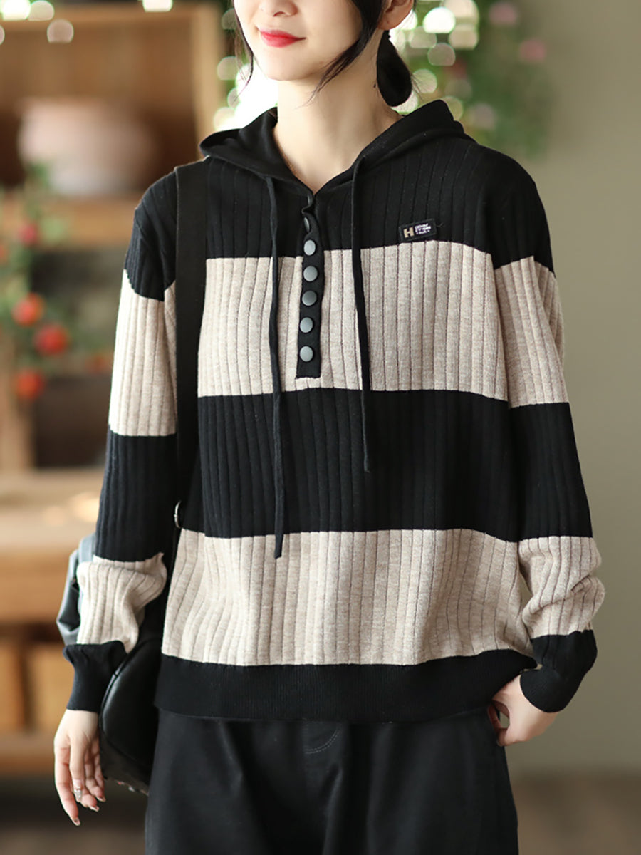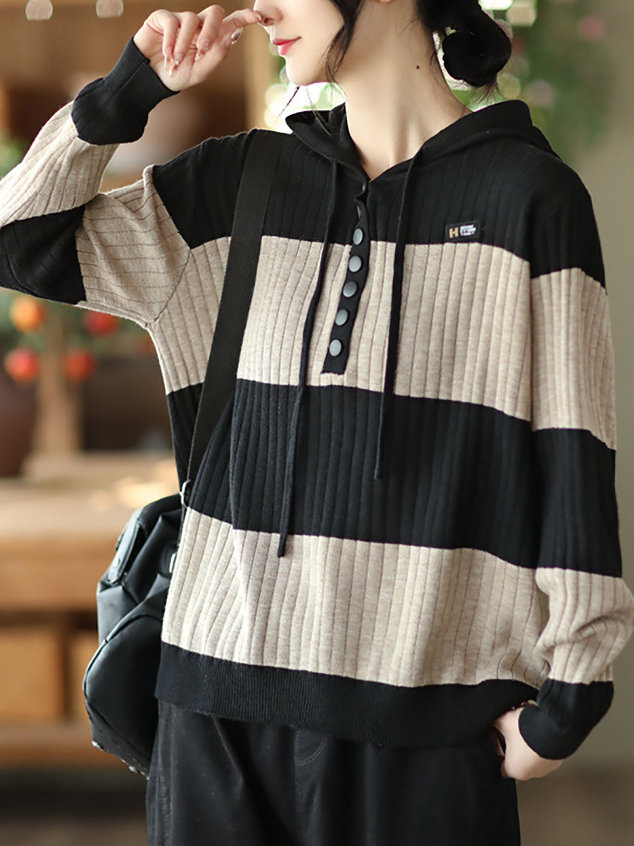 Mulheres primavera casual listra botão solto com capuz Camisa