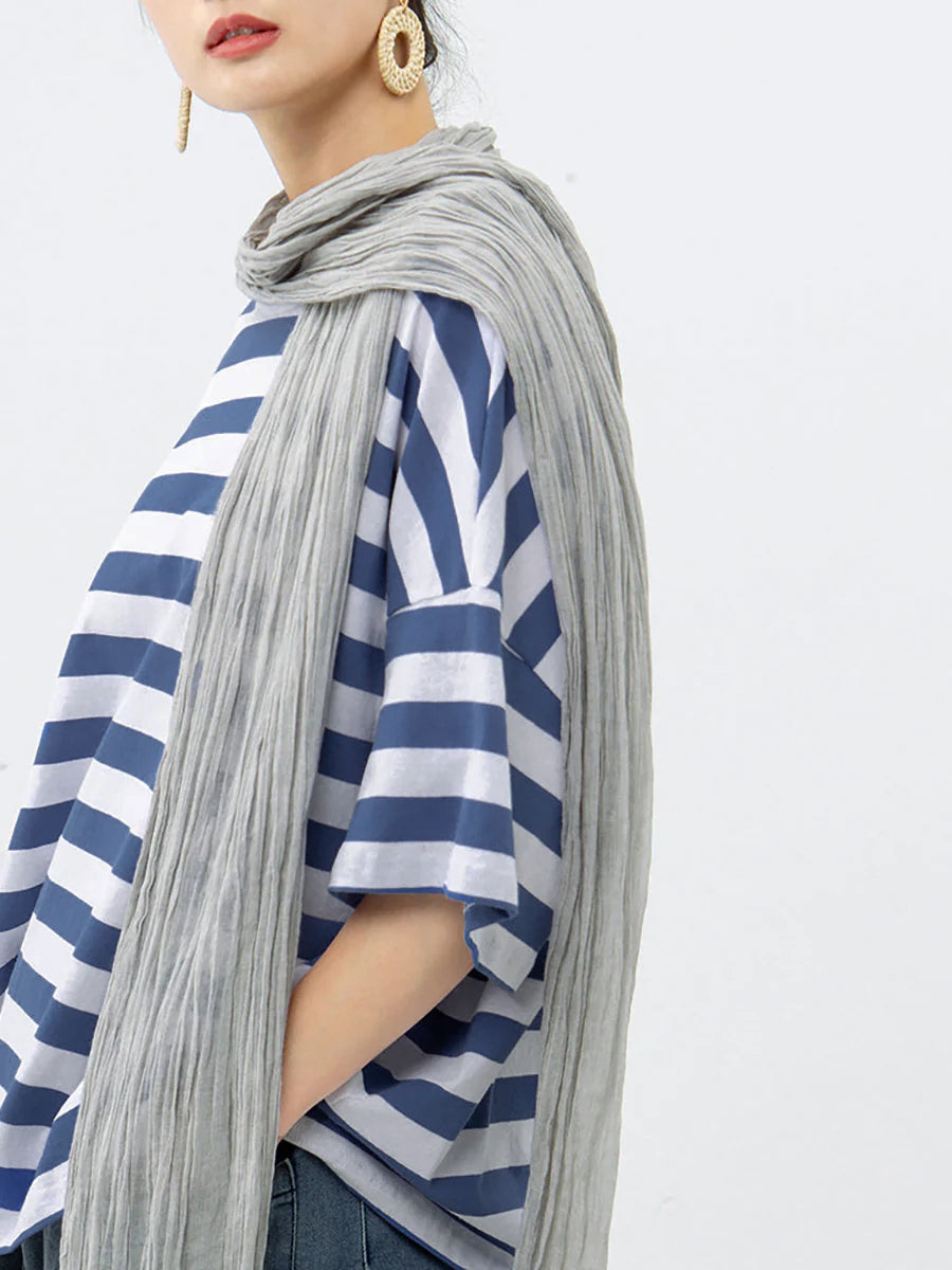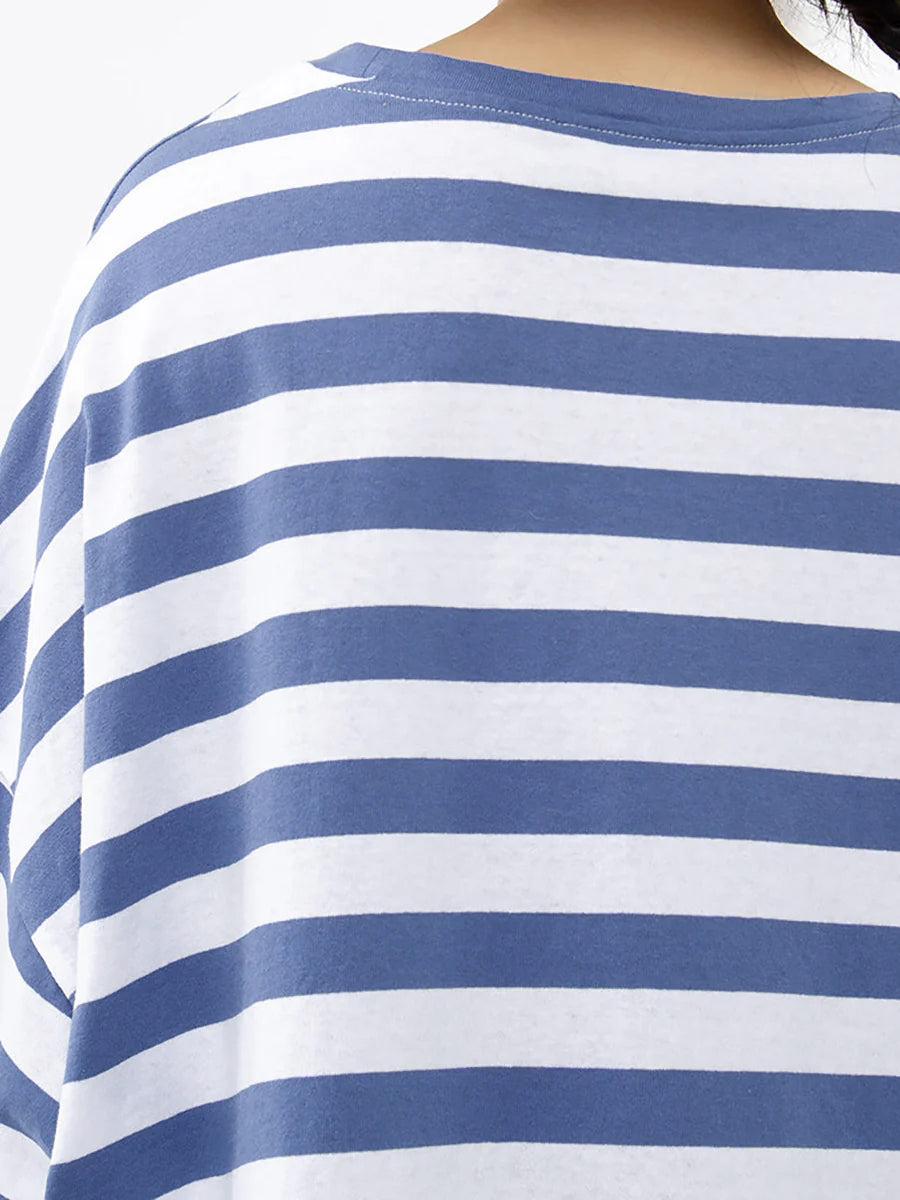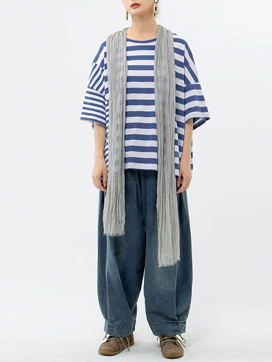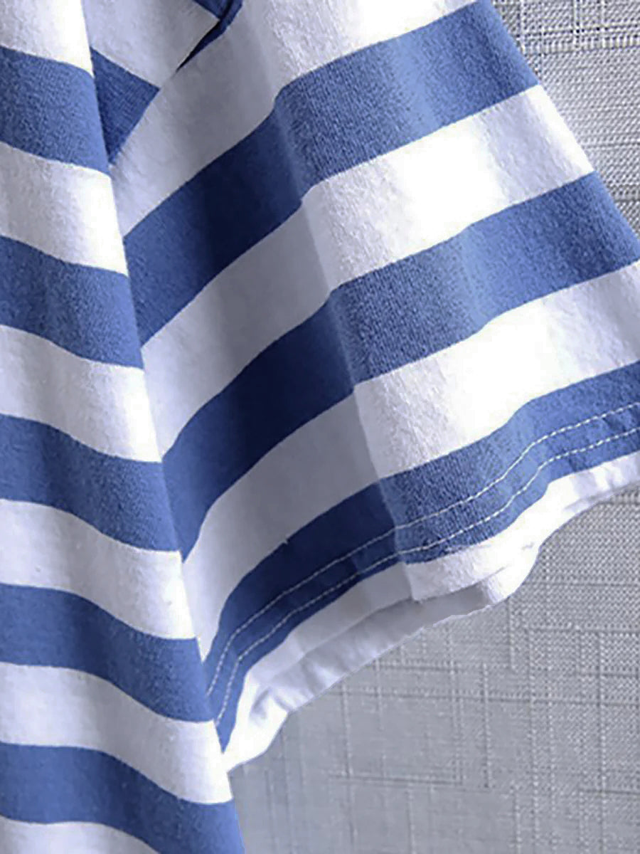 Plus Size – Camiseta casual listrada 100% algodão Buykud
