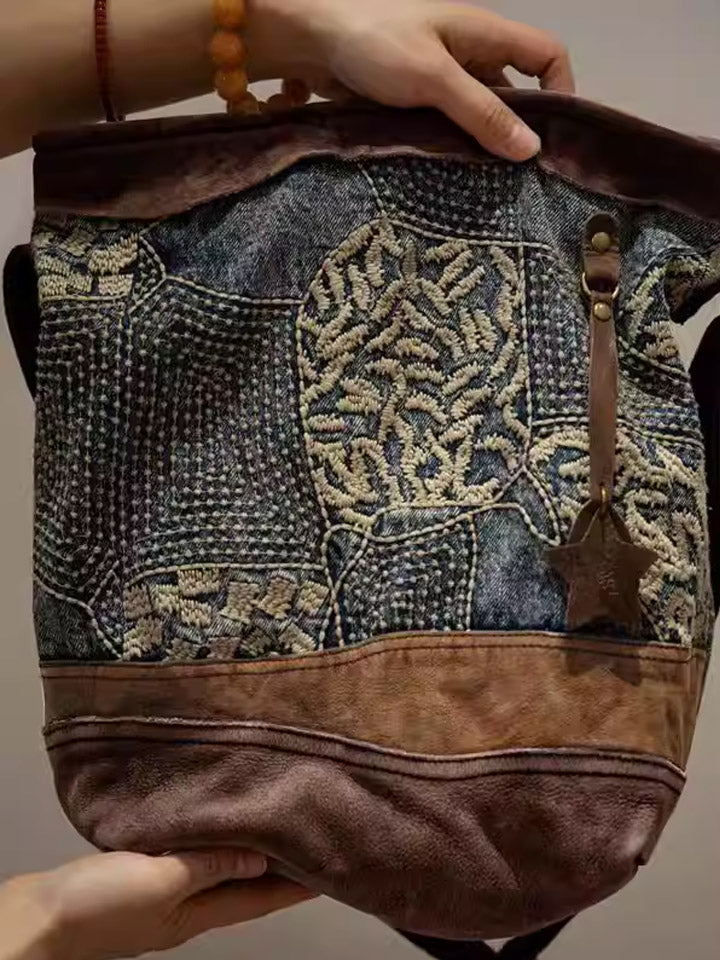 Bolsa de couro com bordado étnico 1111